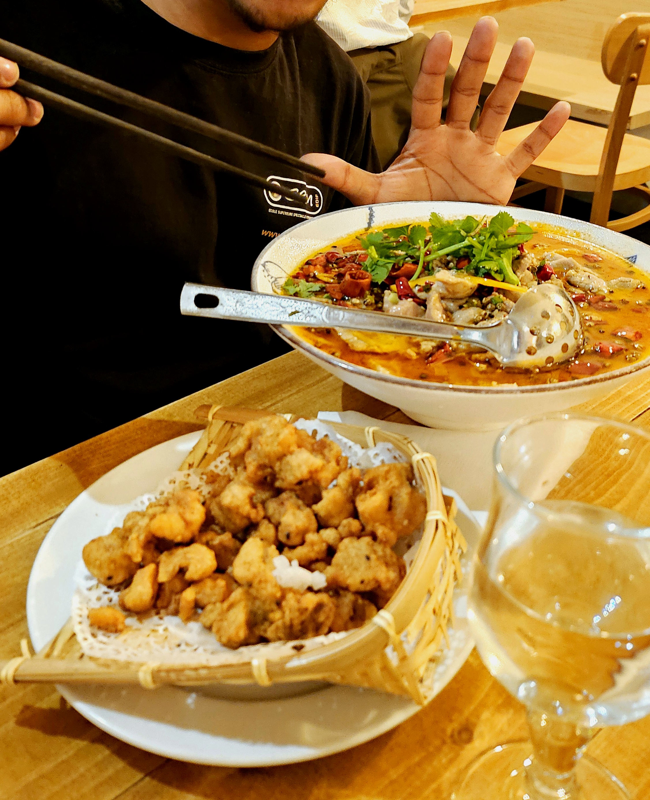 Super restaurant ! Des plats délicieux.. certains se plaignent de l'huile dans les plats mais c'est normal car la cuisine Sichuan par exemple contient beaucoup d'huile sinon c'est beaucoup moins bon. Le prix est plus que raisonnable pour la qualité des produits et des plats. L'emplacement n'est pas le meilleur mais ce n'est pas si grave. L'intérieur du restaurant sinon est très mignon.