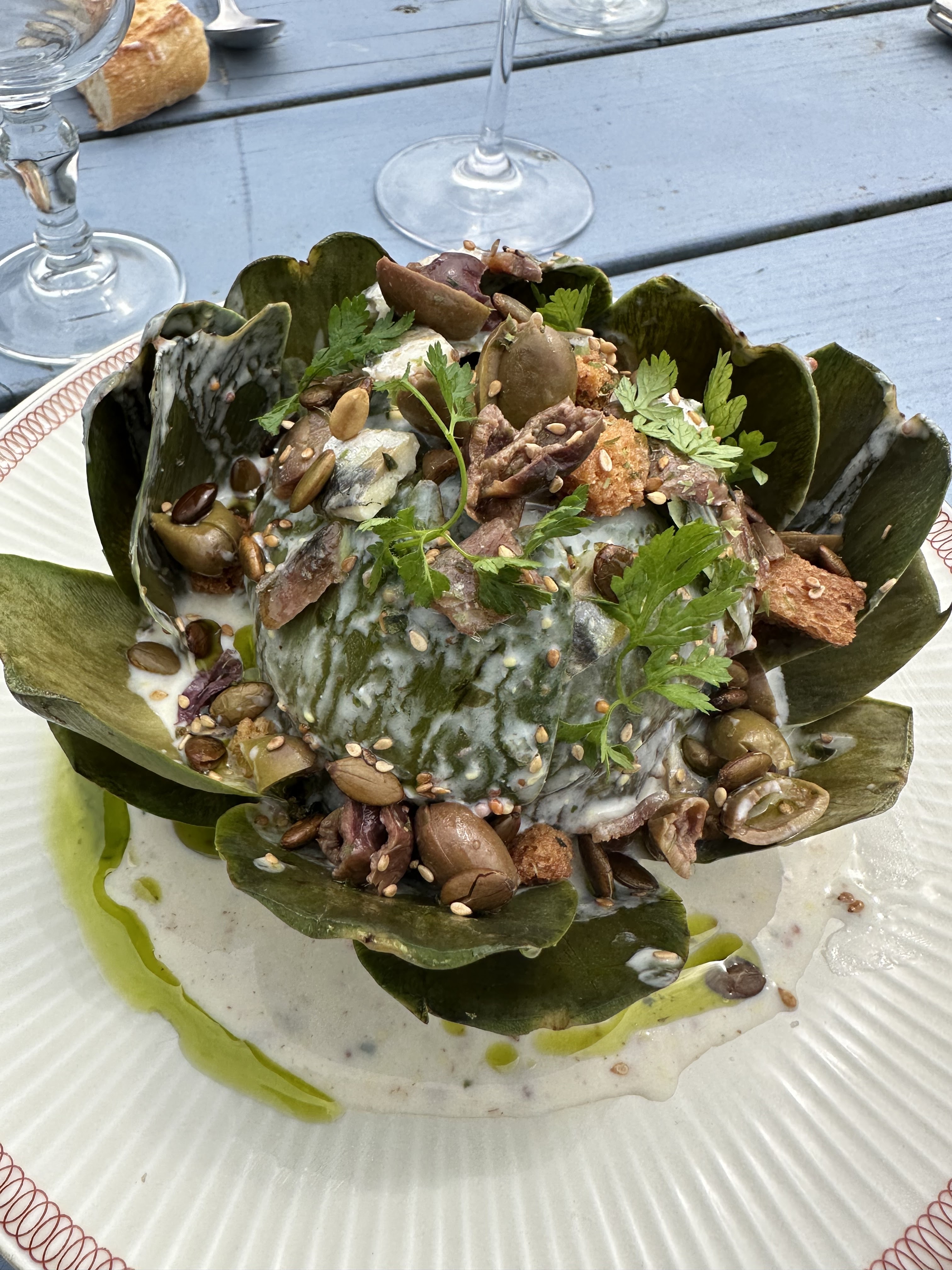 Avis mitigé… cadre idyllique, pas de carte car menu unique mais possibilité de faire à la carte quand même sauf que les prix ne sont pas annoncés. Quand on demande le prix d’un plat ou d’une bouteille, ça ne correspond pas à ce qu’on paie… assez surprenant comme façon de faire et surtout à la limite de la légalité tout ça… Dommage car on y mange bien et le cadre est vraiment parfait mais la note est trop salée et surtout, impossible à prévoir. C’est un peu à la tête du client et ça, je n’aime pas !