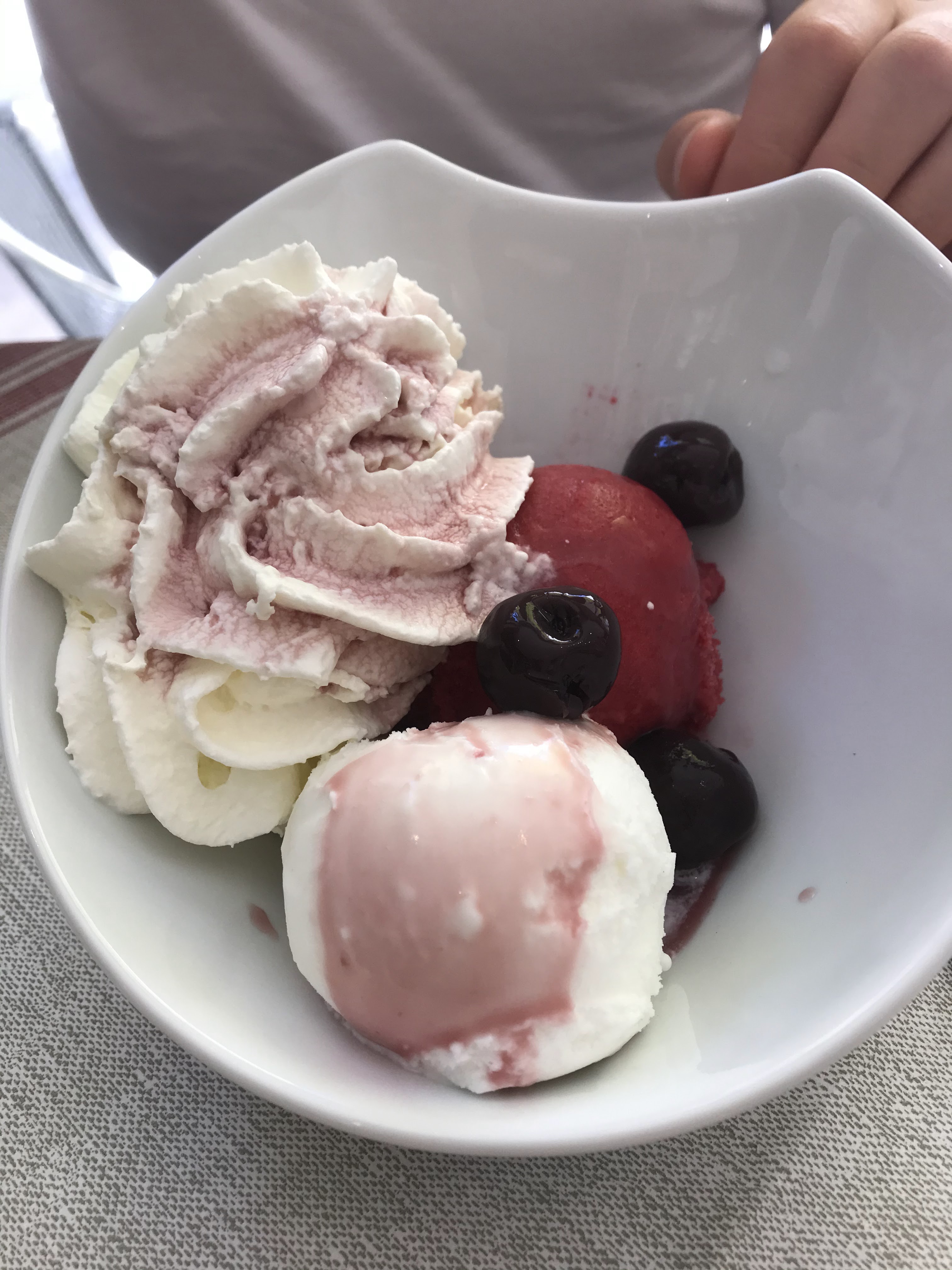 Petit restaurant sympa avec des tables joliment dressées. Le serveur était stressé et assez impatient quand nous n'avons pas tout de suite compris votre français. Les plats, risotto aux crevettes et coquilles Saint-Jacques et risotto aux morilles et magret de canard, étaient malheureusement froids. Le risotto était ferme et moelleux. Le magret de canard n'était pas moyennement rare, comme commandé. Les expressos étaient chauds et bons.