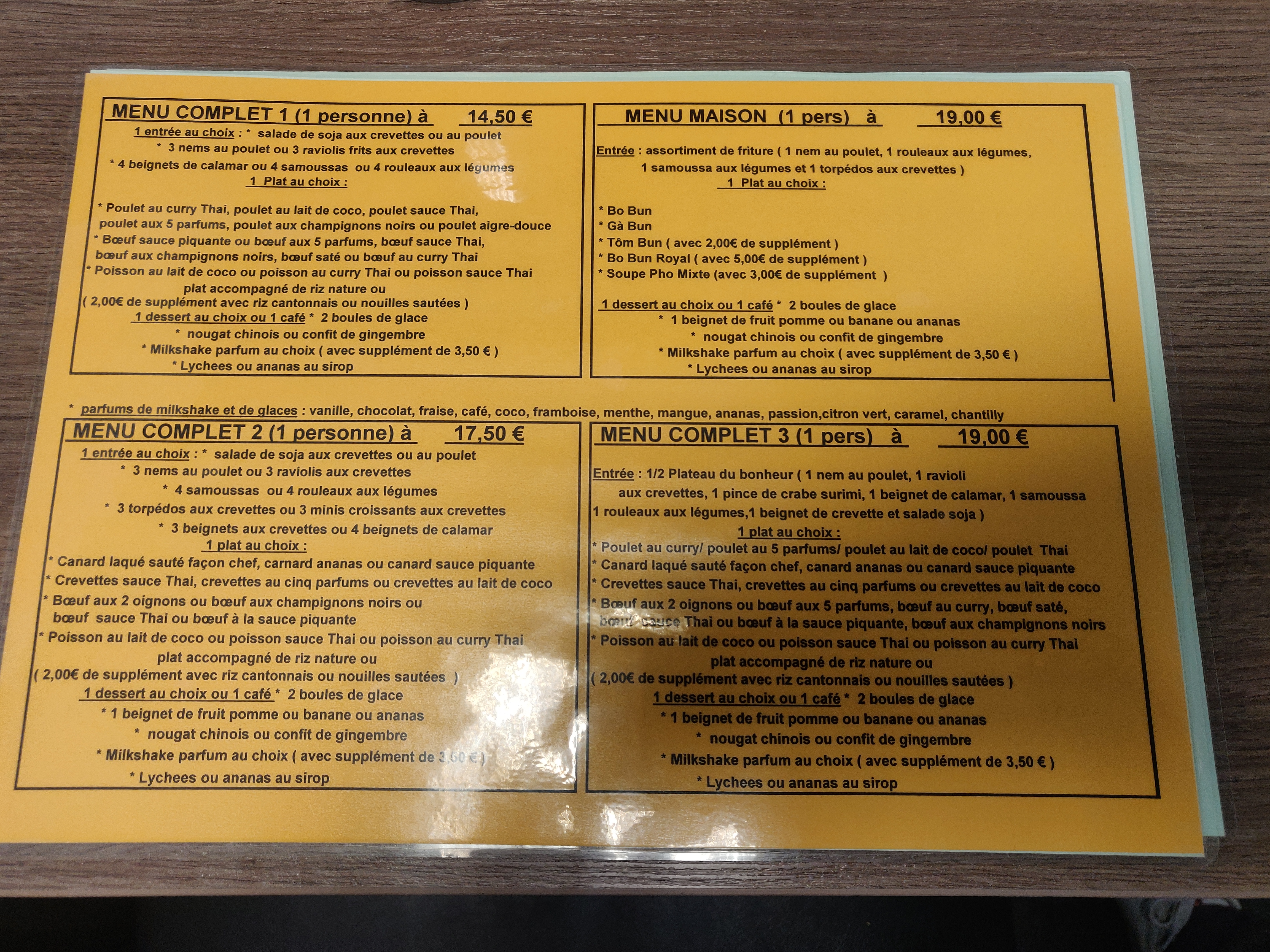 Nous sommes des clients fidèles et nous revenons à chaque fois que nous passons par l'Alsace ! C'est notre incontournable ! Hormis l'accueil qui y est toujours très chaleureux et familial, vous ne pouvez pas vous tromper en choisissant. Tout est délicieux et invite au voyage ! Le Must : les rouleaux de printemps et le Bo Bun au boeuf, parfaitement assaisonné et gourmand. finissez sur un thé au gingembre et vous serez ravis ! N'hésitez pas, à emporter ou sur place, nous ne sommes jamais déçus.