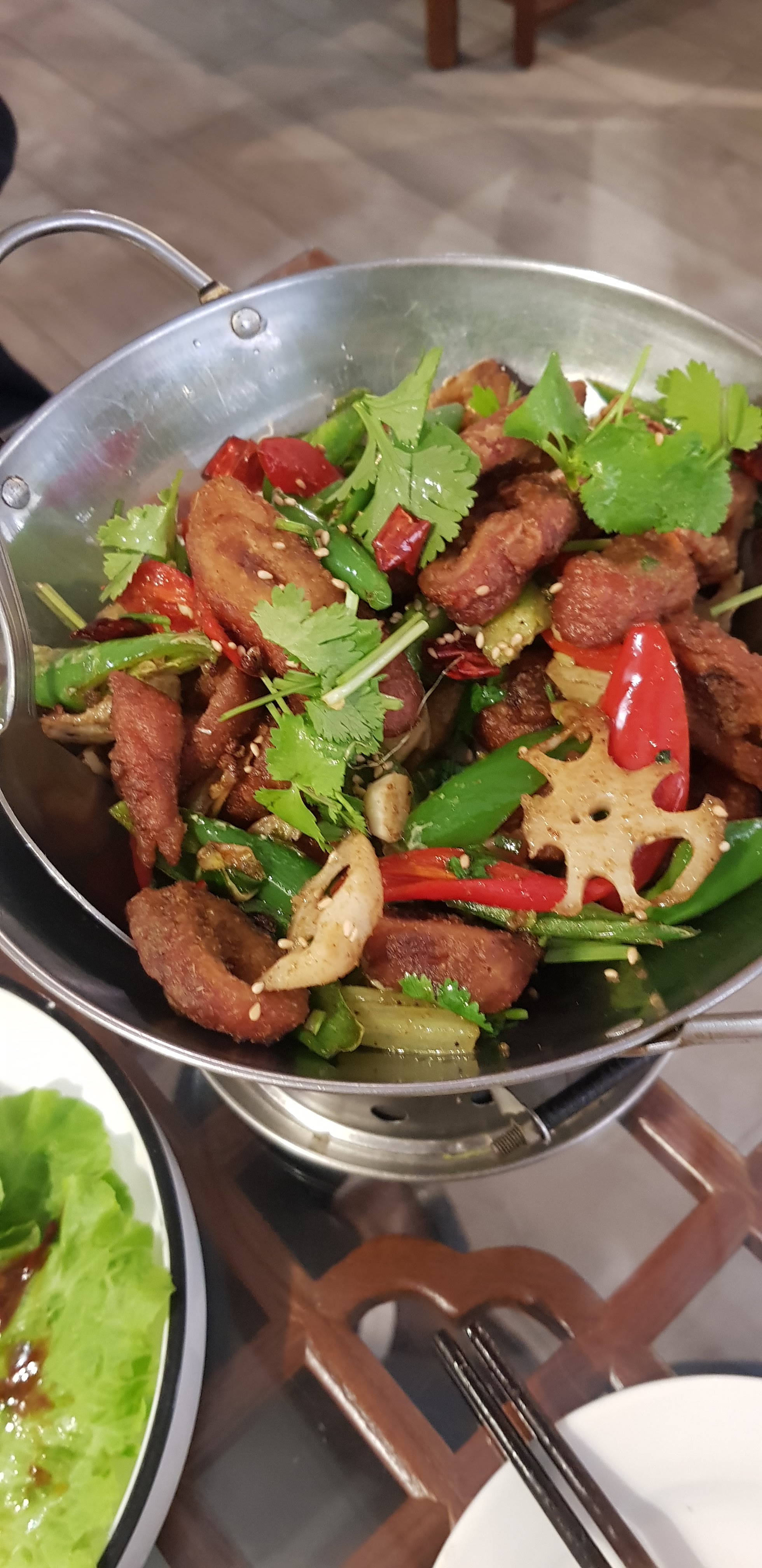 Un vendredi à midi. Nous étions un groupe de 7 dans la mezzanine donc très tranquilles! J'ai l'habitude de la cuisine chinoise et je me suis régalée. C'est bien pimenté mais il est possible pour ceux qui craignent de demander 不太辣. Boeuf aux épices, aubergines, raviolis coréens, tripes froides, haricots verts, tout était bon et pour un prix tout à fait acceptable. Je retournerai dans ce restaurant. Seul petit bémol, en raison de la situation sanitaire encore vacillante, j'aurais aimé qu'il soit possible de se servir avec des baguettes réservées au plat au lieu de se servir de nos propres baguettes. Mais nous étions tous vaccinés donc..