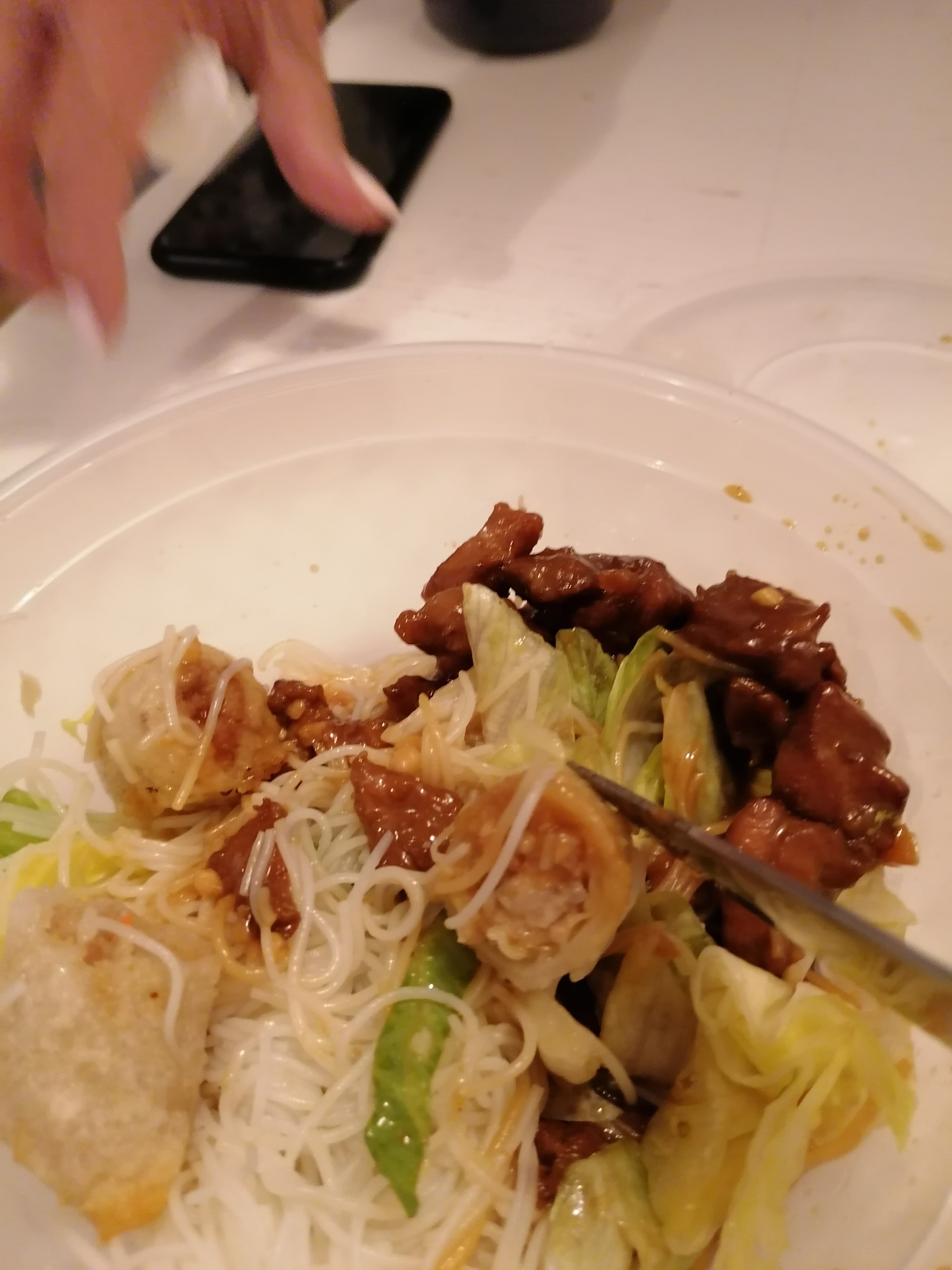 La sauce est en fait de l'eau aromatisé sans goût..... Bizarre aussi que ça ne porte pas le même nom en livraison c'est Mooli Kitchen???? Le nem est caoutchouteux, pas cuit et coupé en 4 on se demande pourquoi, le poulet on le cherche encore 😂😂 résultat des courses heureusement 1 acheté 1 offert car même avec cette offre c'est trop cher payé, bon appétit Msieurs-dames !! Révisez vos cours de cuisine asiatiques c'est juste de l'arnaque et franchement ridicule. De la salade en sachet au jus sans goût !!! Non mais sans déconner 😂