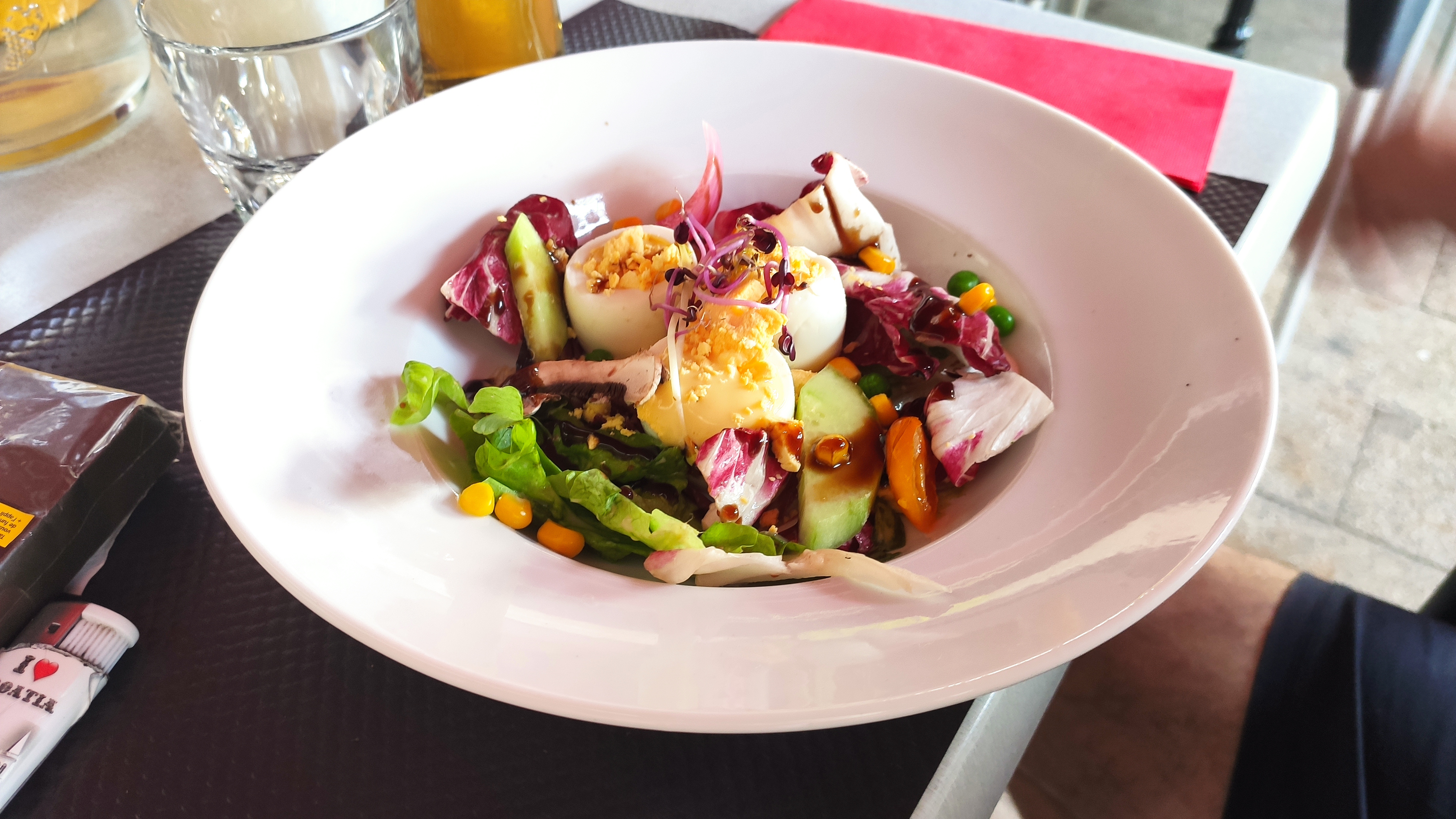 L'assiette est très belle mais le goût n'y était pas.. pour un plat du jour, un potage sans goût, un taboulet œuf mollet : j'ai eu un demi œuf dur et le taboulet ressembler à ce que l'on trouve en supermarché, tout était très fade. Par contre frites maison !