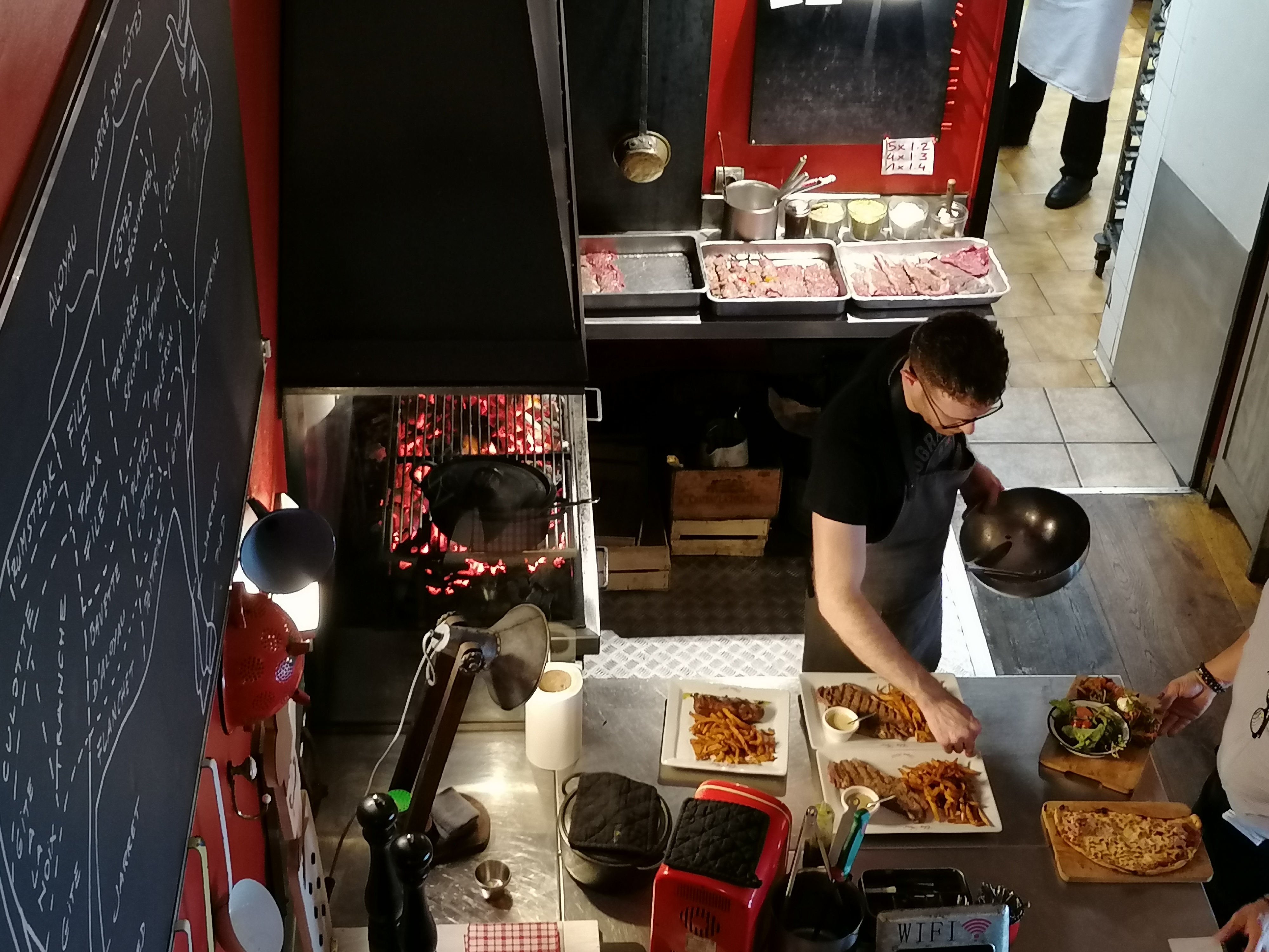 Si vous aimez la viande c'est la bonne adresse. Cuisson au charbon de bois en directe devant vous. Leur planche à partager est excellente. On sent les produits frais même les frites sont maison.