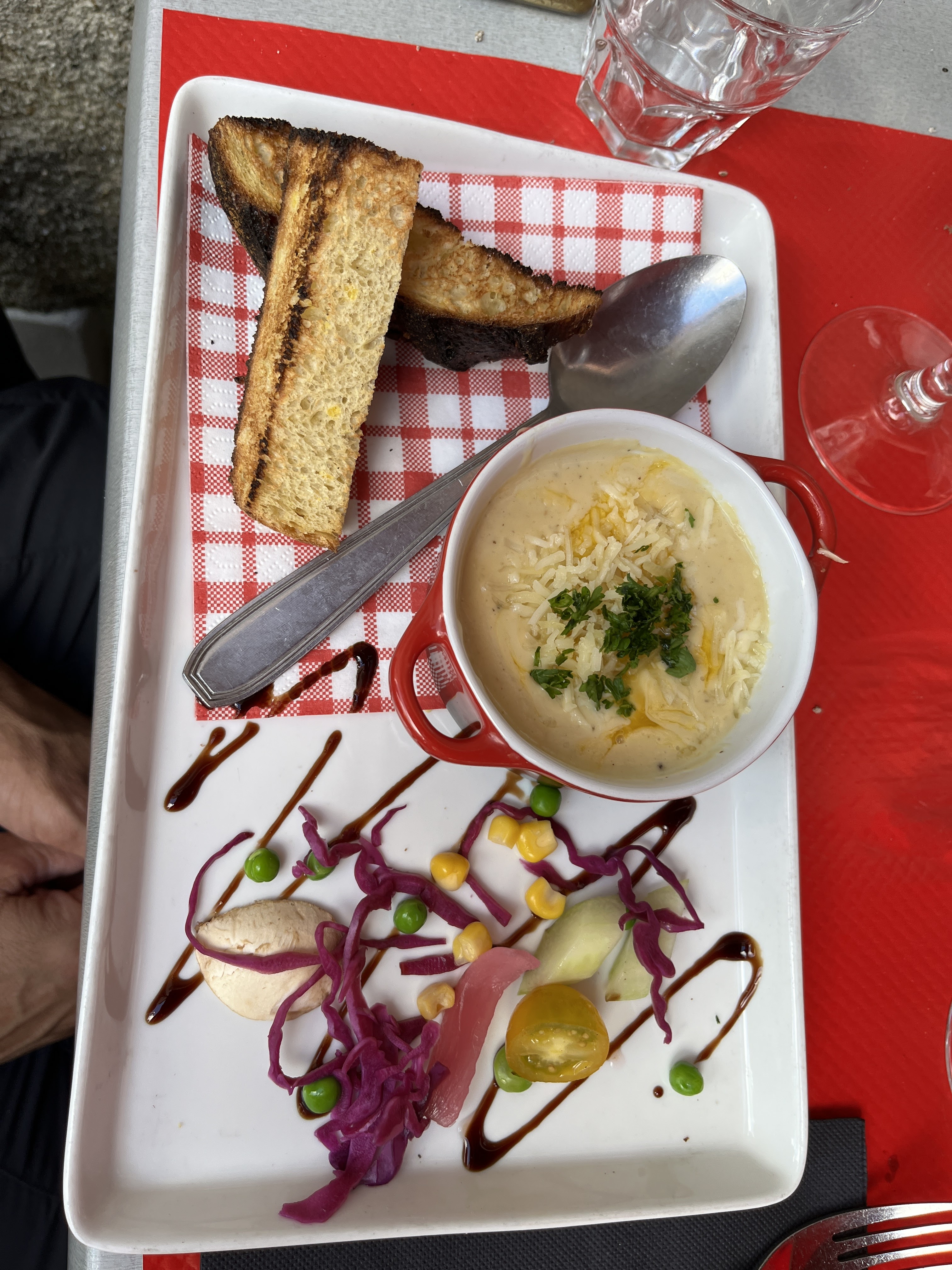 Resto sympa. Bon accueil où on ouvre la porte aux clients. C'est. Rare!! Amuses gueule à l'apéritif. Ça devient rare !! Déjeuner agréable Oeufs cocotte👏👏 Profiteroles👏👏 A refaire