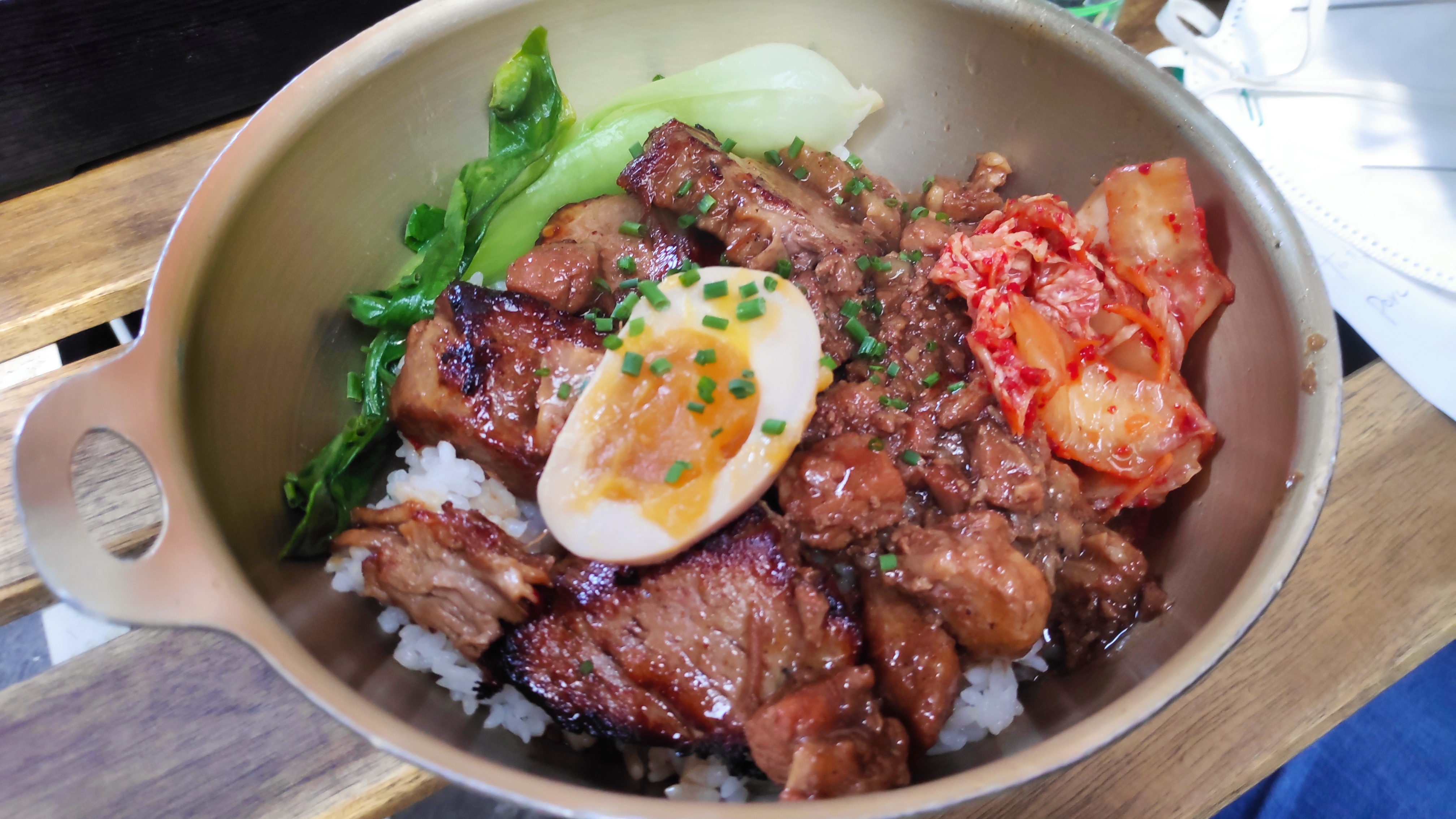 Stand de restauration situé au Marché des Enfants Rouges. Nous nous sommes arrêtés sur un coup de tête en explorant le marché et j'ai dégusté l'un de mes plats préférés lors de mon séjour à Paris. Ils proposent de nombreuses options de bols et de boîtes à bento. Nous avons commandé le spécial porc barbecue et c'était absolument délicieux. C'est un endroit très fréquenté au déjeuner mais le service était calme et agréable et l'agitation fait partie de l'atmosphère. J'espère revenir un jour !