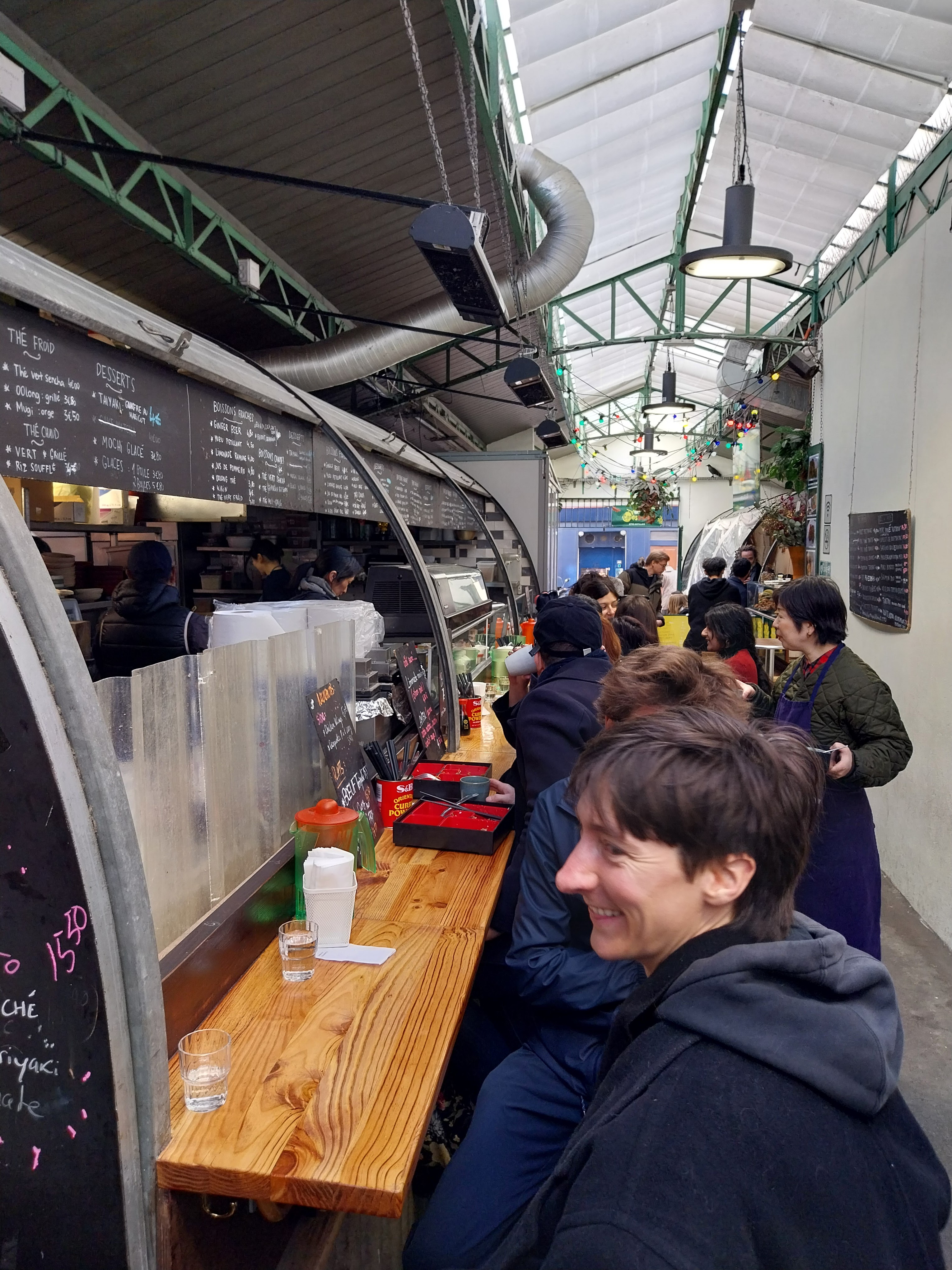 Stand japonais sans fioritures et décontracté dans ce marché gourmand proche du Marais ! J'adore à quel point c'est sans prétention. La nourriture est simple, fraîche, rapide et abordable. L'endroit est assez fréquenté aux heures de pointe, mais nous y sommes allés assez tôt et avons pu trouver une table assez rapidement. Essayez certainement les spéciaux.