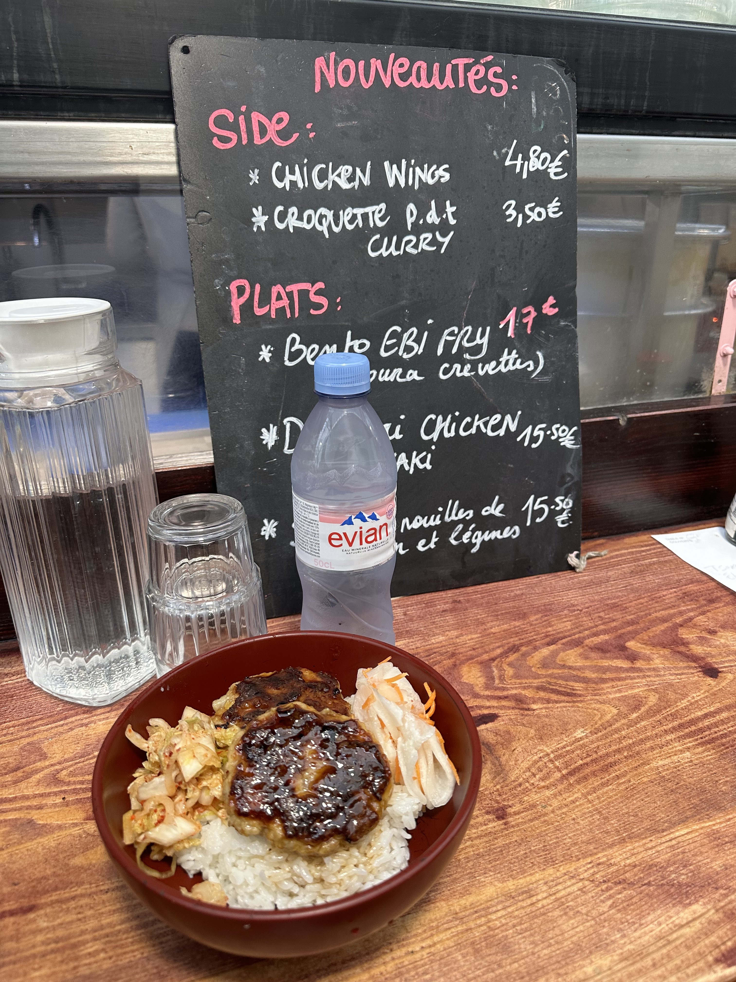 ENG&FR Stand de nourriture japonaise dans le marché des enfants rouges. La nourriture est assez bonne, assez authentique (le Karaage différent mais tout aussi bon). Les prix sont raisonnables et ils disposent de places pour s’assoir. Japanese food stand in the Enfant Rouges Market. The food is quite good and authentic (the karaage was not the usual one but good nonetheless, the rice bowl was really good). The prices are fair and you can sit down.
