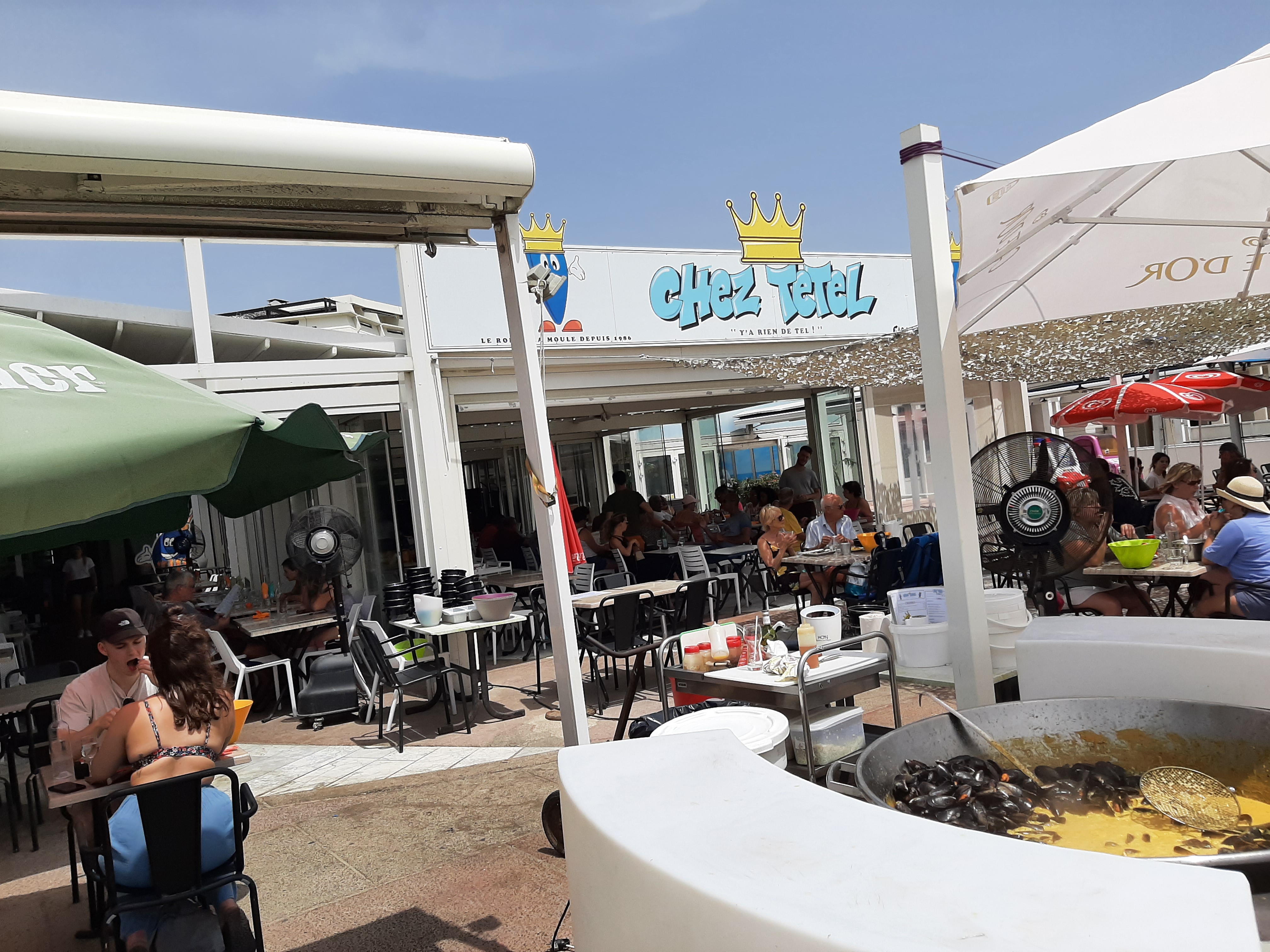 Chez tétel est une institution du moules/frites à la grande motte. Il vaut mieux réserver … Moules très bonnes mais bcp de moules fermées en début de service. Accueil bien sympa, serveurs agréables Service rapide Addition très correcte !