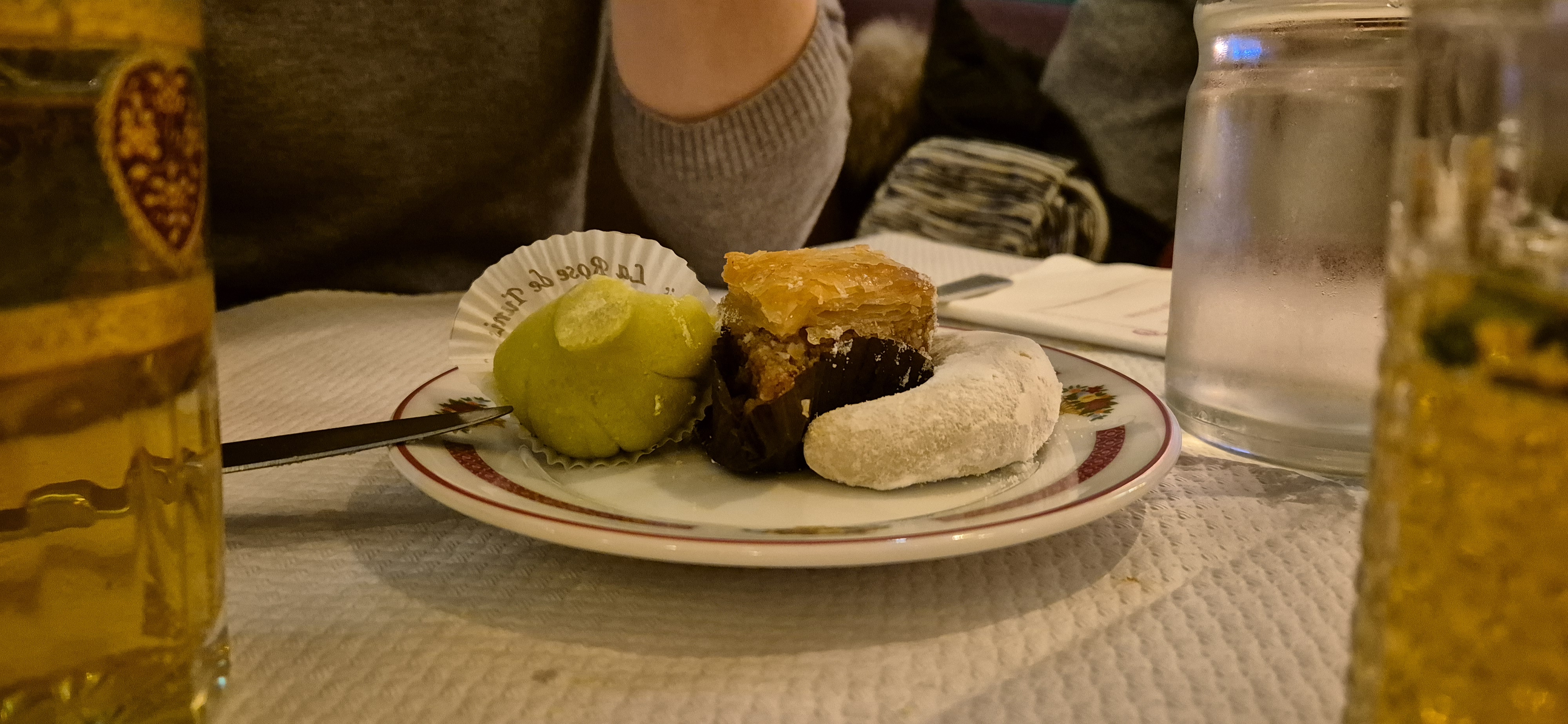 Le couscous est toujours aussi bon, plein de saveurs. Et les pâtisseries sont délicieuses accompagnées bien sûr d'un thé à la menthe.