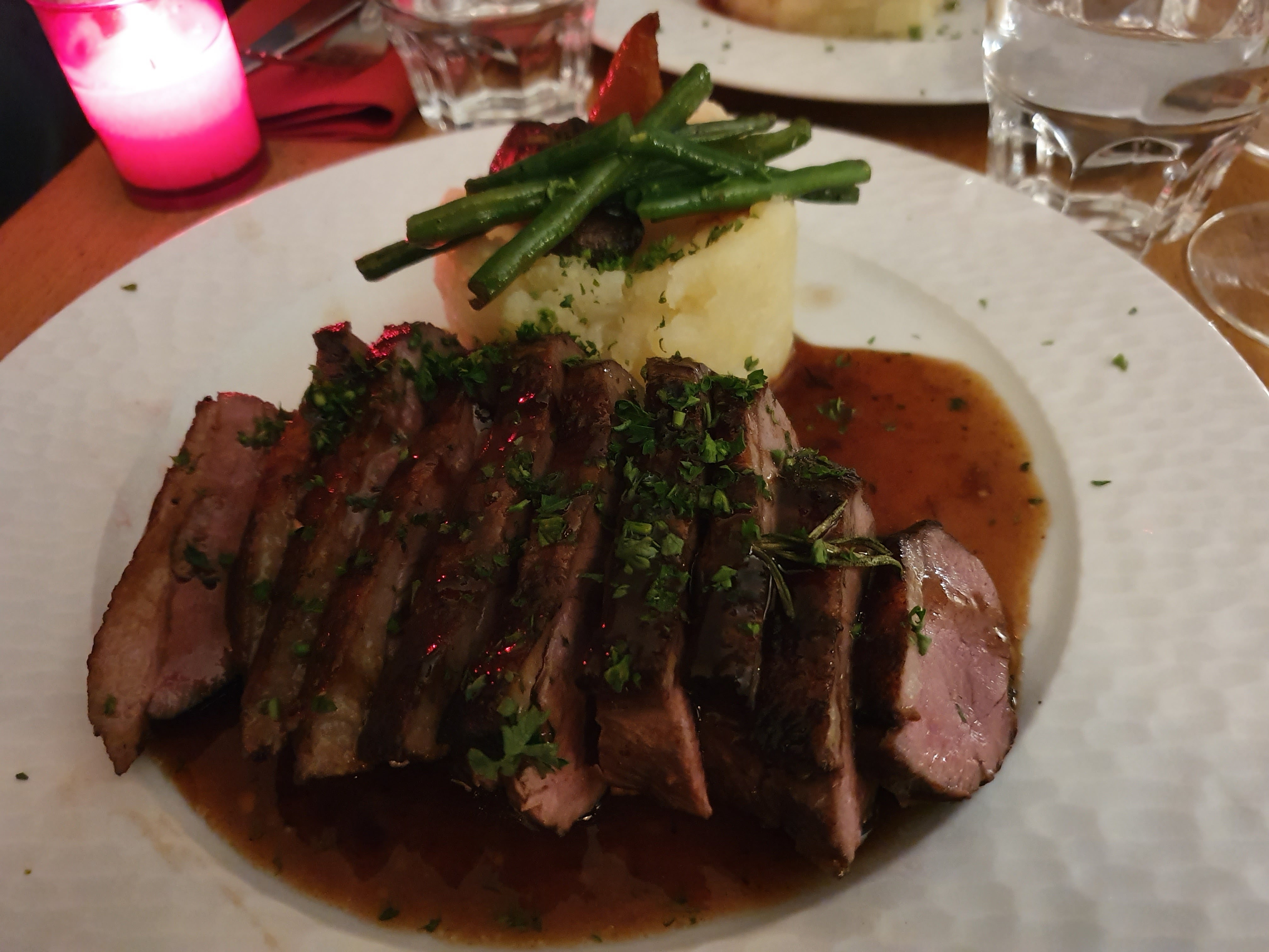 Le magret de canard est très bien. Mais ils ont servi du vin toute la nuit dans un verre autre que le verre à vin. C'est humiliant !
