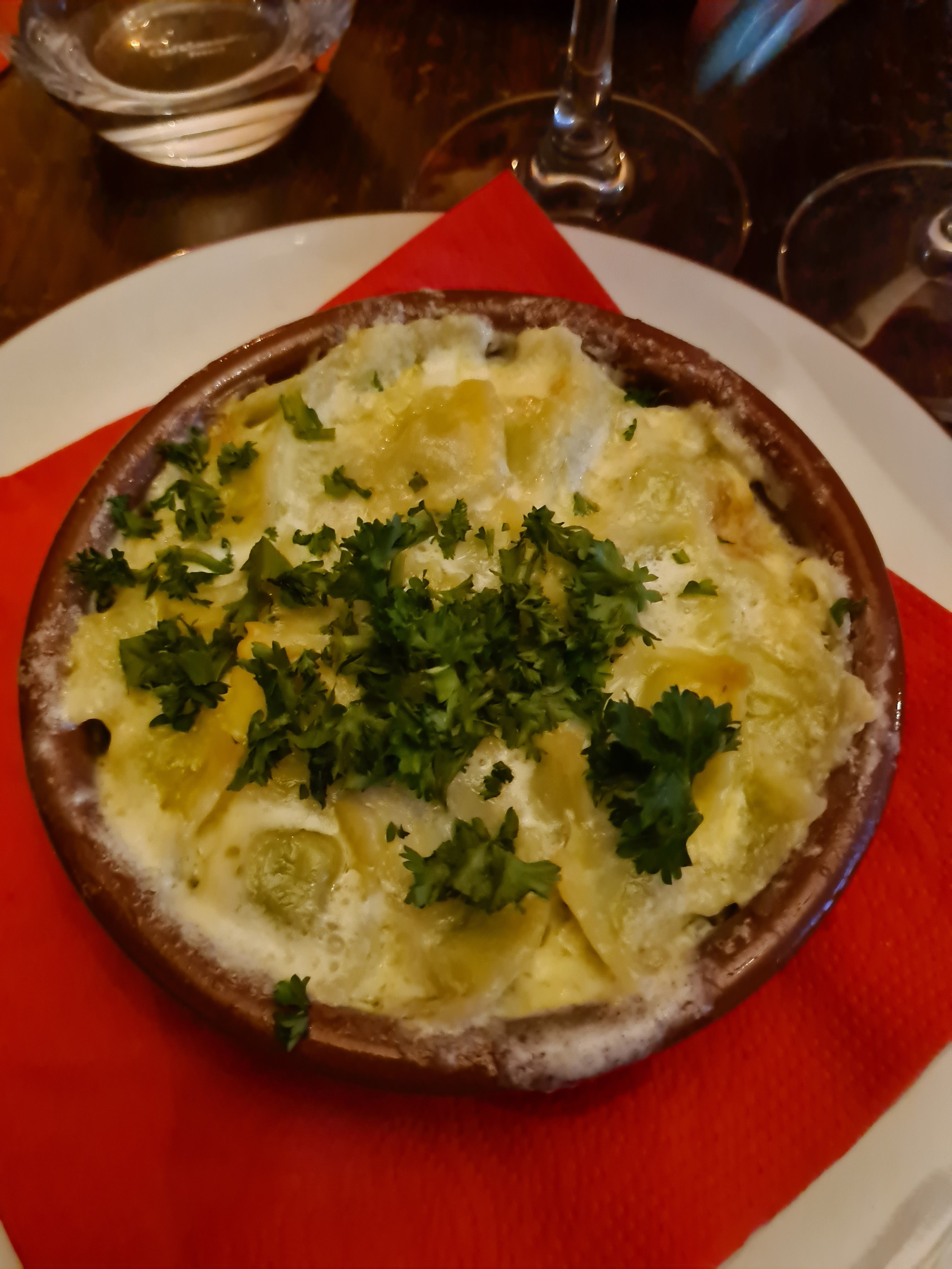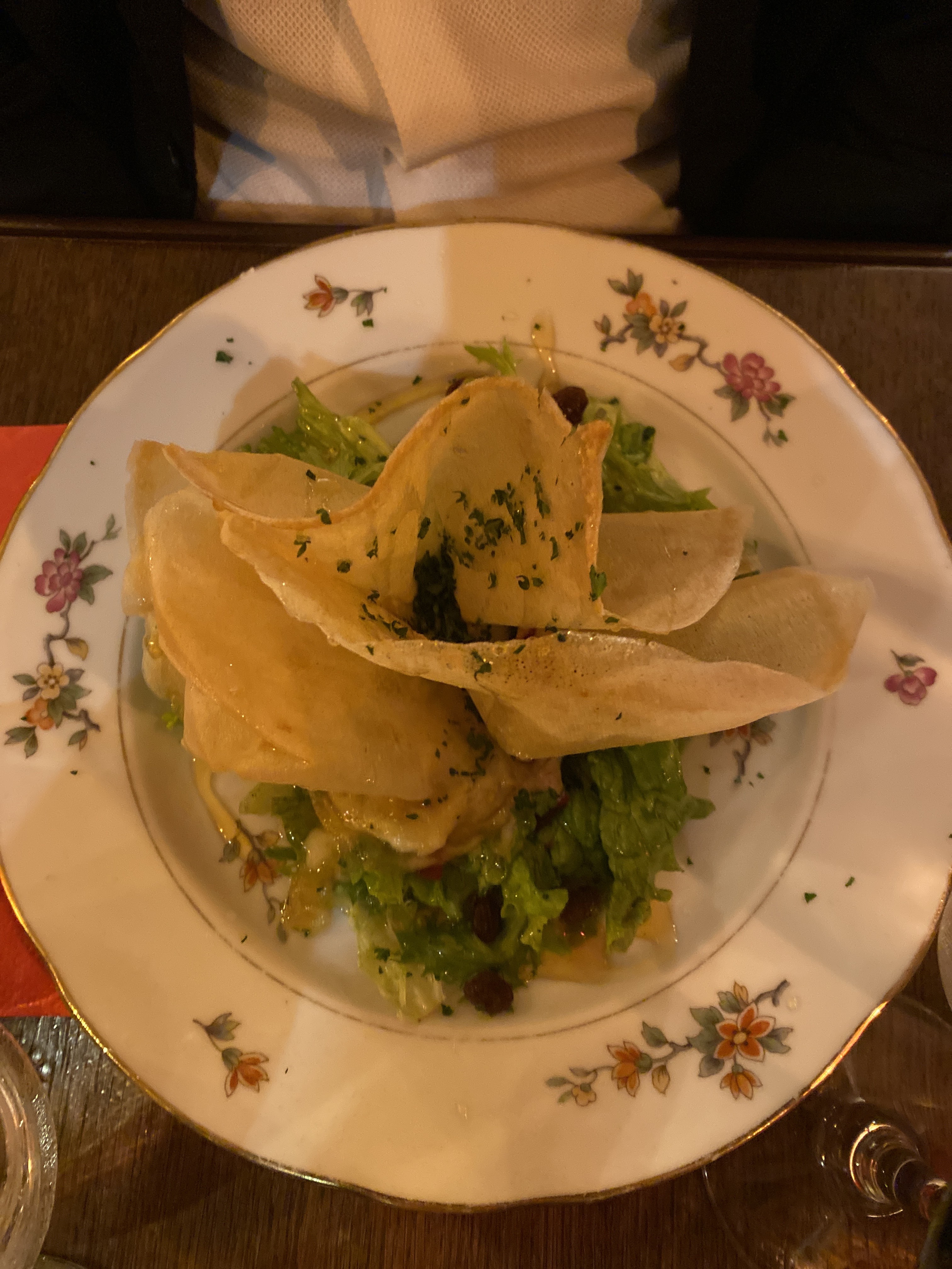 Très discret de l'extérieur mais cuisine excellente. En entrée nous avons eu le fromage fondu en salade et un foie gras. Les deux étaient vraiment très savoureux. Pour le plat principal, nous avions du poulet avec une sauce au champagne et des pommes de terre. Si vous vouliez gémir à un niveau très élevé, vous pourriez peut-être dire que le poulet est resté au four deux minutes de trop. Mais la sauce au champagne était incroyable ! D'autre part, le poisson du jour avec un risotto et une sauce au parmesan. On n'aurait pas cru que le poisson et une sauce au parmesan se marient si bien. La sauce était si crémeuse et parfaitement parfumée. La serveuse était également très gentille et a pris son temps et nous a recommandé un vin approprié. J'avais renversé de l'eau sur la serviette et elle ne l'a pas manqué non plus et elle m'en a immédiatement apporté une nouvelle. Le restaurant étant très petit, il vaut mieux réserver ou au moins arriver tôt.