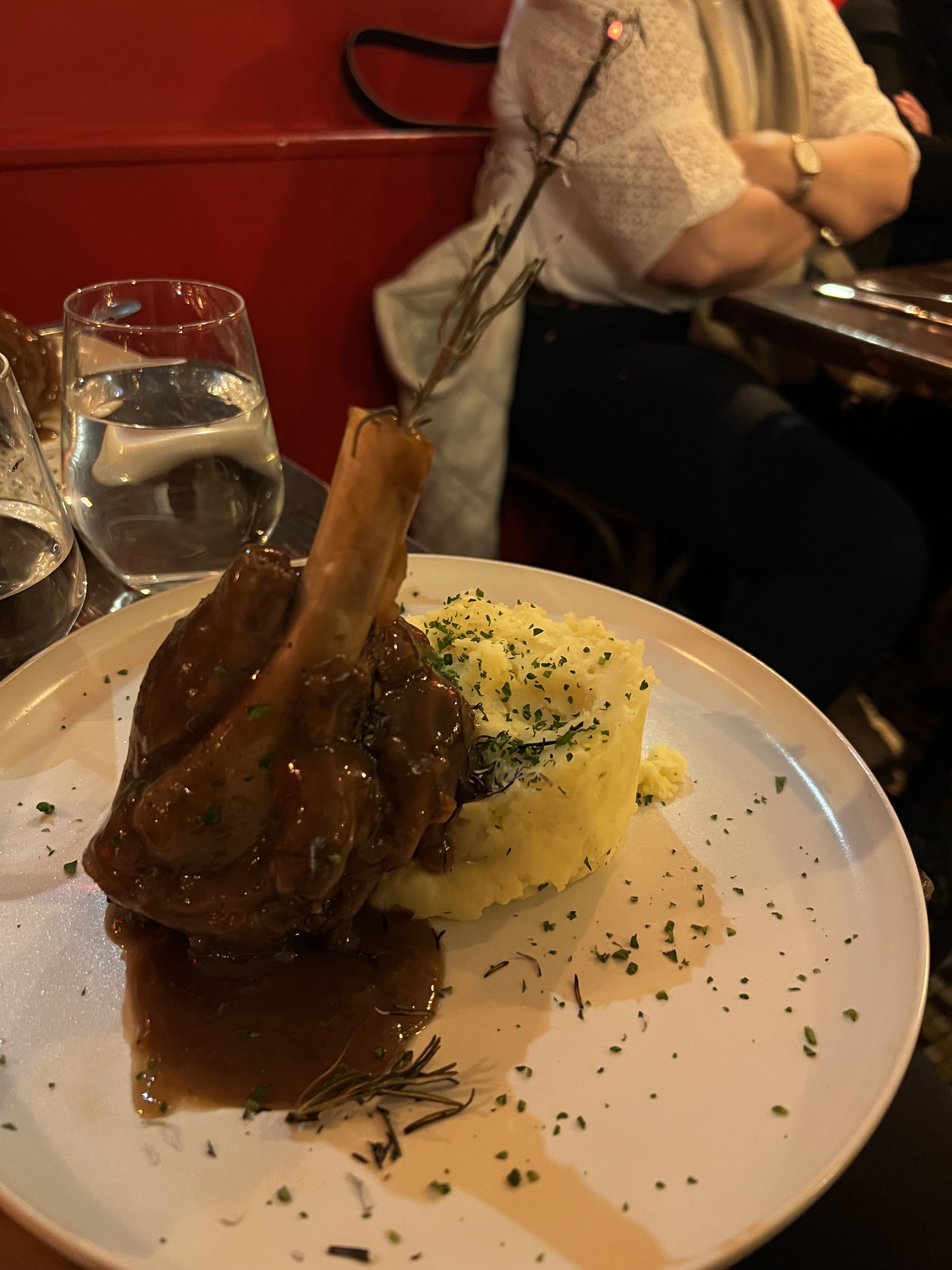 Nourriture délicieuse, excellent service. Bonne compagnie. Je ne sais pas ce que dit la 1 étoile. C’est un lieu authentique avec une majorité de Français. La nourriture est de très bonne base authentique. Nous avons mangé un jarret d'agneau cuit lentement pendant 7 heures et une réduction de vin incroyable. Il faudra faire à la maison.