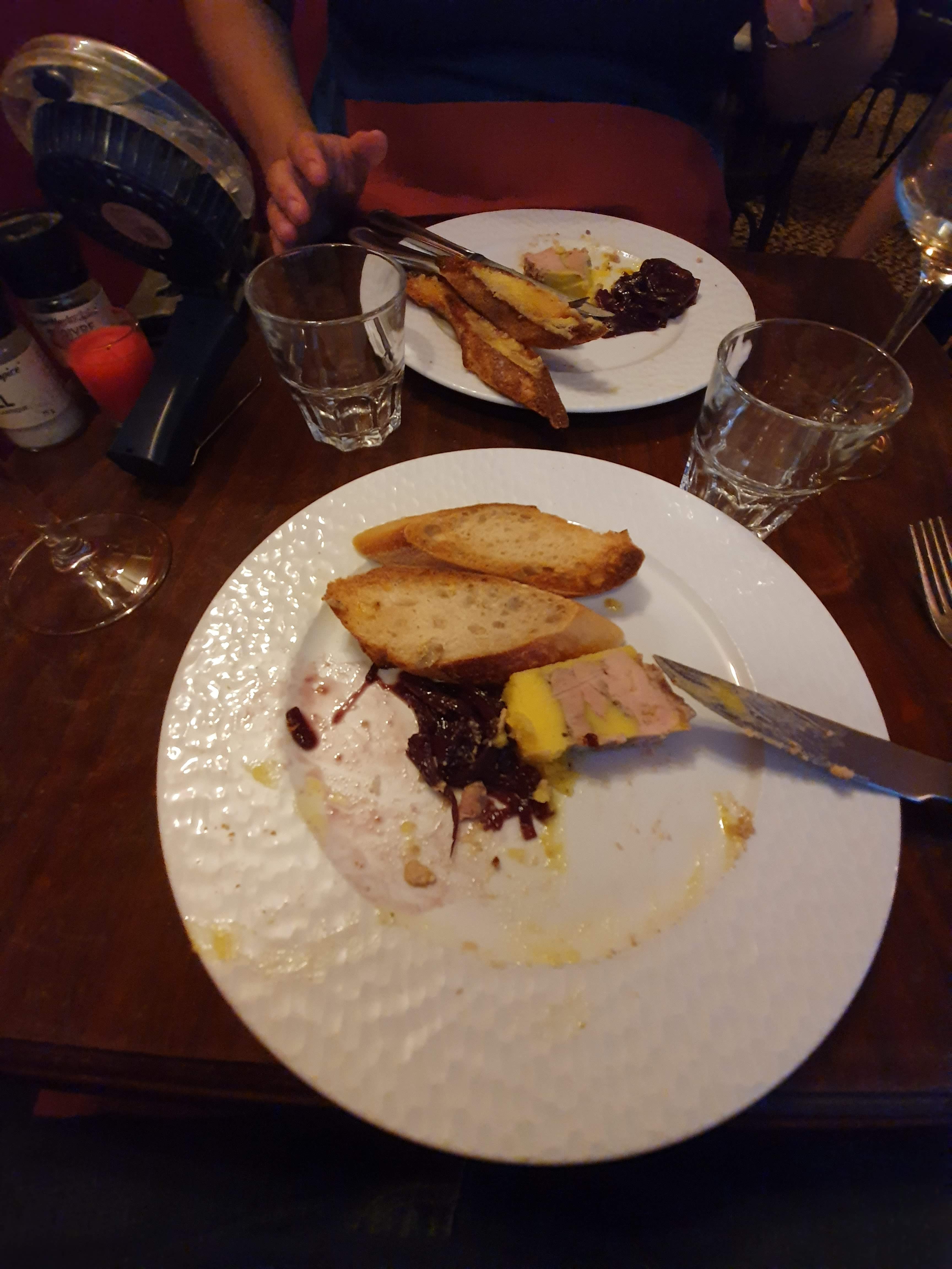 Vraiment décevant. Nous avons vu les excellentes critiques et étions vraiment impatients d'y aller, mais ce n'était tout simplement pas génial. C'était joli de l'extérieur mais ce n'était pas génial à l'intérieur. Ils ont assis une table de 5 personnes après nous (nous étions 2) et ils les ont servis en premier, ce qui signifie qu'ils ont manqué de 2 des 5 entrées avant de pouvoir nous servir. J'ai eu les moules, elles étaient bien présentées mais nous sommes vraiment trop cuites et avions le goût amer de l'ail brûlé. Le magret de canard avait l'air incroyable, mais si vous savez quelque chose sur le magret de canard, il était vraiment mal cuit. La graisse n'était pas du tout fondue donc elle était moelleuse, et la viande avait l'air rose mais n'avait visiblement pas été laissée au repos (beaucoup de sang dans l'assiette) et donc elle était vraiment sèche. Nous avons commandé les fromages fermiers du moment en dessert et on nous a présenté 3 petites tranches d'un fromage, nous l'avons donc simplement renvoyé. Le repas s'élevait à 100 € et était vraiment décevant - il avait l'air super mais avait un goût moyen à médiocre. Pas beaucoup de Français là-bas, ce qui était probablement un cadeau, beaucoup de touristes.