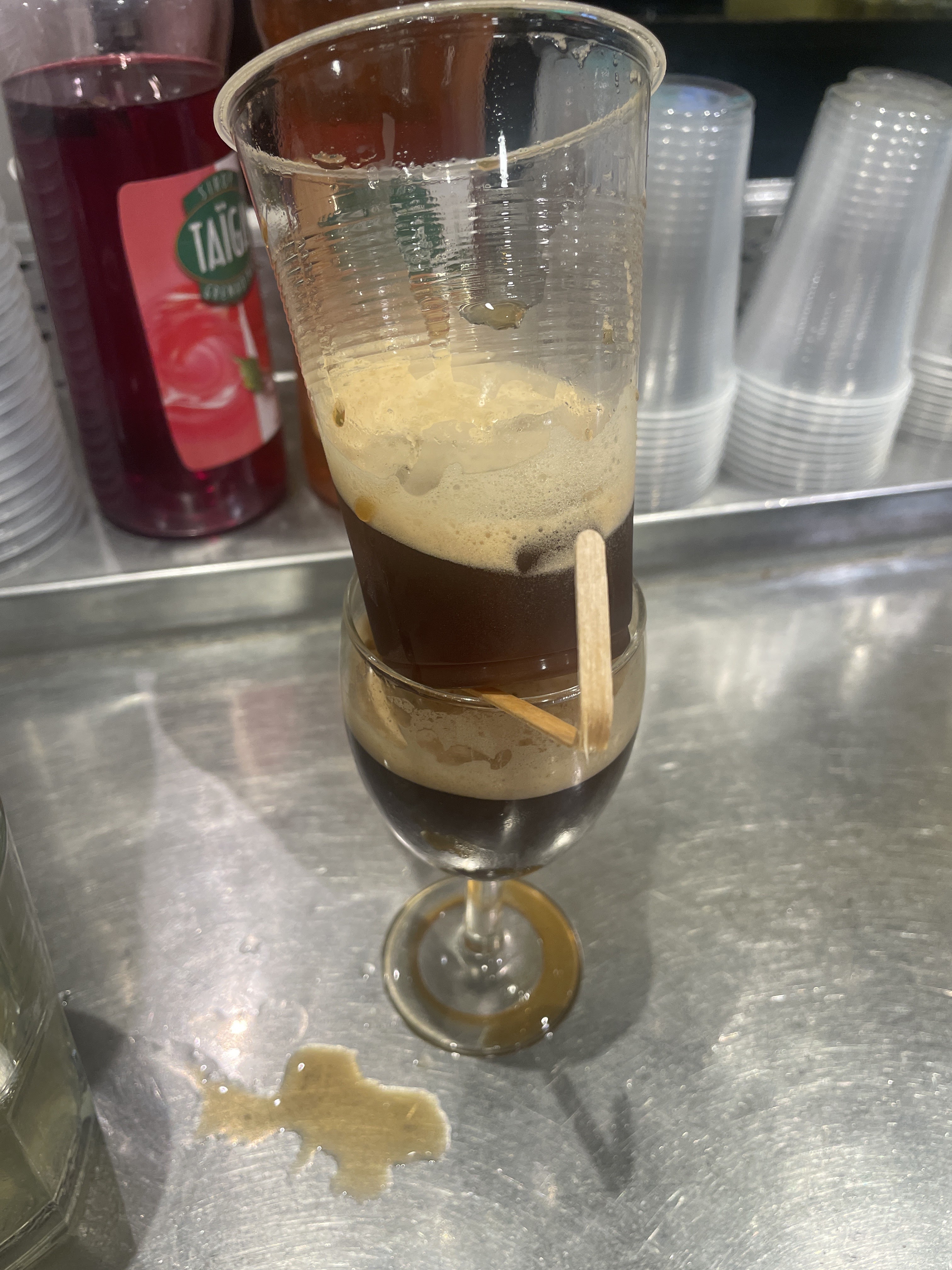 On me dit que cet endroit est l'endroit où tout le monde veut aller. Je ne sais pas pourquoi ?? Parce qu'ils servent de la bière au mètre, ce qu'ils veulent dire en réalité, c'est qu'ils vous en serviront 14 moitiés, ce qui, si vous placez les gobelets en plastique les uns à côté des autres, couvrira un mètre. La bière n'est pas géniale, ce n'est pas mon type de bière préféré, elle est certainement un peu dure et prête, mais elle est bon marché, selon ce que vous avez, elle coûte environ 3 € la moitié. je ne reviendrai pas précipitamment