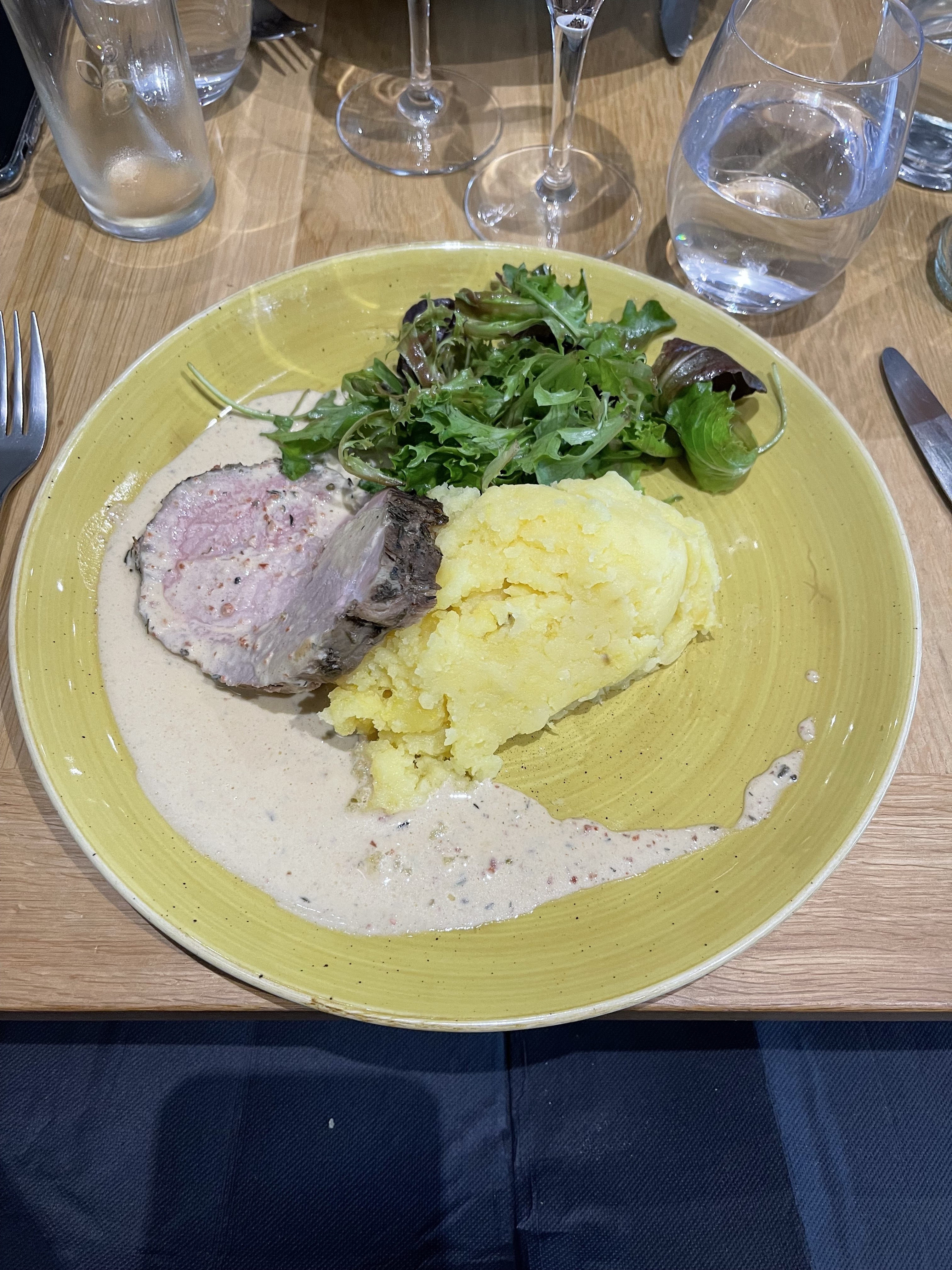 Super accueil , belle décoration . Pour ma part j'ai pris une pièce de boeuf saignante , cuisson parfaite , viande tendre . En clair très bon restaurant.