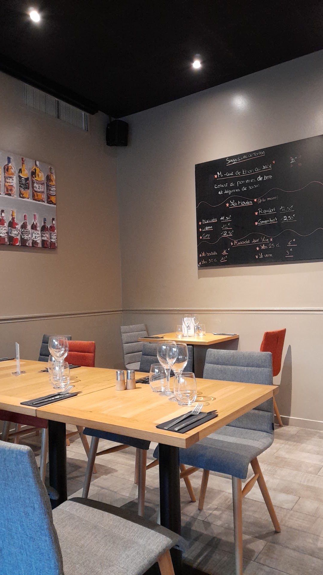 Repas délicieux malgré les erreurs de plat commise à l entrée et au plat. Moule au camembert au lieu de moule au chorizo par exemple. On as mangé quand même et c était très bon. L accueil est top. Sinon le steack tartare coupé au couteau est tres bon. Par contre un restaurant sans carte est très difficile car il faut scanner un QR Code et si vous avez pas de portable ou un pas assez avancé et bien pas de carte. On nous a lu la carte. Pas pratique quand même.