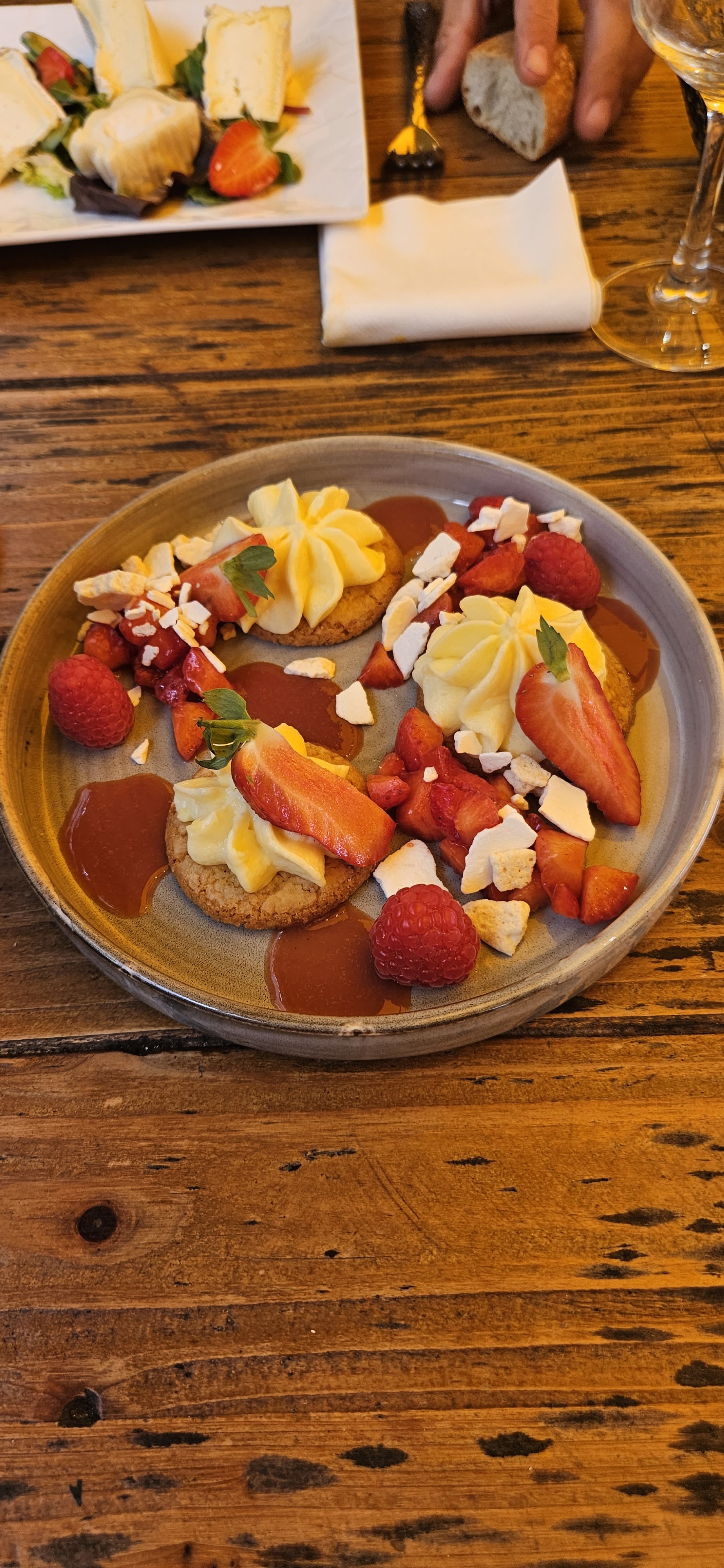 Restaurant trop cher. 34€ le prix du menu entrée, plat et dessert. Le service est rapide pour le nombre de client à servir. Mieux vaut réserver, ou arriver assez tôt. Salade chèvre très bonne, mais les fraises ne sont pas fraîches, elles sont décongelées. Dommage. Pour le mi cuit, il faut dire qu'il n'est pas cuit, le cœur est bien liquide mais les bords sont à peine cuit. Crème anglaise qui n'en est pas une, dommage. Je ne reviendrai pas. Sinon nous sommes en 2022, donc merci de présenter la carte des vins à Madame et Monsieur et pas exclusivement à Monsieur ! Les femmes aussi peuvent boire et choisir leur vin.