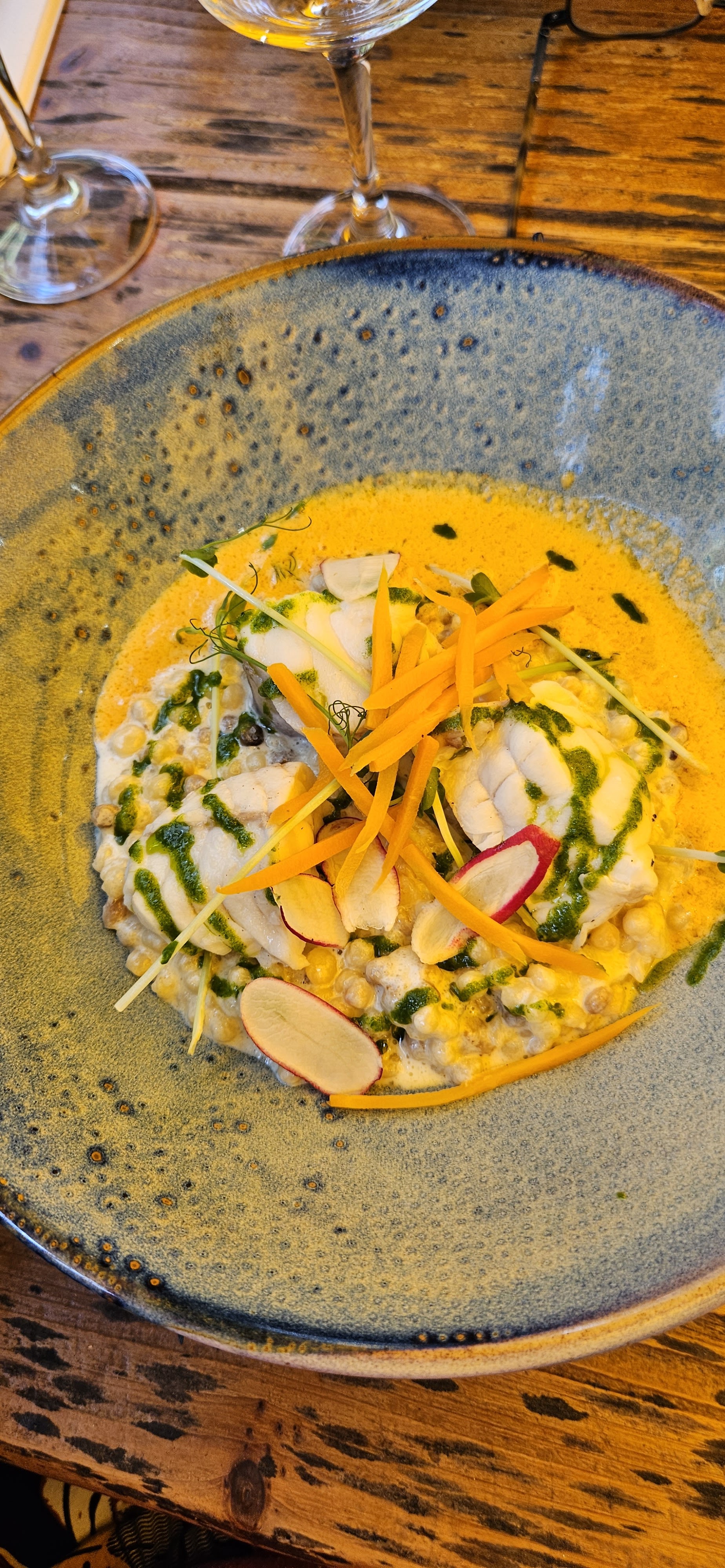 Personnel bien a la écoute peut être un professionnalisme un peu forcé. Côté cuisine, une carte alléchantes mais dans la réalisation des plats un peu de déception; Côte de veau un peu trop cuite, cabillaud idem et froid et un peu léger côté quantités. Quand au dessert l' assemblage de la description des parfums et texture sur la carte ne fait pas son effet dans l'assiette. Au vu de la qualité des produits utilisés, je penses qu'il ne s'agit que de quelques réglages et de rigueur de manière a satisfaire A la promesse de la carte. Pour conclure je serais prêt à y retourner pour confirmer ou infirmer mon commentaire