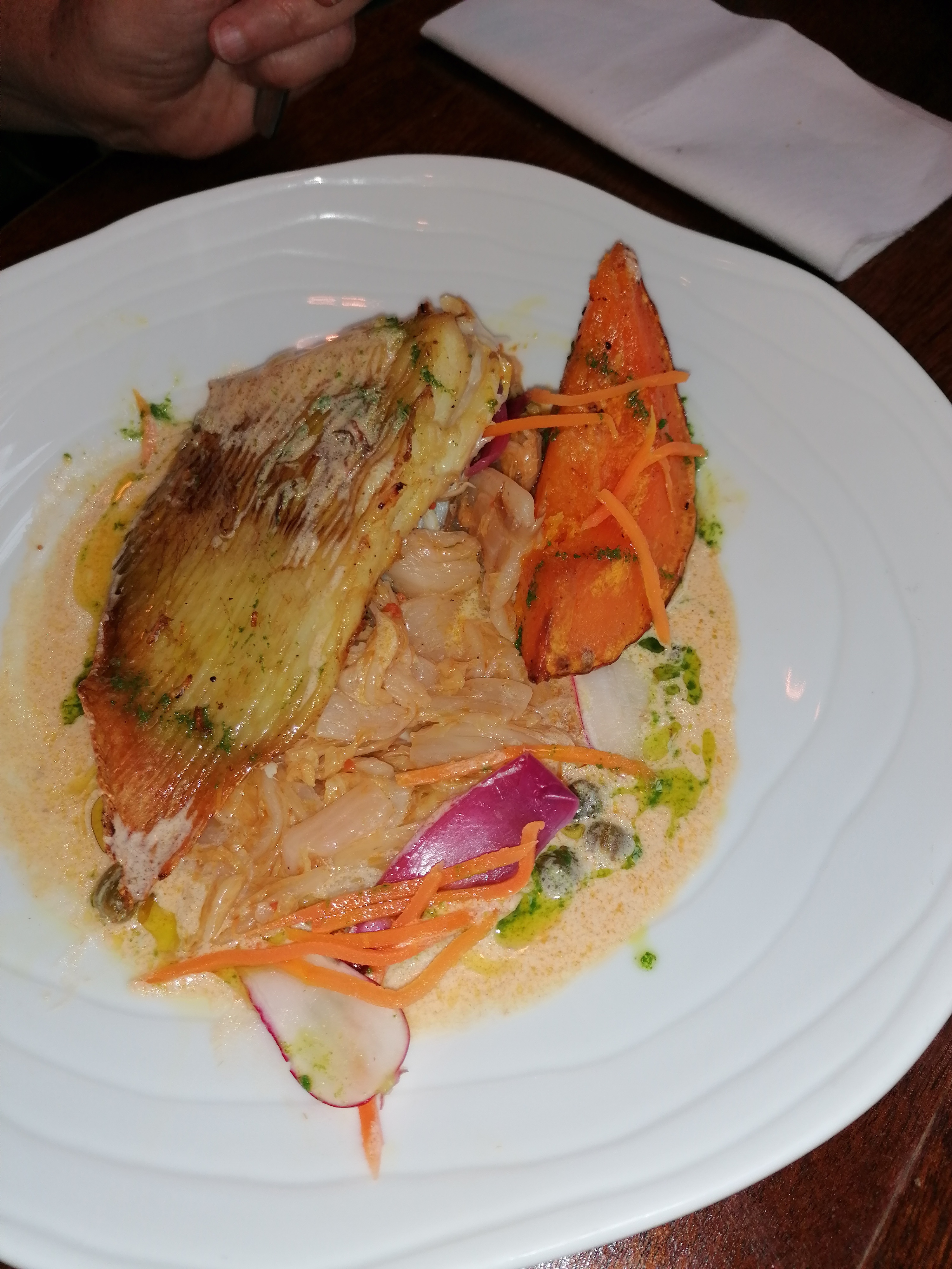 Enorme coup de coeur pour leur queue de lotte et leur soupe de poisson! Ce qui en fait une excellente adresse pour un restaurant qui donne sur le port. Un peu déçu du dessert.