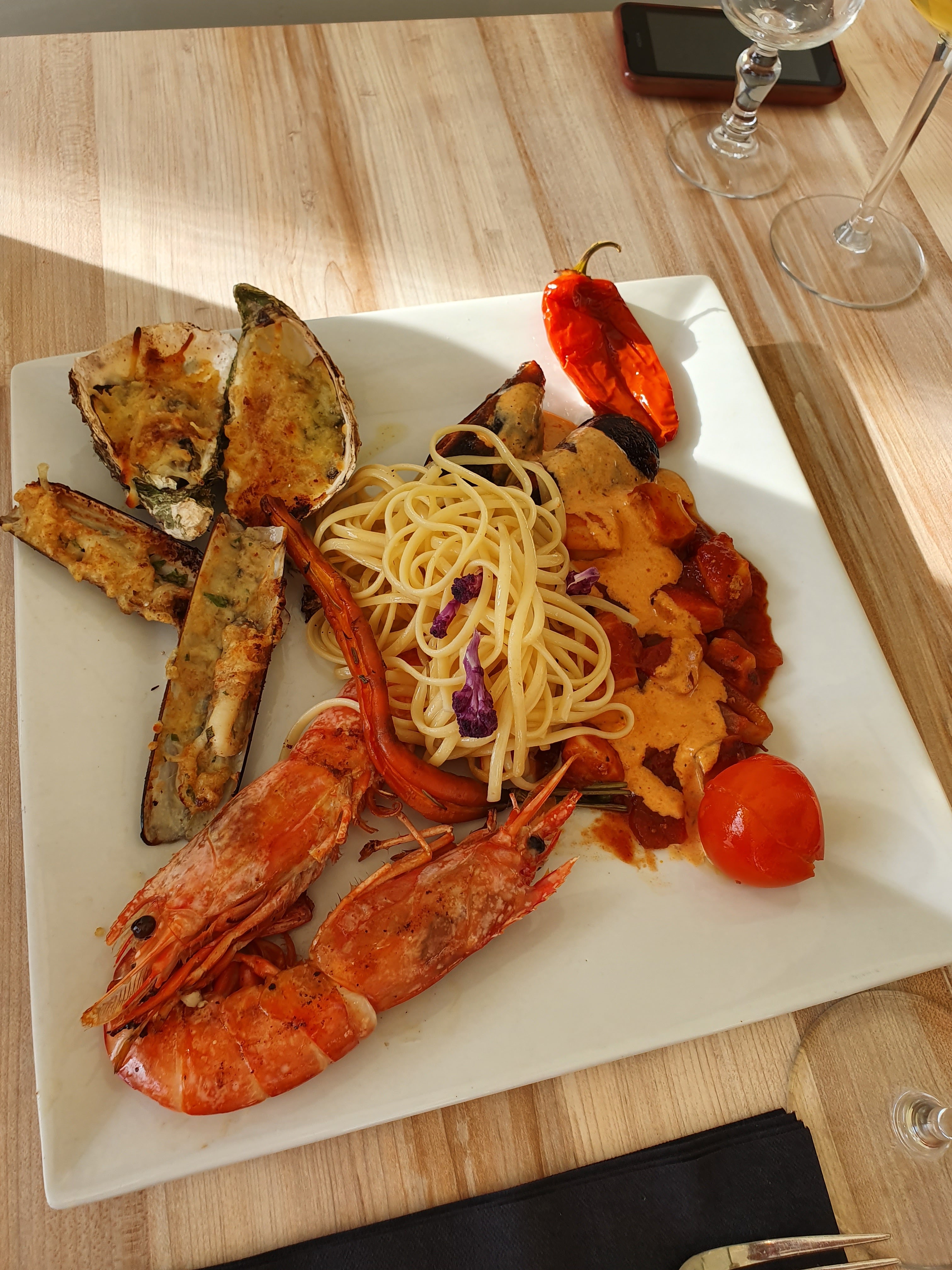 Huîtres non affinées donc très très salées, rouille servie avec des pâtes ! J ai connu nettement mieux !