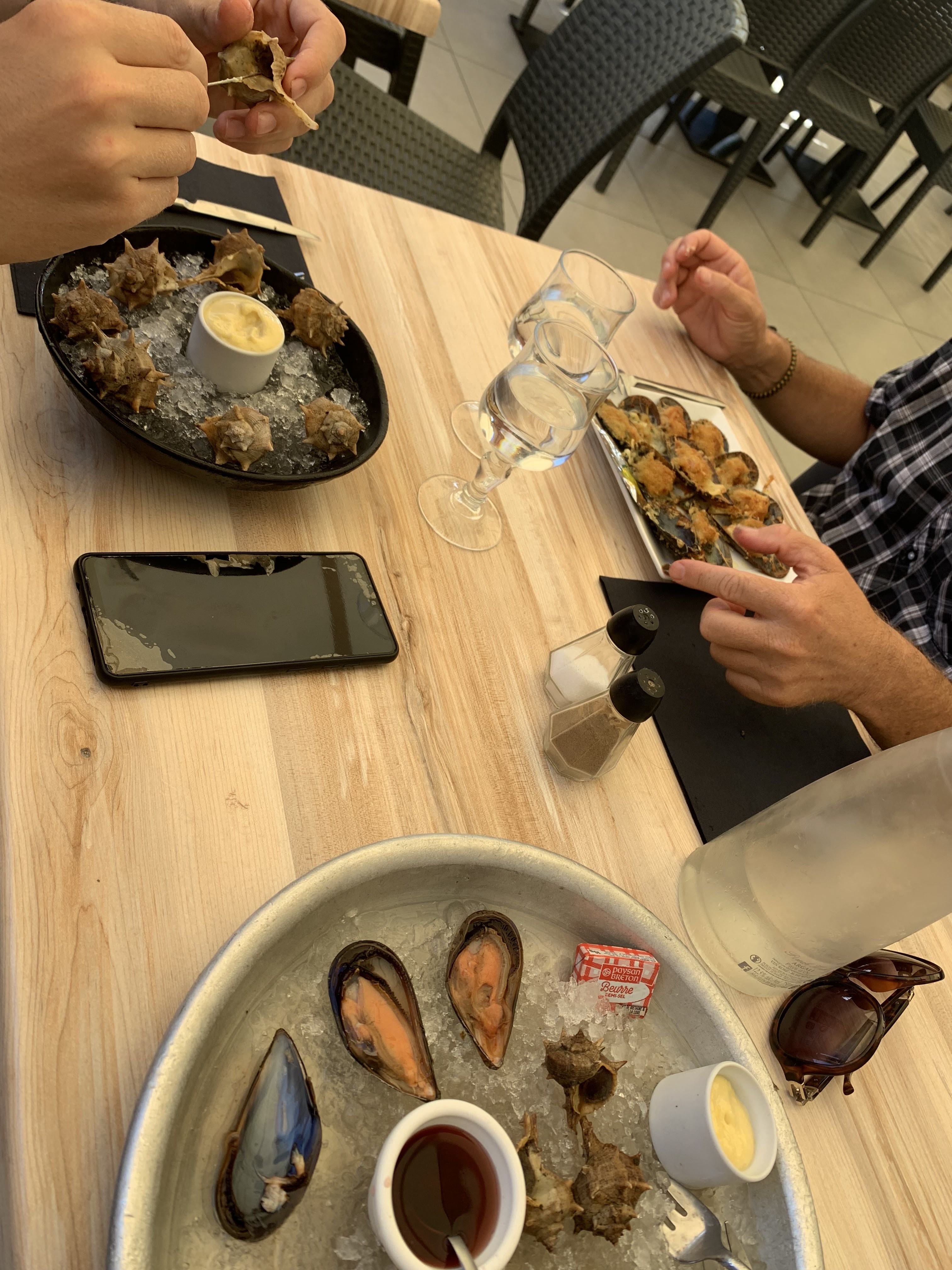 Un repas insipide. Des moules marinières avec une sauce à l'eau, on ne risque pas de se tâcher. Des moules farcies avec un aïoli sans goût, on se demande si le cuisto est bien d'ici. Même pour le vin blanc, il a fallu demander des glaçons pour que la bouteille reste au frais. Bref, ne vous arrêtez pas, passez votre chemin sauf si c'est pour les serveurs qui sont très sympa.