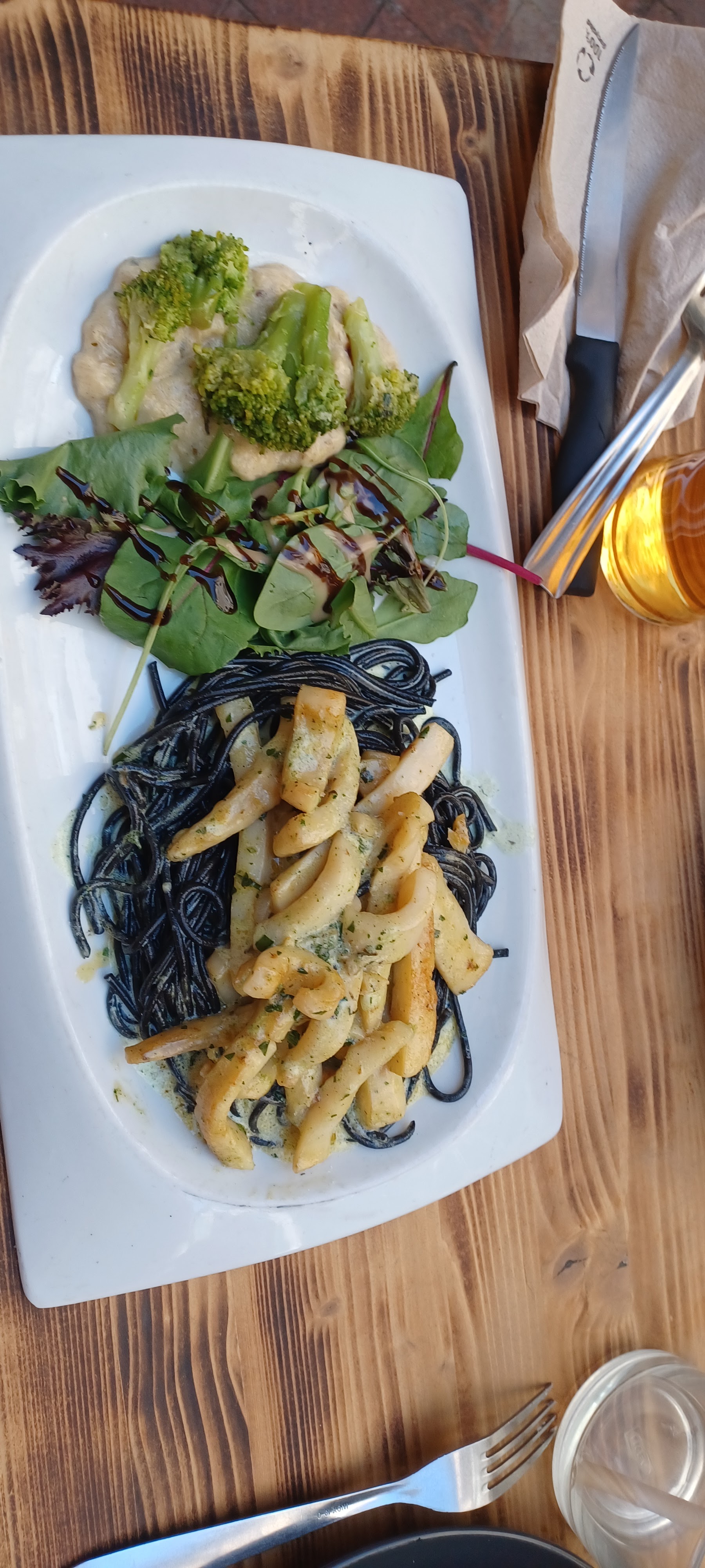 Le dynamisme et le sourire des restaurateurs était très sympa. Ceci étant dit, si les bouteilles de vin étaient bonnes, la qualité des plats proposés n’était pas à la hauteur du temps passé à les attendre. Les gambas étaient trop cuites, les pâtes végés trop salées, les portions petites et les digestifs trop sucrés. Bon point pour le tiramisu et la moussaka. Encore merci pour l’accueil chaleureux et cette belle terrasse ! Nous avons passé un bon moment malgré tout ! :)