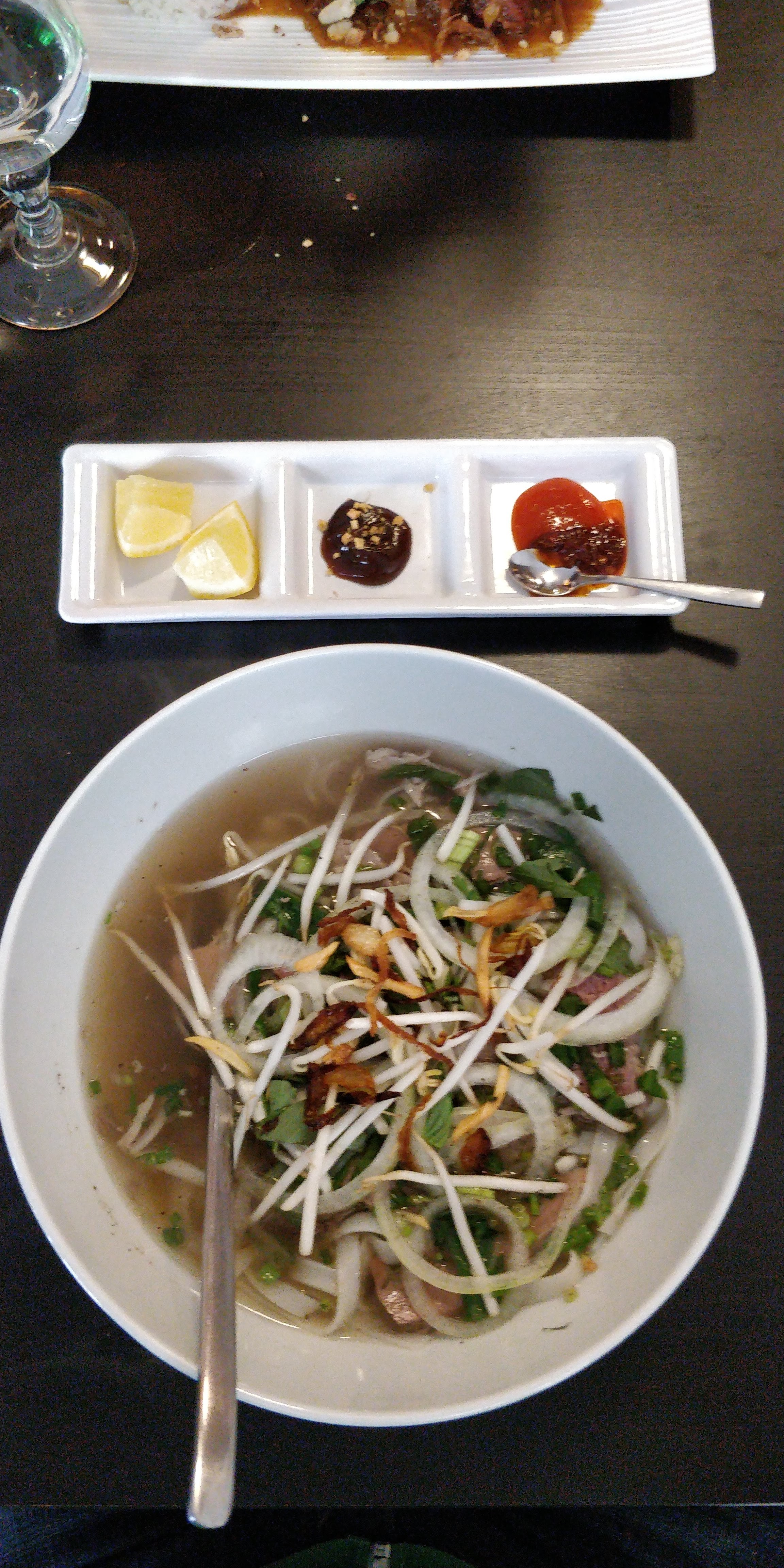 Une première pour moi. Excellent bouillon vietnamien qui m a fait transpirer du scalpe comme je l esperais. Patron très simpa et communicatif qui a de jolies bouteilles. La serveuse est aussi vraiment simpathique. Je reviendrai
