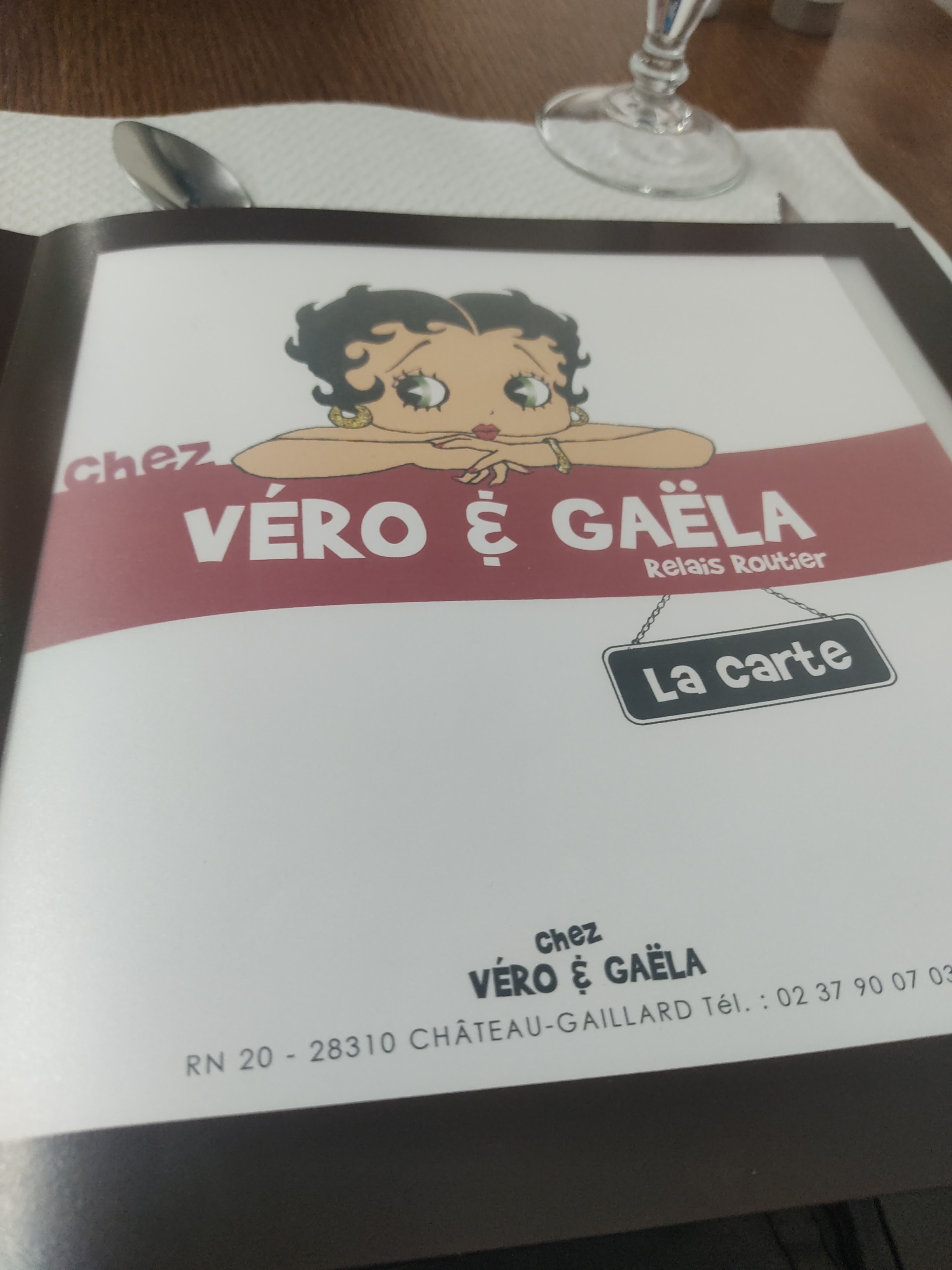 Sur la rapide nationale 20 un ralentissement à 50 kmh au lieu dit Château Gaillard. C'est en Haut de la pente que l immense parking de Vero et Gaela est toujours bondé. Bon signe ! Arrivée aujourd'hui vers 16h :on sert encore. Le choix proposé est très large et les portions généreuses. Le décor est simple avec des délicatesses, les rideaux par exemple. On mange ensemble. Les clients sont familiers, les étrangers bien accueillis. Les plats proposés sont souvent faits maison. Et l'addition est légère, légère !...