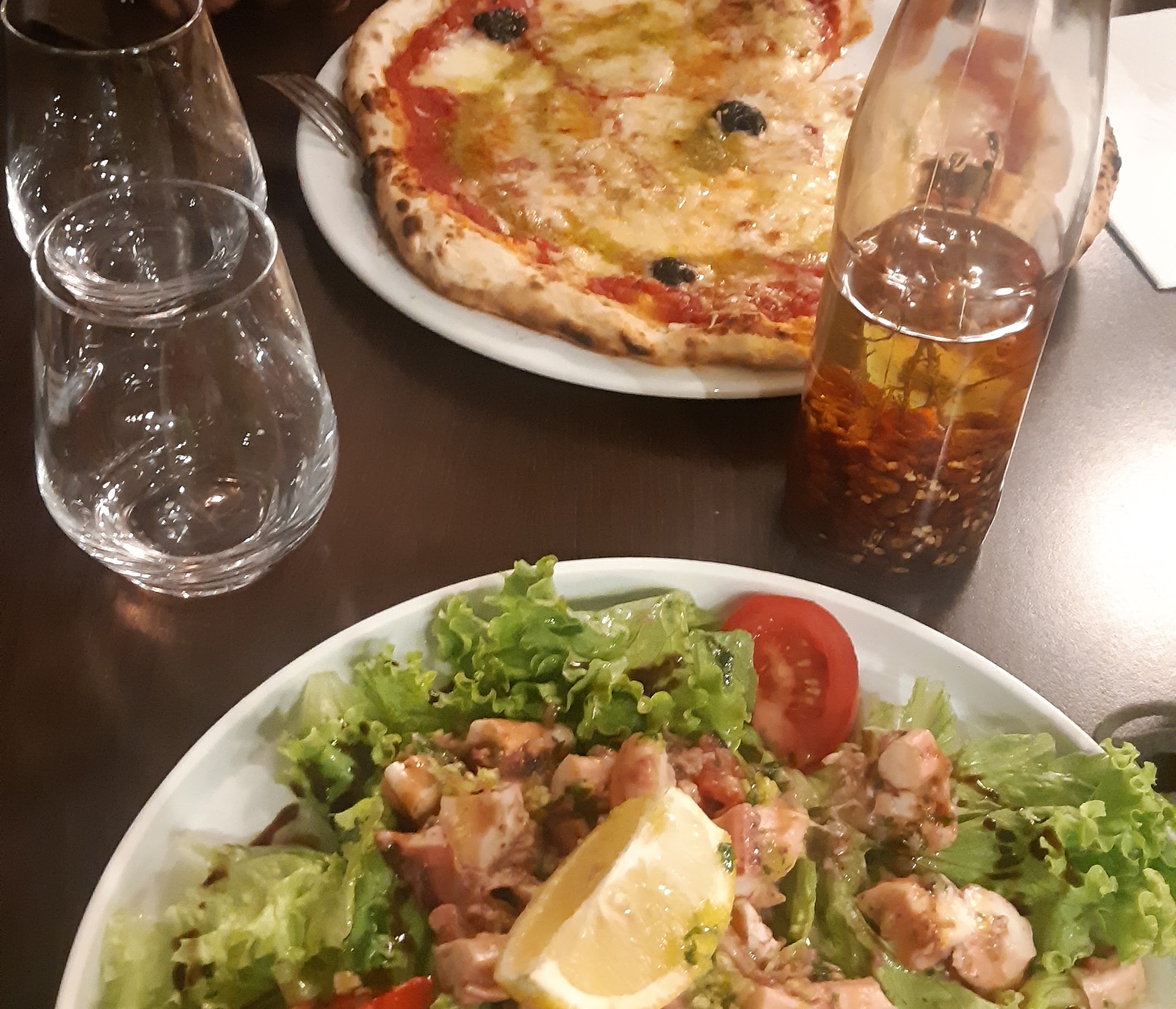 Franchement très très bon resto le serveur était vraiment très sympa le pizzaiol était également très gentil très attentionné. je pense que ça va être un de mes restos préférés mon fils a vraiment adoré la pizza et moi ma salade de poulpe était vraiment parfaite le poulpe était tendre franchement rien à dire.