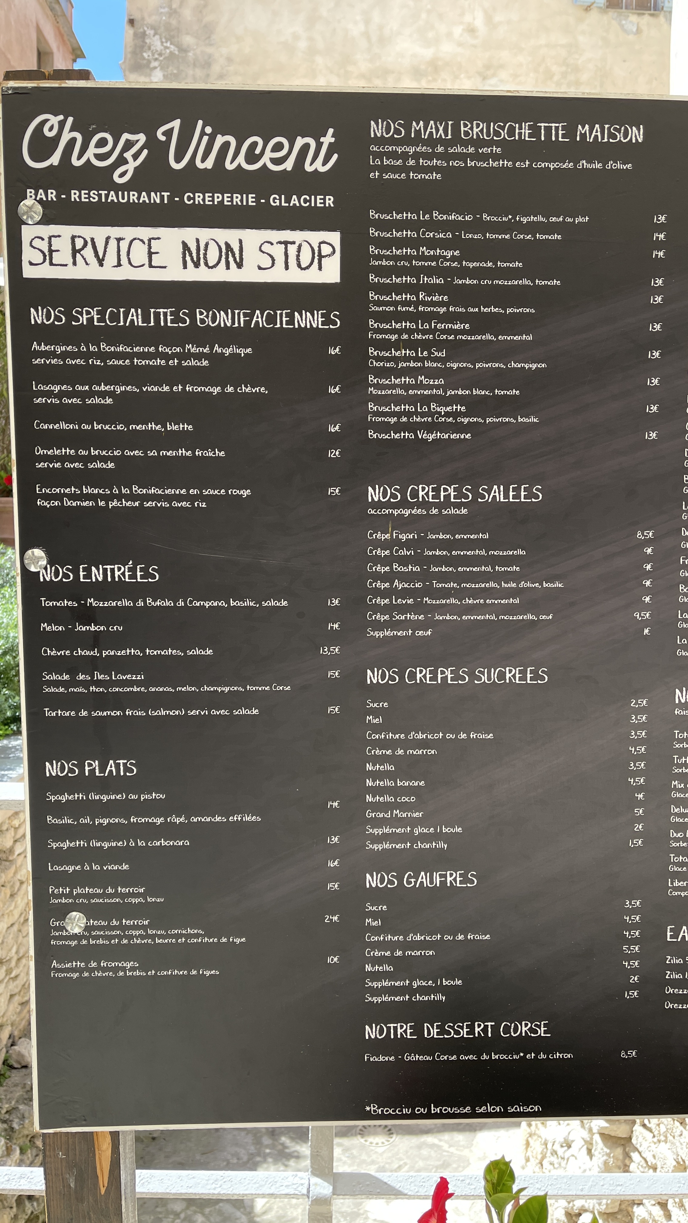 Des glaces au top! Particulièrement les parfums locaux pour moi: cédrat, clémentine, orange corse….ou encore miel, figue, myrthe! Le patron Vincent est un vrai personnage sympa et authentique. Nous sommes venus tous les jours cette semaine pour en profiter.