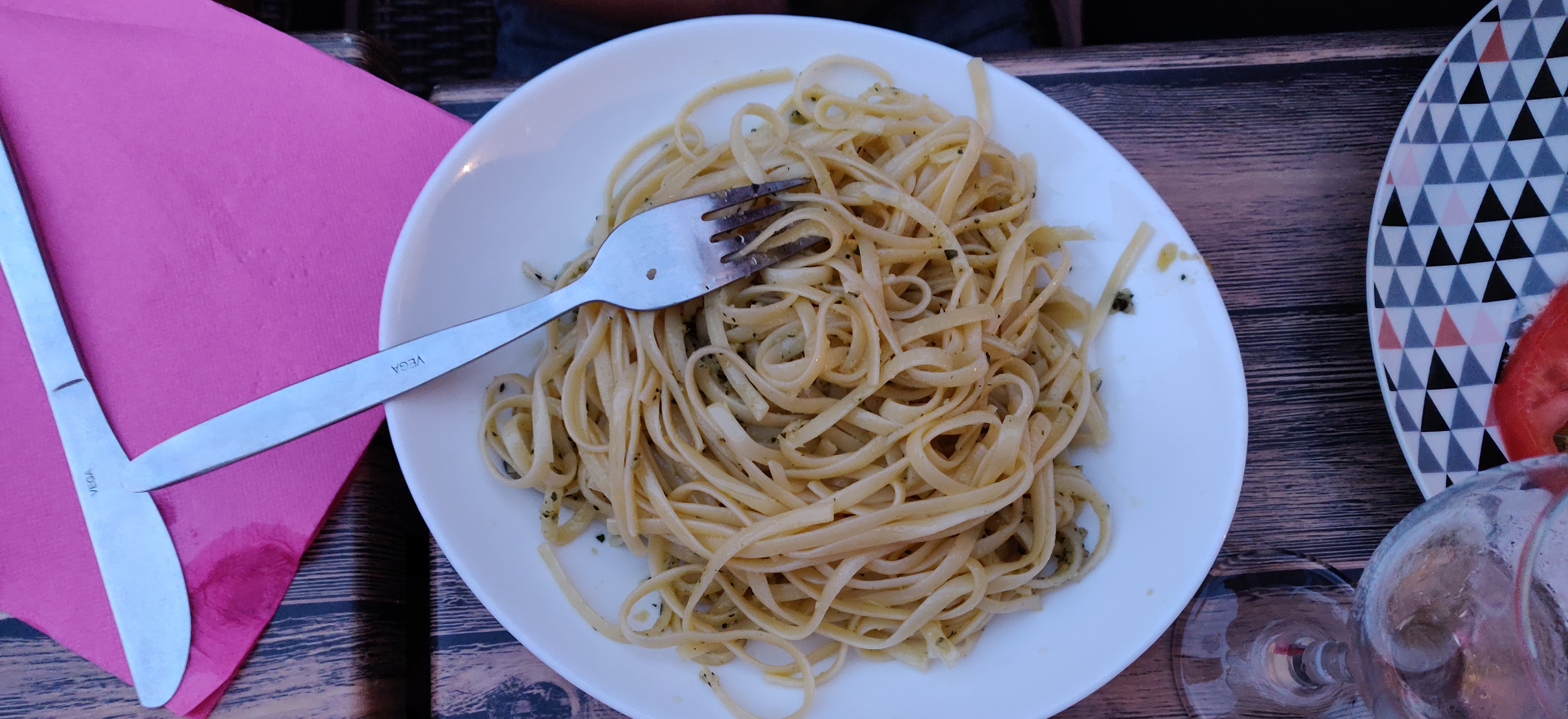Linguine très bonne prix très abordable 12.5€.( Planche de charcuterie 20€ un peu cher mais comme sur toute l île ) service rapide , serveur et serveuse agréable . Terrasse super cosy a mon gout. Je recommande pour ceux qui veulent manger rapide pas cher et surtout dans la citadelle.