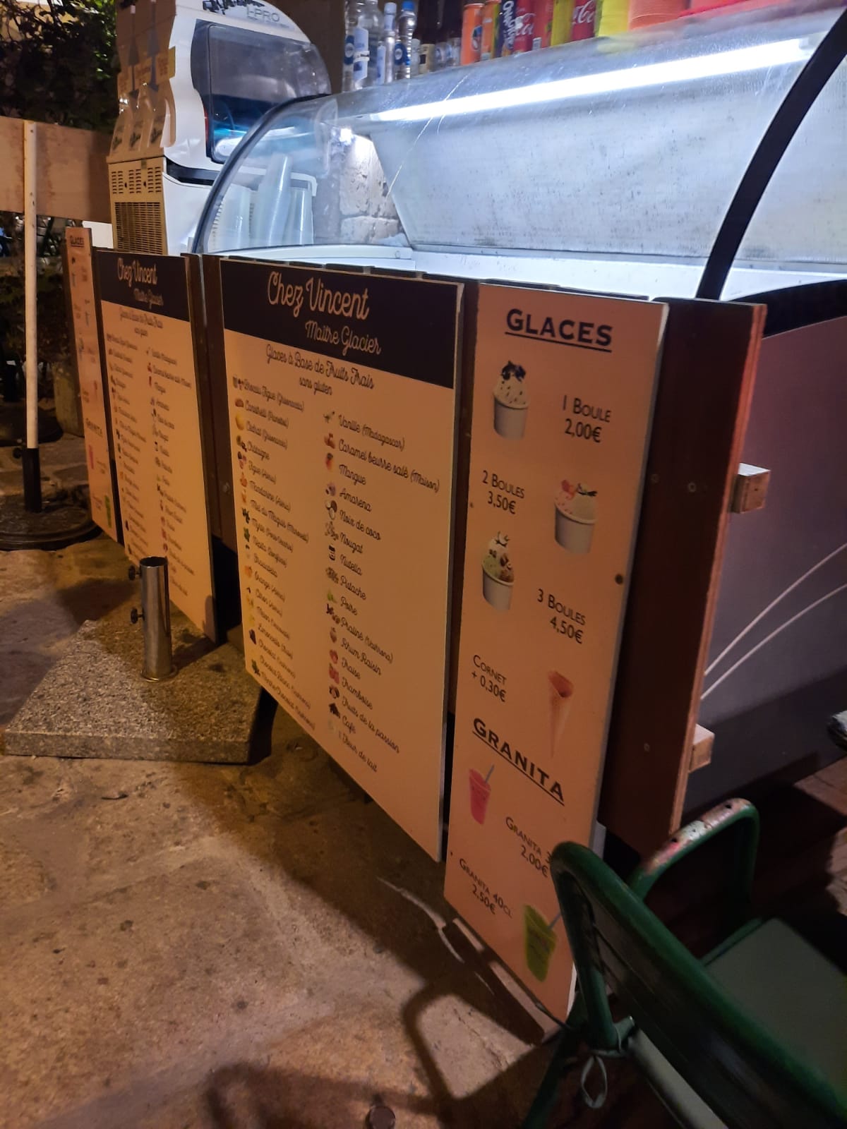 En vacance avec des amis nous sommes bien sûr a bonifacio l incontournable âpres un bon p'tit repas en terrasse nous decidions d arpenter les rues de bonifacio pour deguster une bonne glace et par le plus grand des hasards nous tombions sur ce glacier chez Vincent et quelle decouverte de super bonnes glace a des tarifs imbattables et un accueil très chaleureux une adresse qui on garderas en tee
