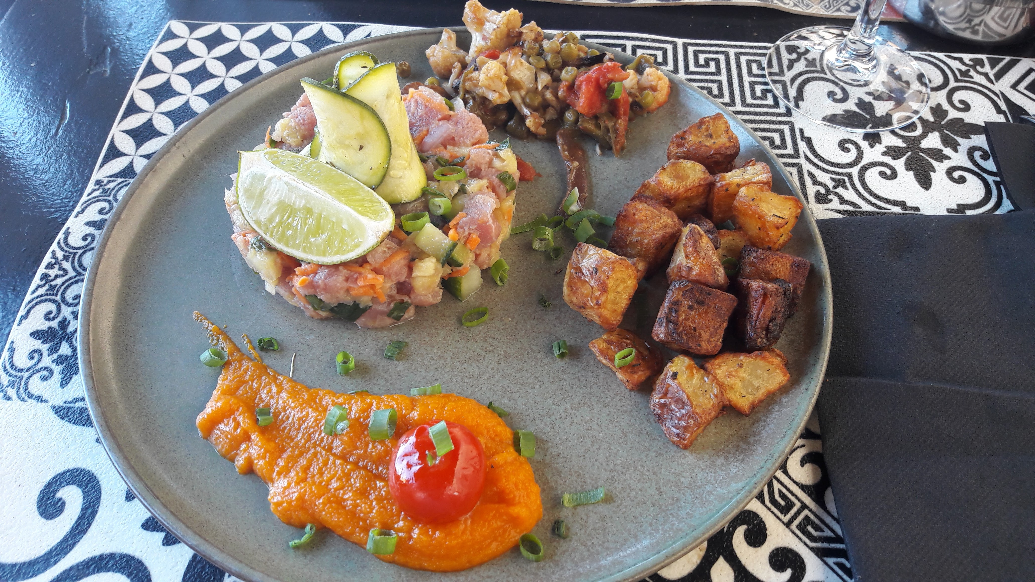 Restaurant charmant avec une très jolie vue et des pizzas aussi originale qu'excellente, mais également des plats fins et recherché (photo : tartare de ton ananas gingembre accompagné de patate et patate douce)