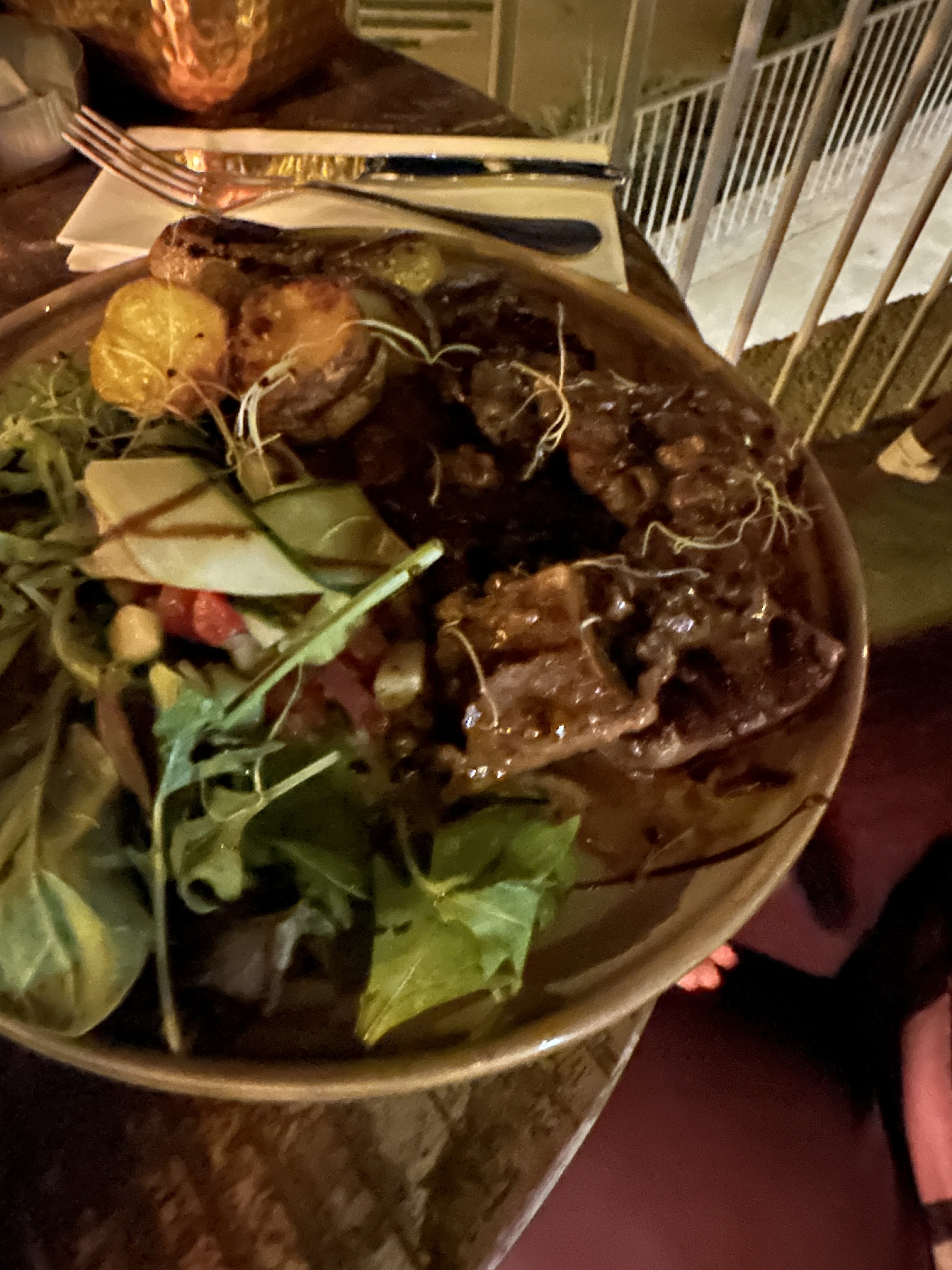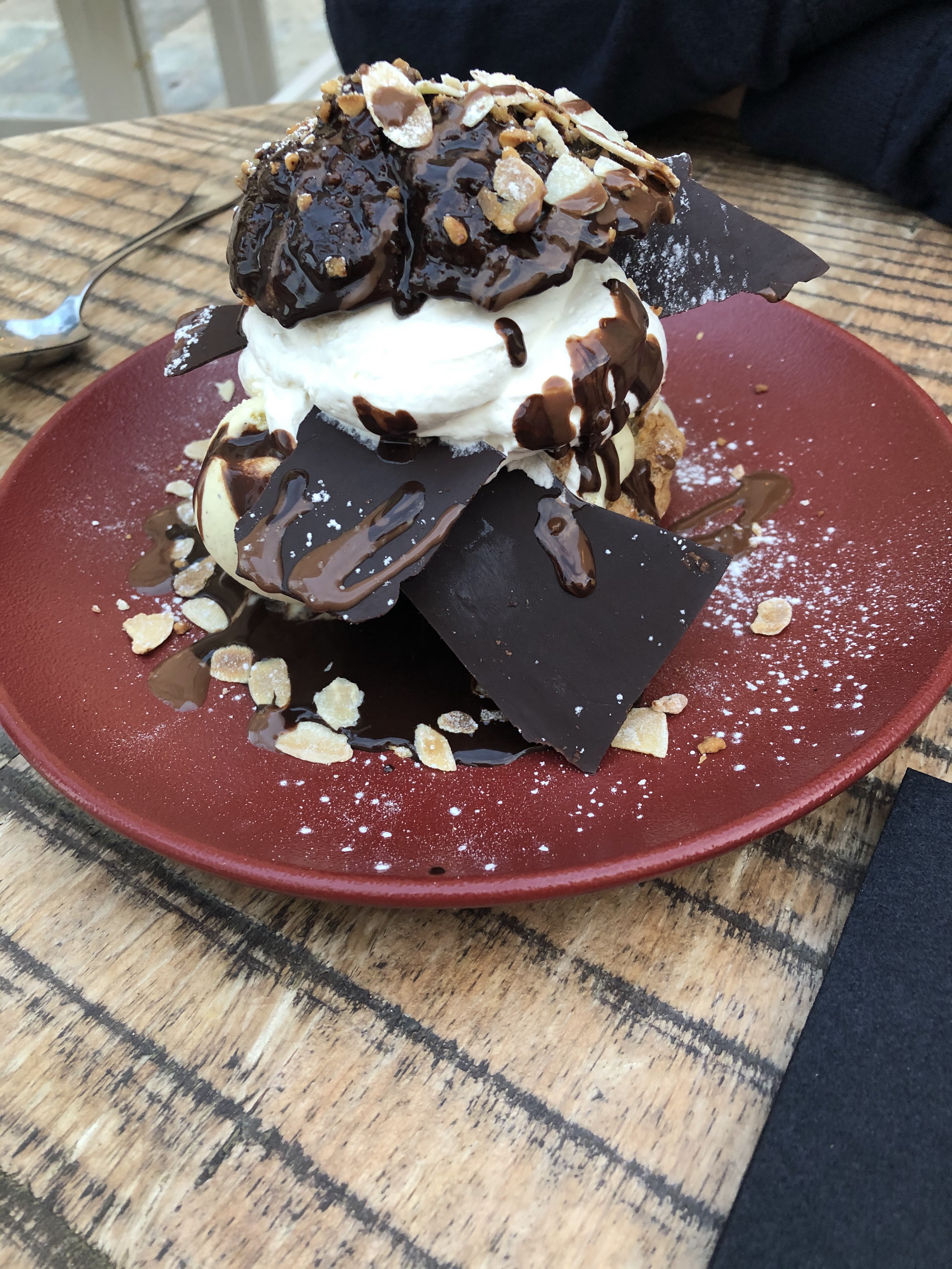 Sympa,très bon,une belle vue. Filet de bœuf en croûte et profiterole
