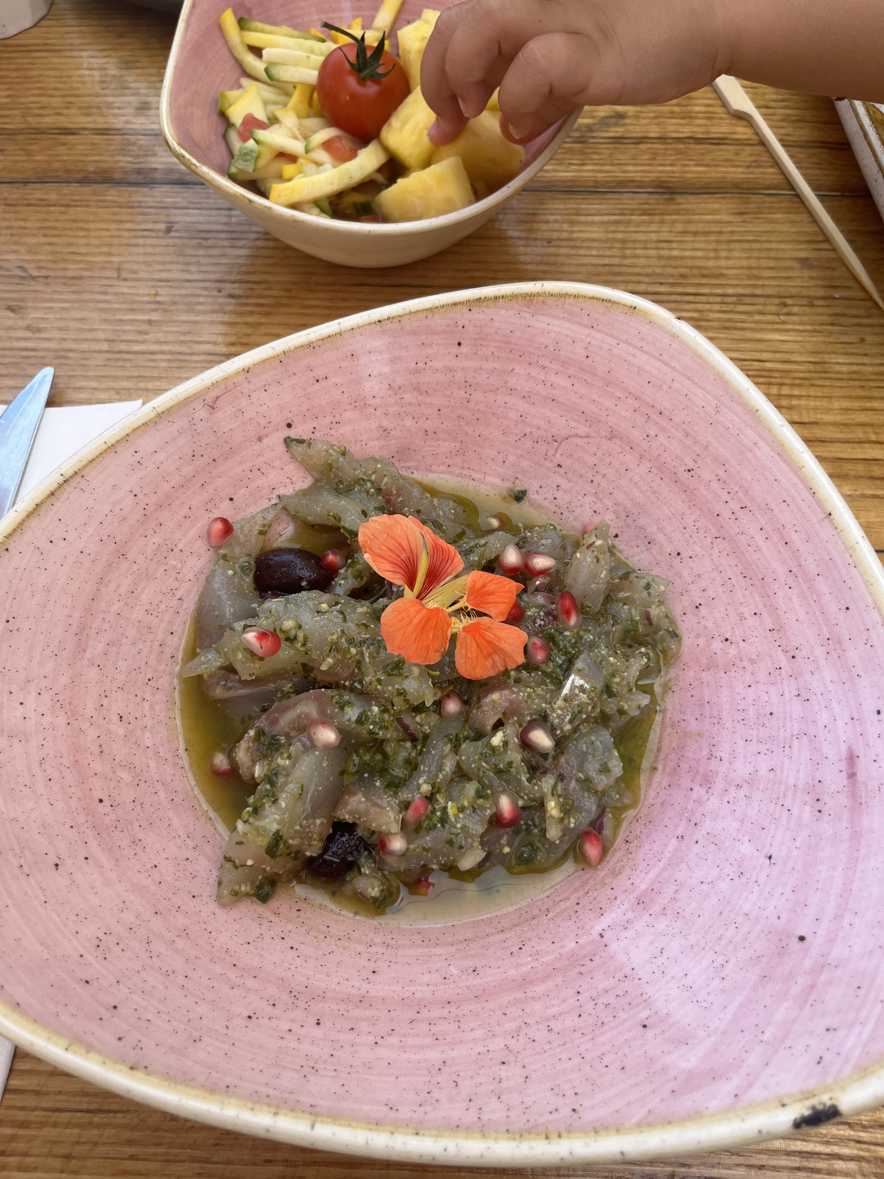Magnifique restaurant qui nous a ravis un midi. Les quantités sont généreuses et on a eu du mal à finir nos assiettes pourtant délicieuses! En photo un ceviche de dorade. La vue y est sublime. Si l'occasion se présentait j'y retournerais volontiers.