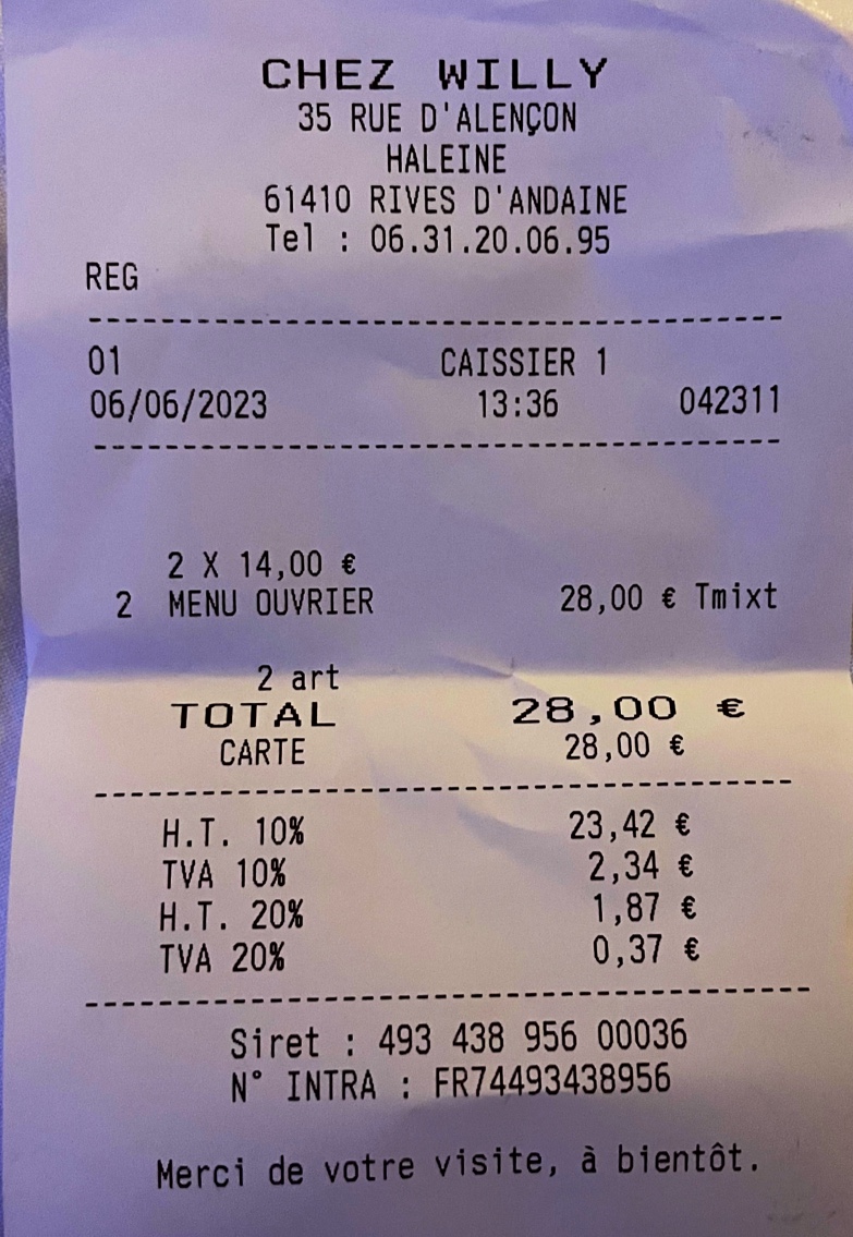 2ème fois que nous nous arrêtons chez Willy et l'accueil est toujours aussi impeccable tout comme le service. Je vous recommande cette étape à l'heure du déjeuner avec un menu du jour simple et généreux. Buffet d'entrées très variées et important choix de plats du jour. Essayez la prochaine fois où vous passez à Haleine en route pour la Normandie !