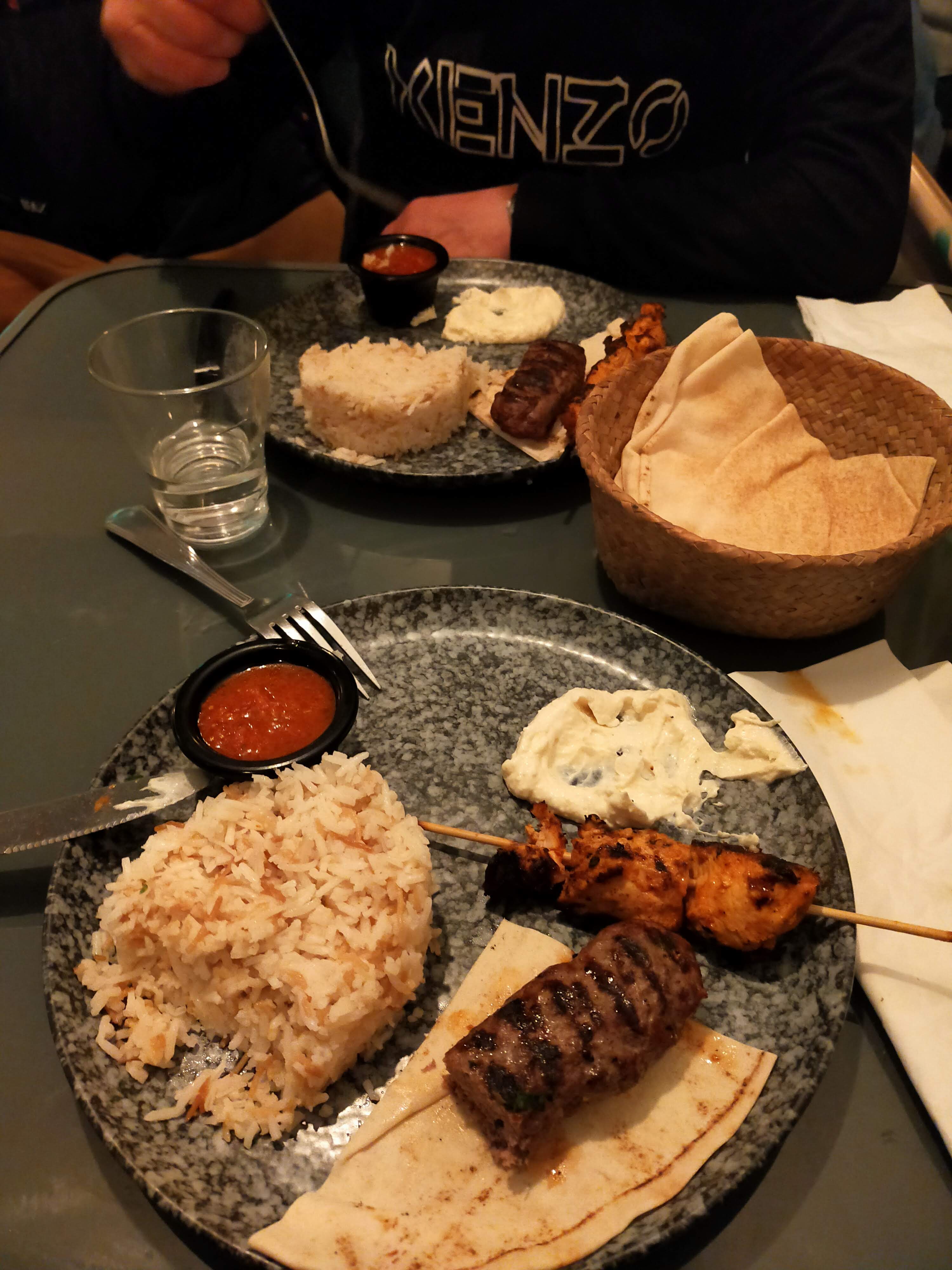 Nous avons pris le plat végétarien et nous en avons été plutôt satisfaits. Les différentes préparations étaient bonnes et, même si on ne s'y attends pas en voyant le plat arriver, on est rapidement calés. Nous aurions aimé cependant qu'il y ait plus de préparations solides (plus de falafels par exemple) et moins de préparation type pâte/purée. Cela ne reste après qu'une question de goût. Cela dit le restaurant a des prix plutôt élevés par rapport à ce qui est servi, mais cela est compréhensible dans la mesure où c'est une rue très touristique.