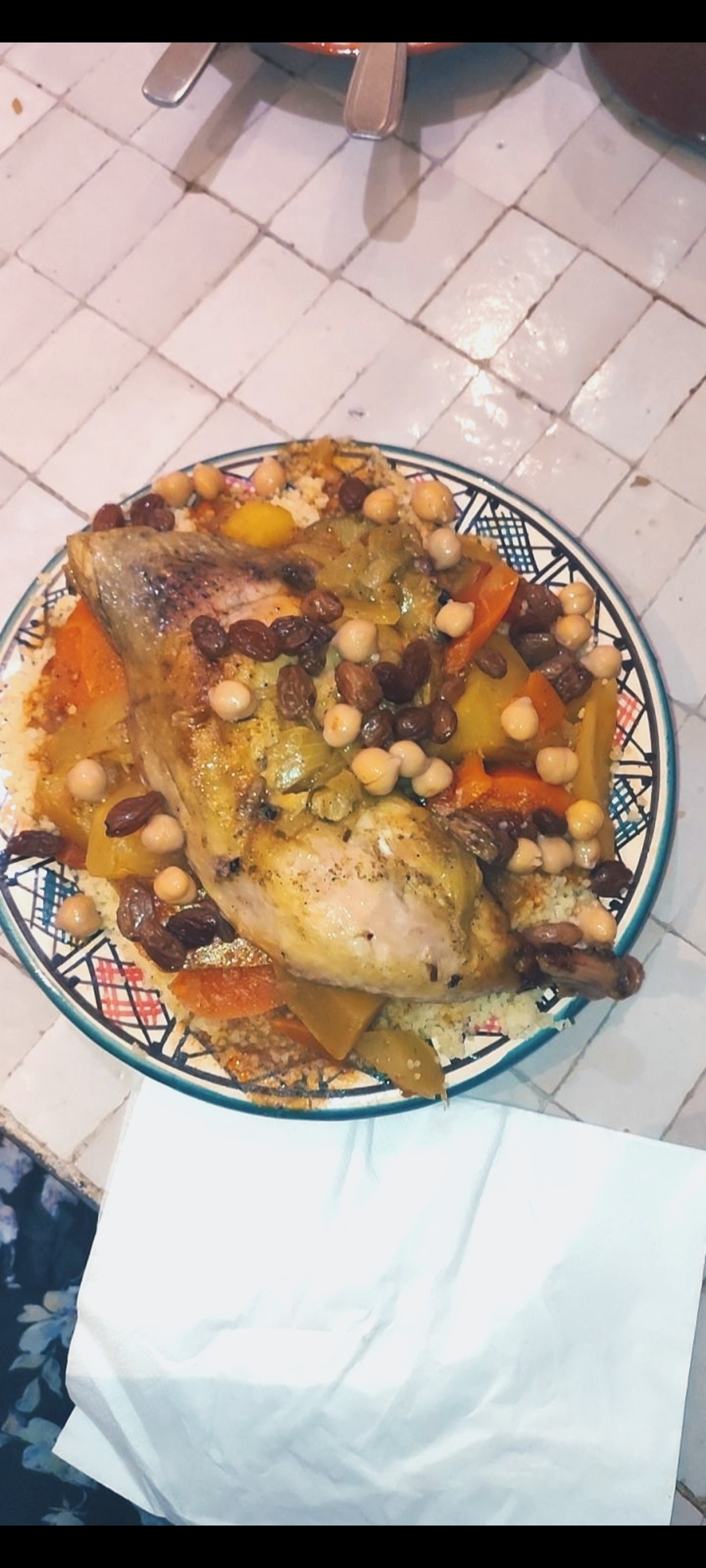 Magnifique accueil, tagine poulet citron frémissant à souhait, couscous royal généreux. Bref superbe !