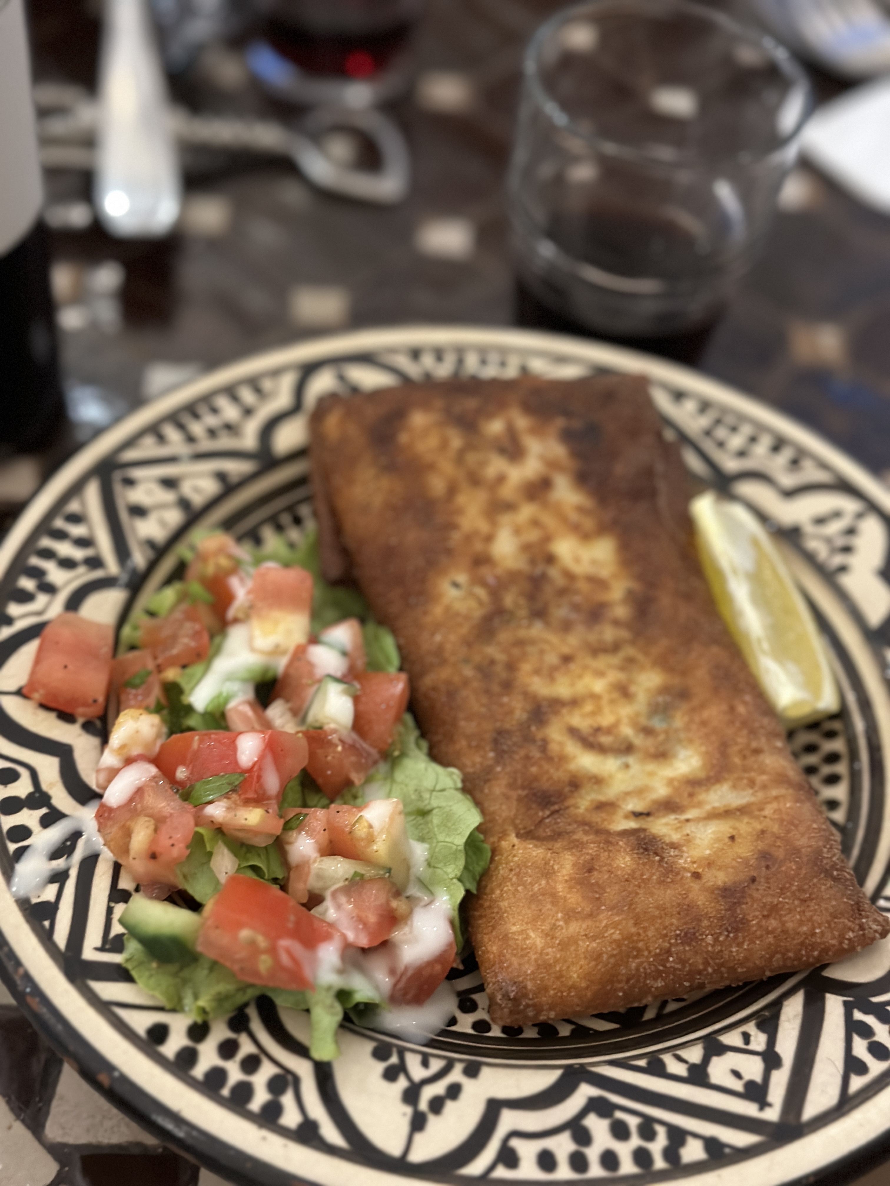 Très bonne adresse les parts sont copieuses et goûteuses , cadre agréable et dans l esprit marocain personnels aimables juste le service un peu long mais on y retournera avec des amis c est certain