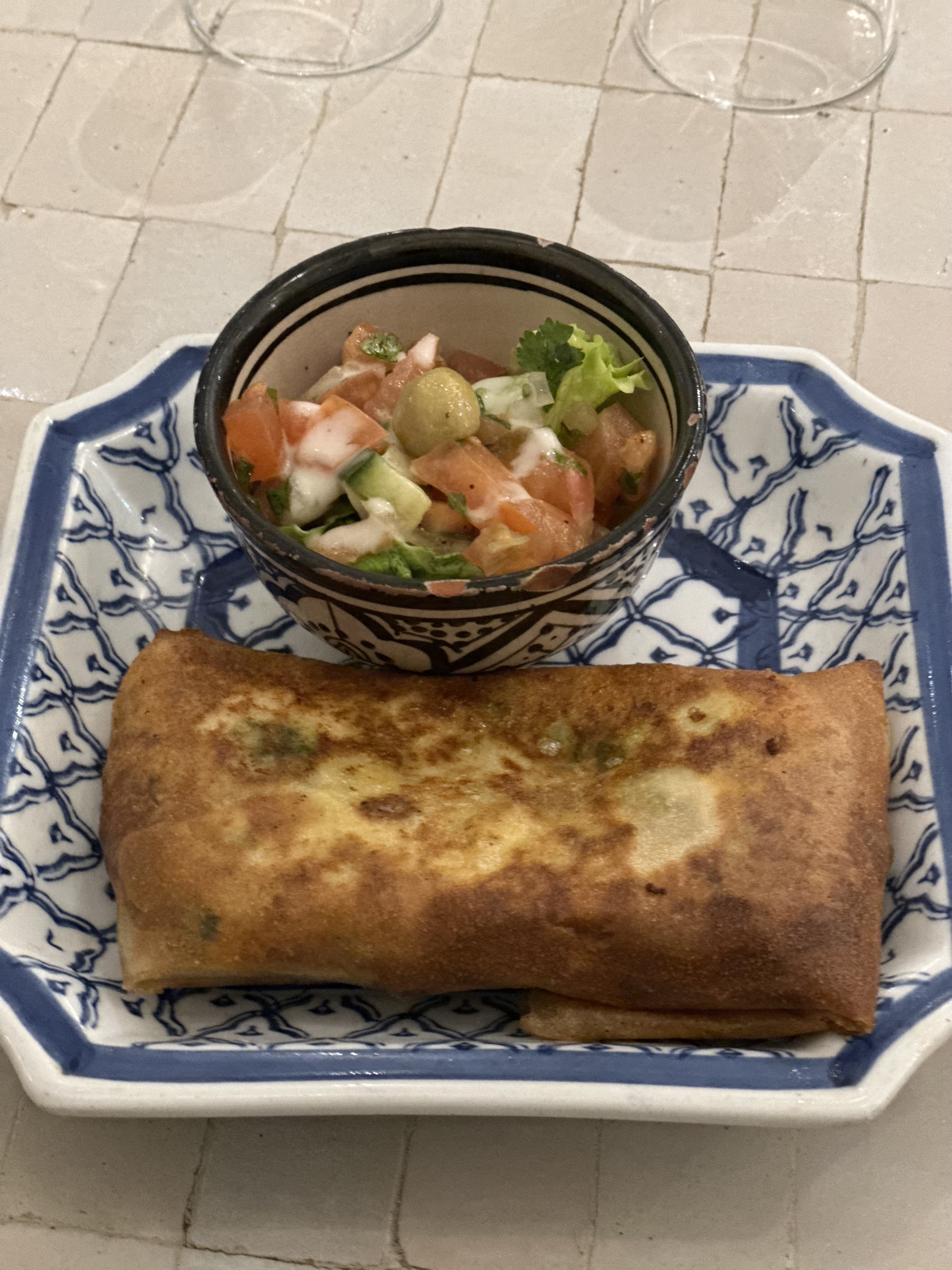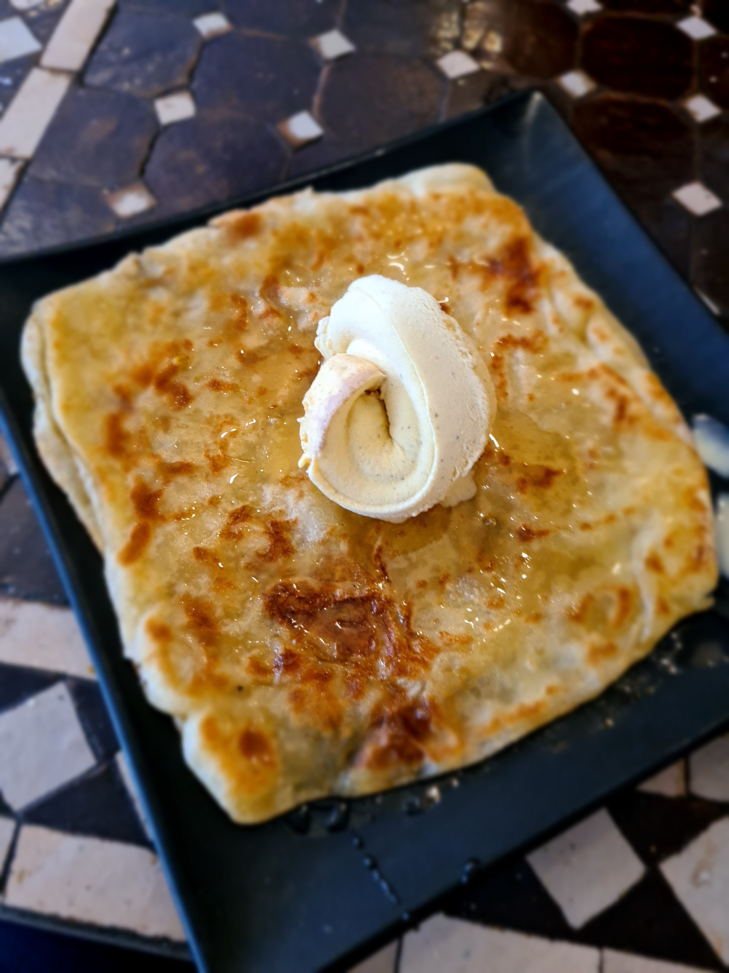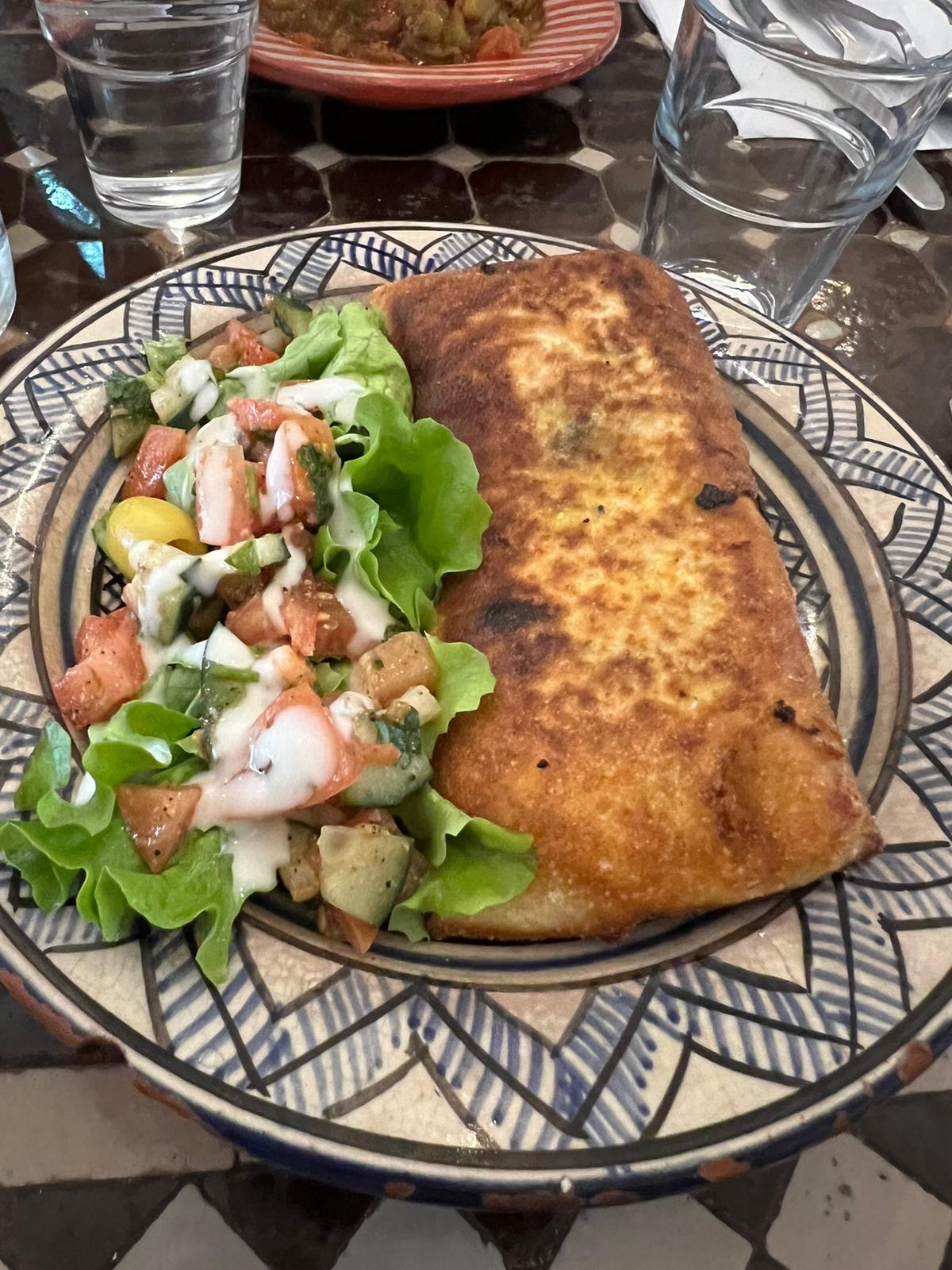 Les plats étaient bons. 2 petits bémols : le temps d'attente pour être servi, le miel mis d'avance dans la crêpe(baghrir) alors que je déteste le miel. Tout le monde n'aime pas le miel, à l'avenir vaut mieux demander aux clients avant de mettre le miel.