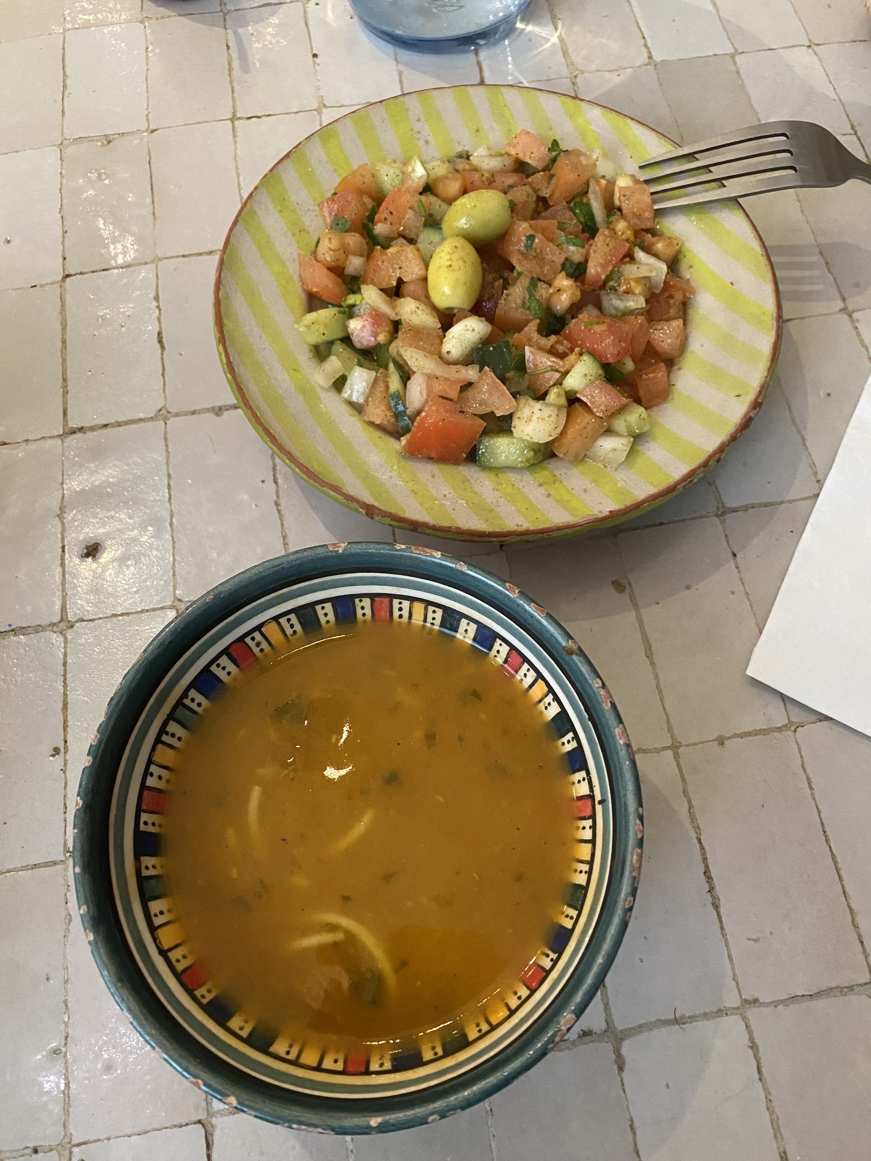 Tout le monde et souriant et serviable, atmosphère vivante, cuisine simple mais bonne du maroc
