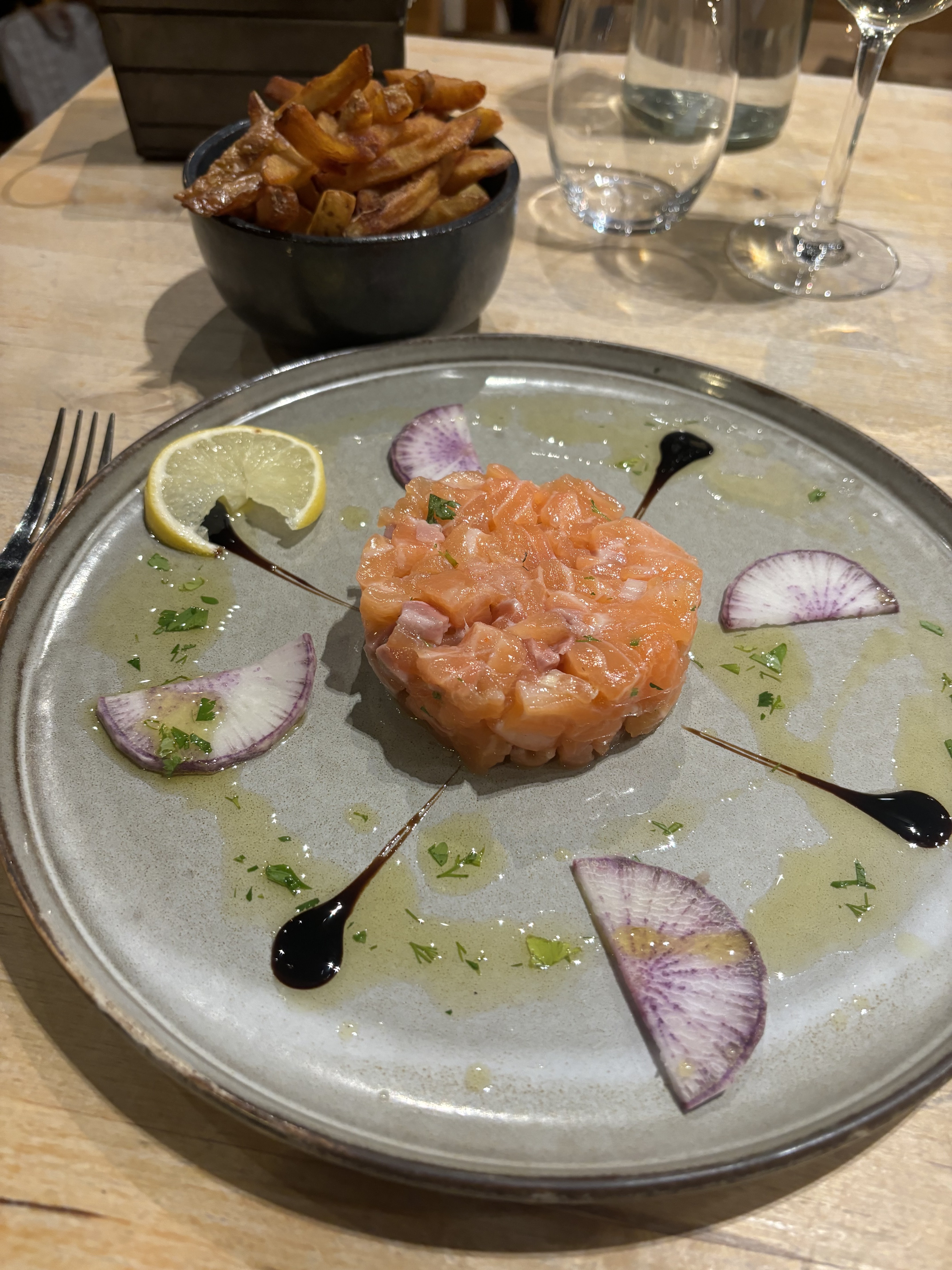 Très belles assiettes, et vins au verre bien sélectionnés