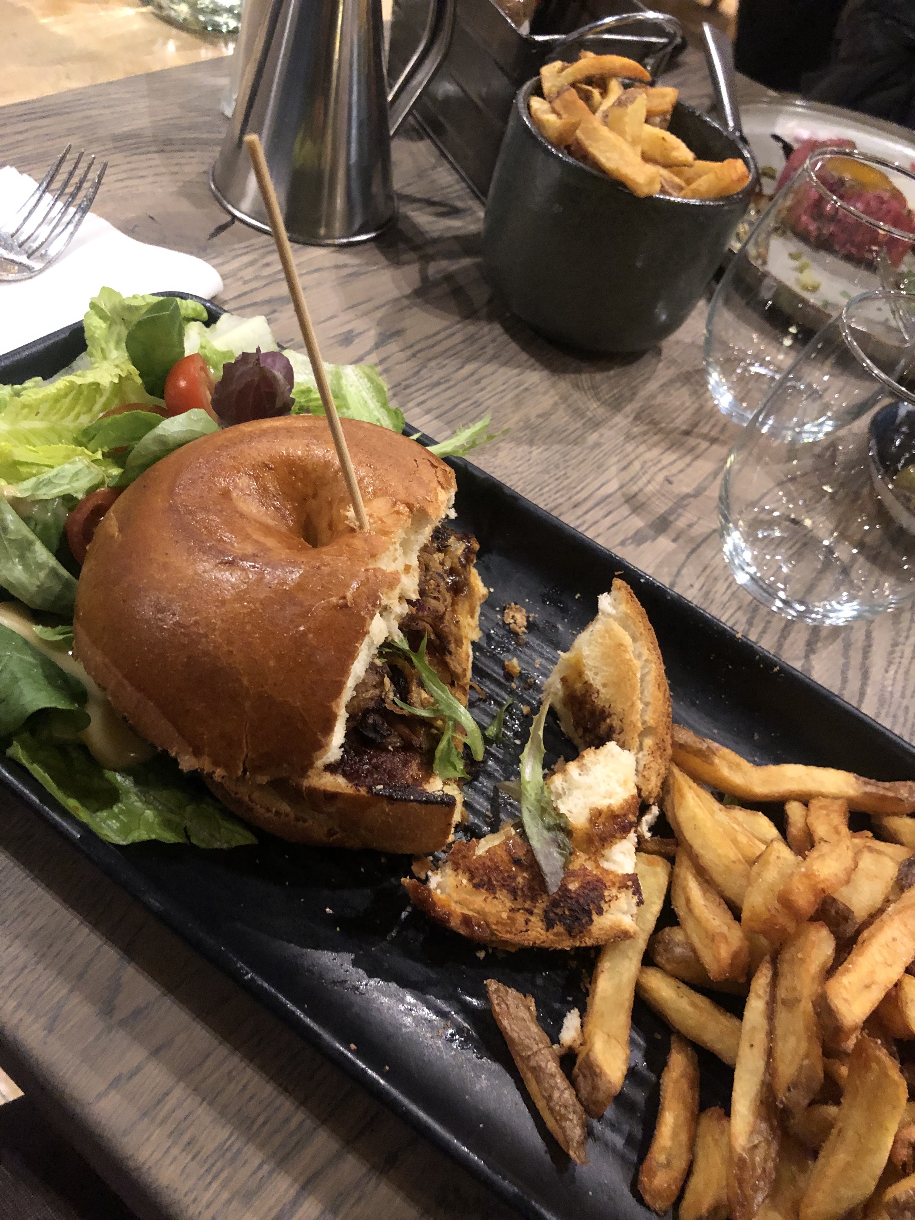 Un burger excellent, un moelleux au chocolat délicieux, du bon vin et une ambiance cosy et accueillante, tout était parfait ne changez rien !