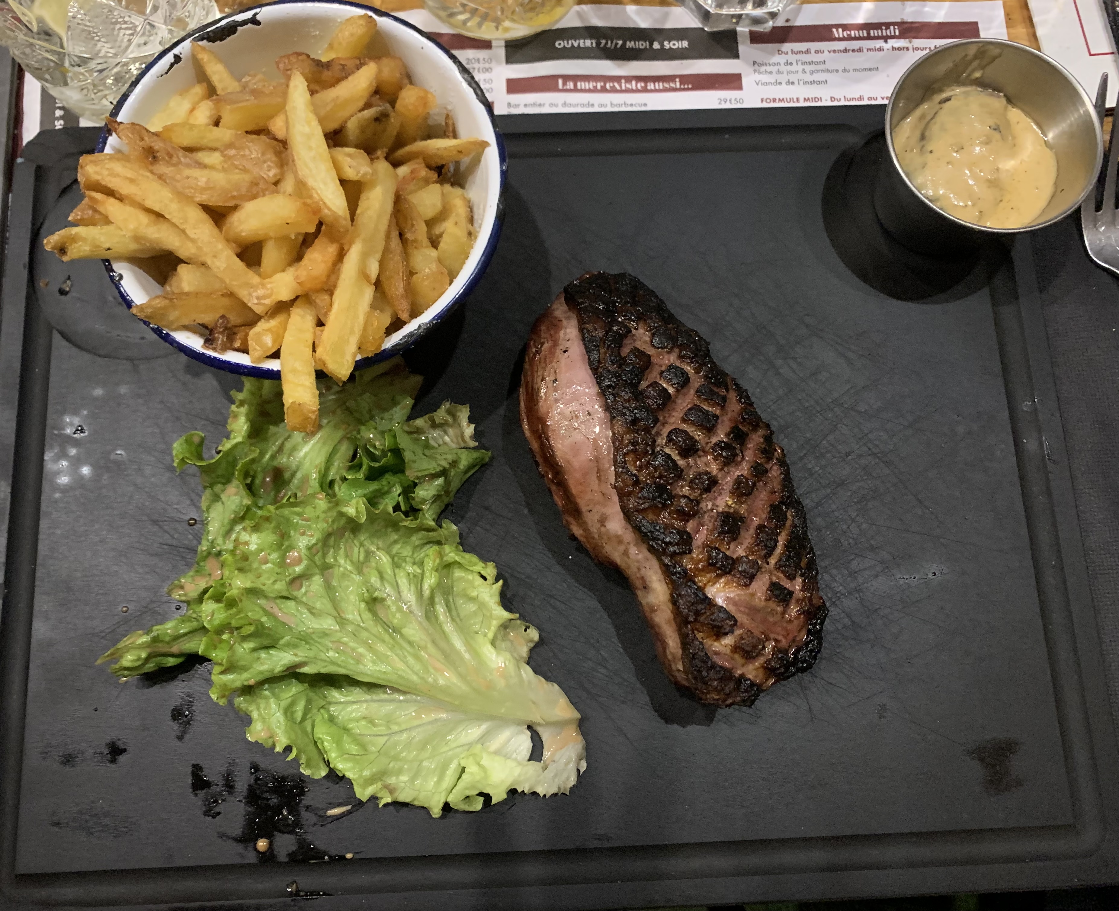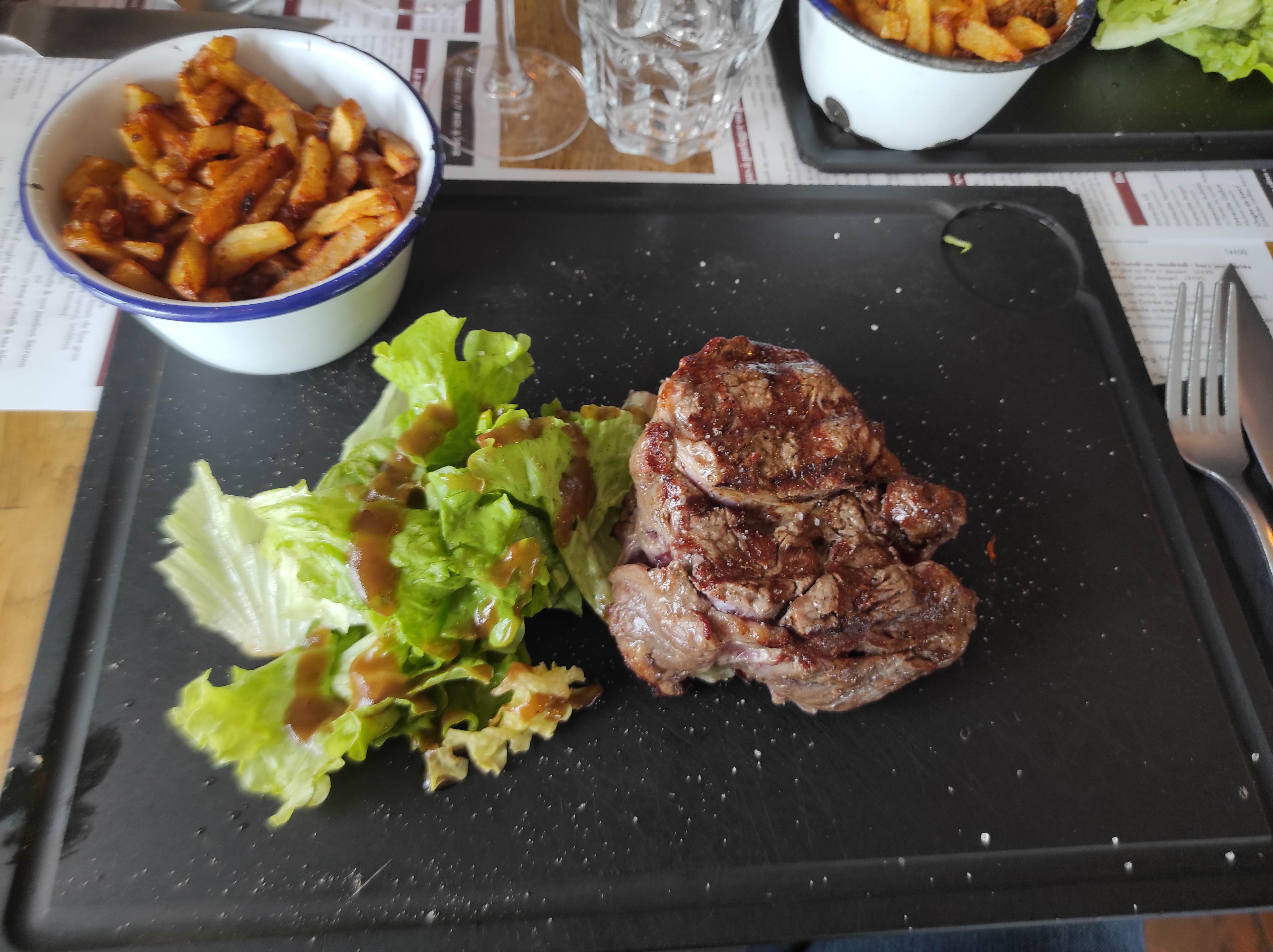 Très bonne pièce de viande, frites maison très bonnes. Cependant la propreté de la vaisselle (notamment les verres laisse à désirer). Le serveur court partout au point de me bousculer sans faire exprès pendant le repas dommage…