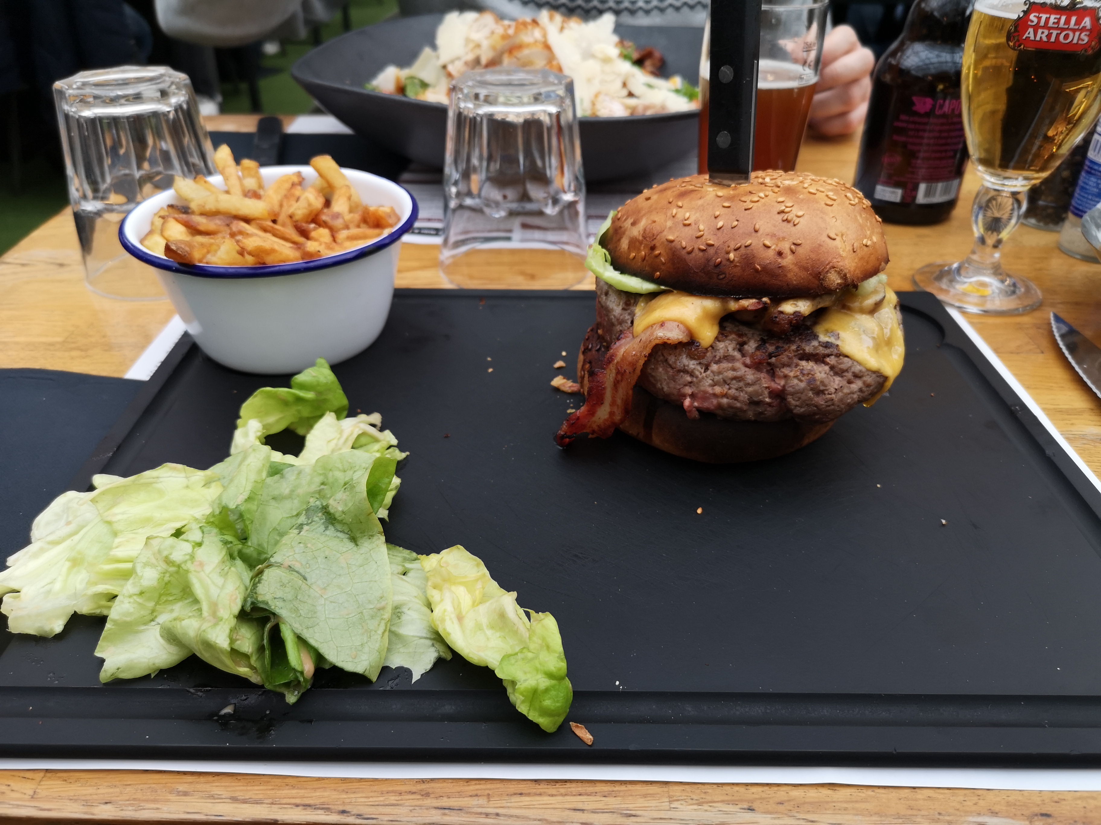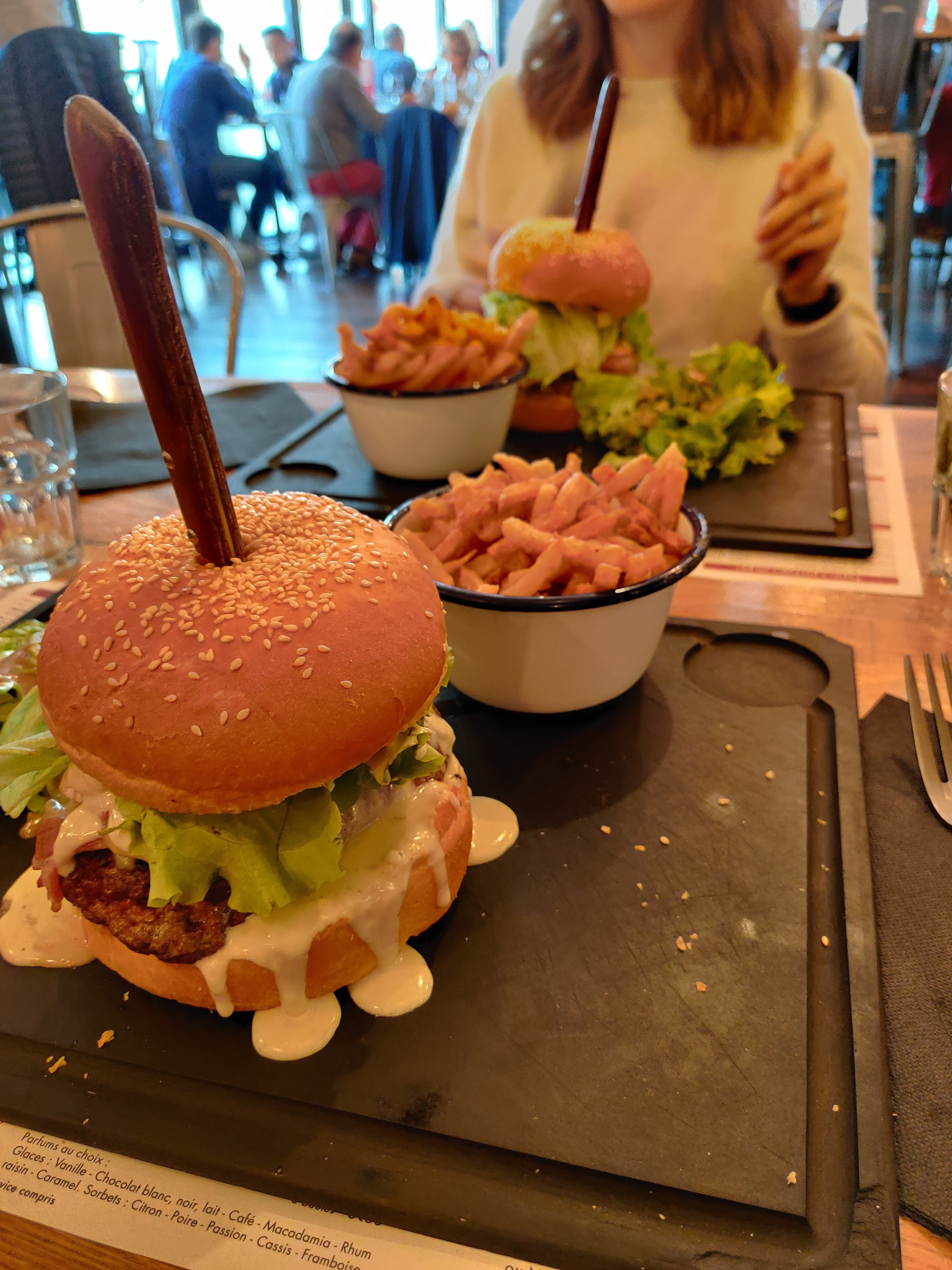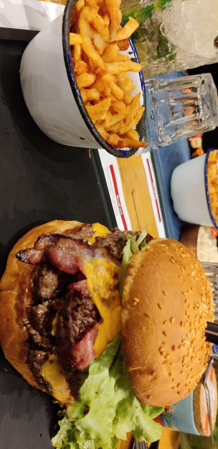 Très bel accueil, les serveurs sont très agréables et joviaux, les plats sont très généreux voir plus que généreux. La salle est très joliment décorée j’aime beaucoup le style.C’est la seconde fois que je viens et je me régale toujours autant. Ne prévoyez pas de manger avant sinon vous calerez rapidement ! L’entrecôte était vraiment une tuerie j’en ai jamais mangé d’aussi bonne de ma vie, et gros gros coup de coeur sur la tarte au citron révisée un vrai régal pour les papilles… Les burgers sont énormes et très bons( voir la photo)Merci beaucoup. Un grand Bravo aux cuisiniers et aux serveurs.