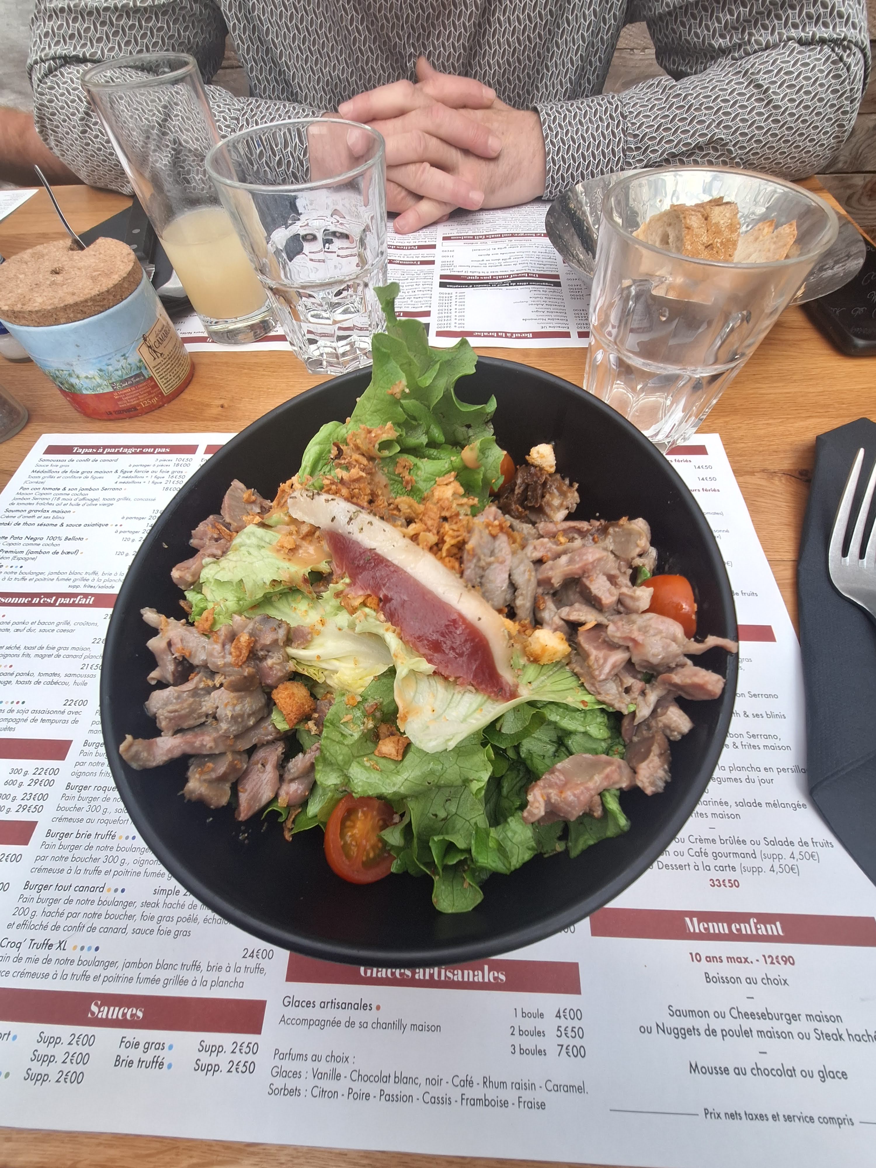 Très bon les salades sont énormes mais trop copieux ! Seul bémol la terrasse extérieure est trop bruyante ont ne s'entendaient pas parler. Sinon le personnel très sympa rien à dire 👍