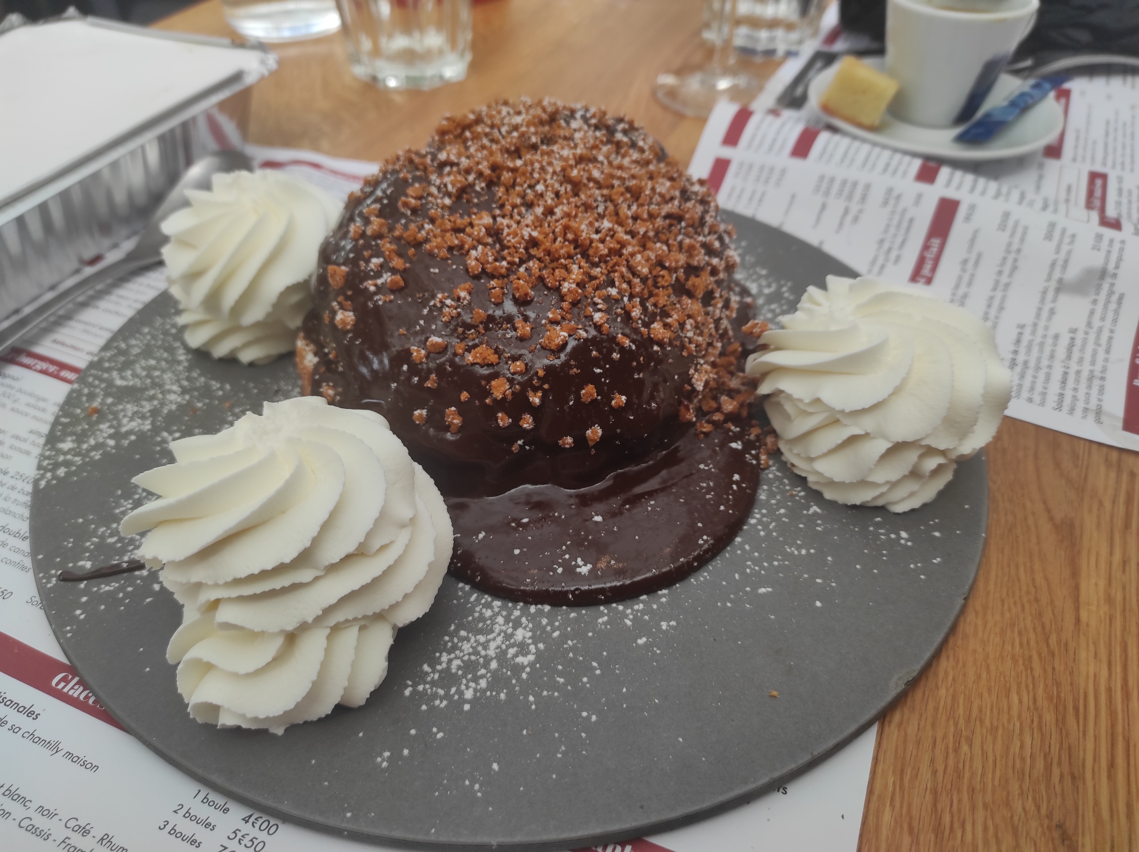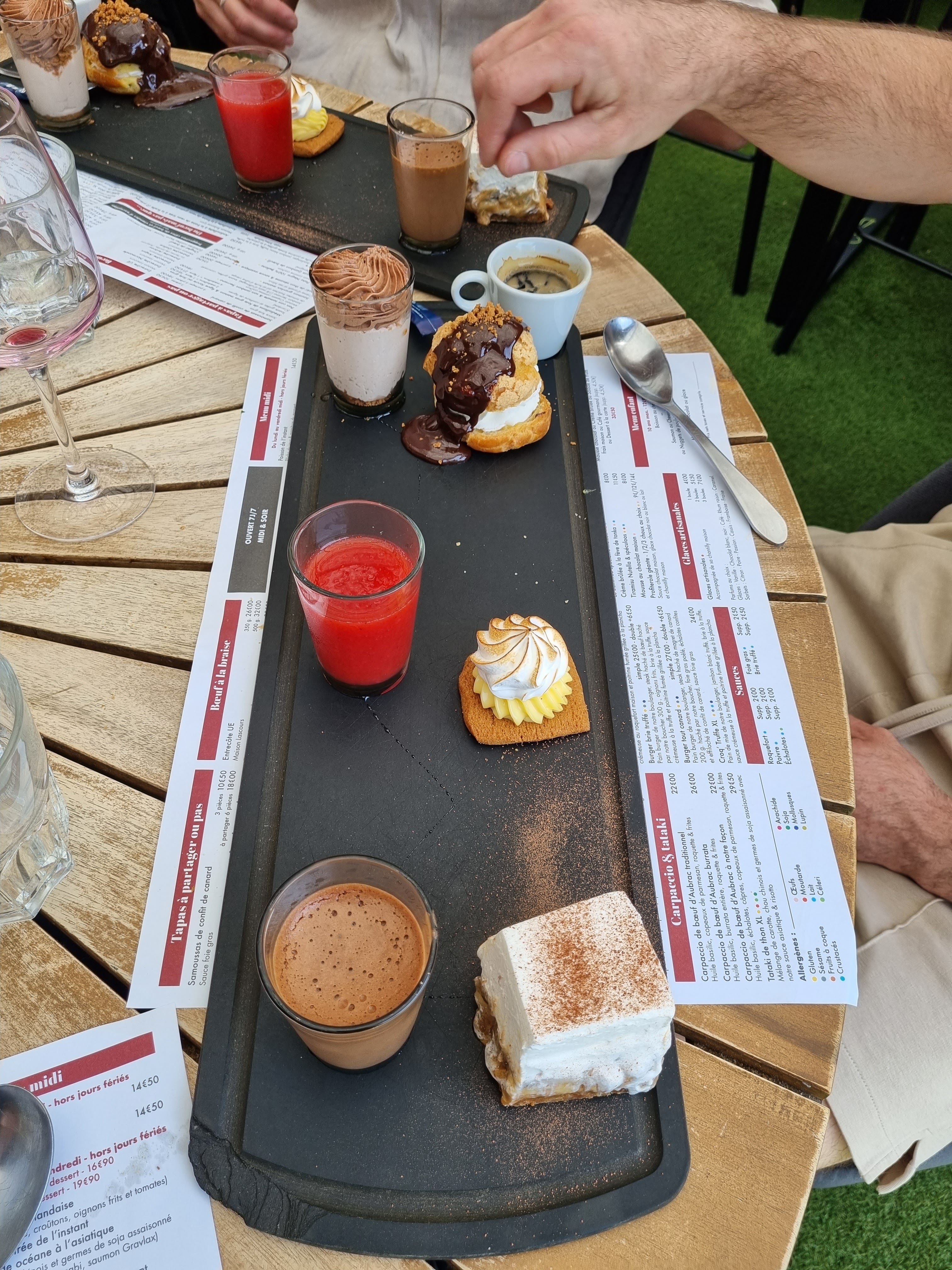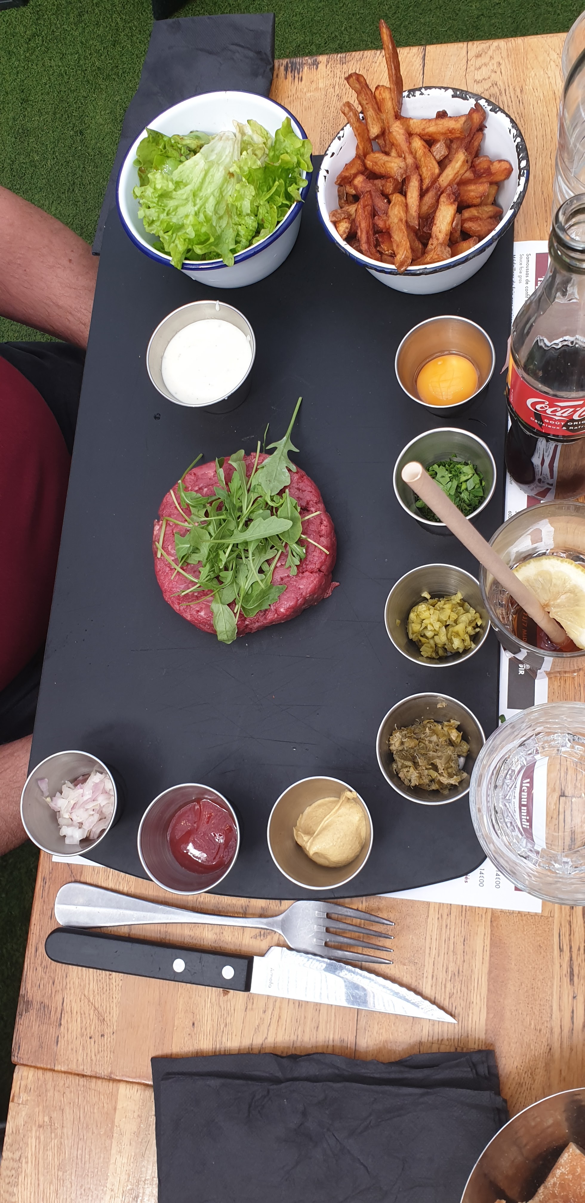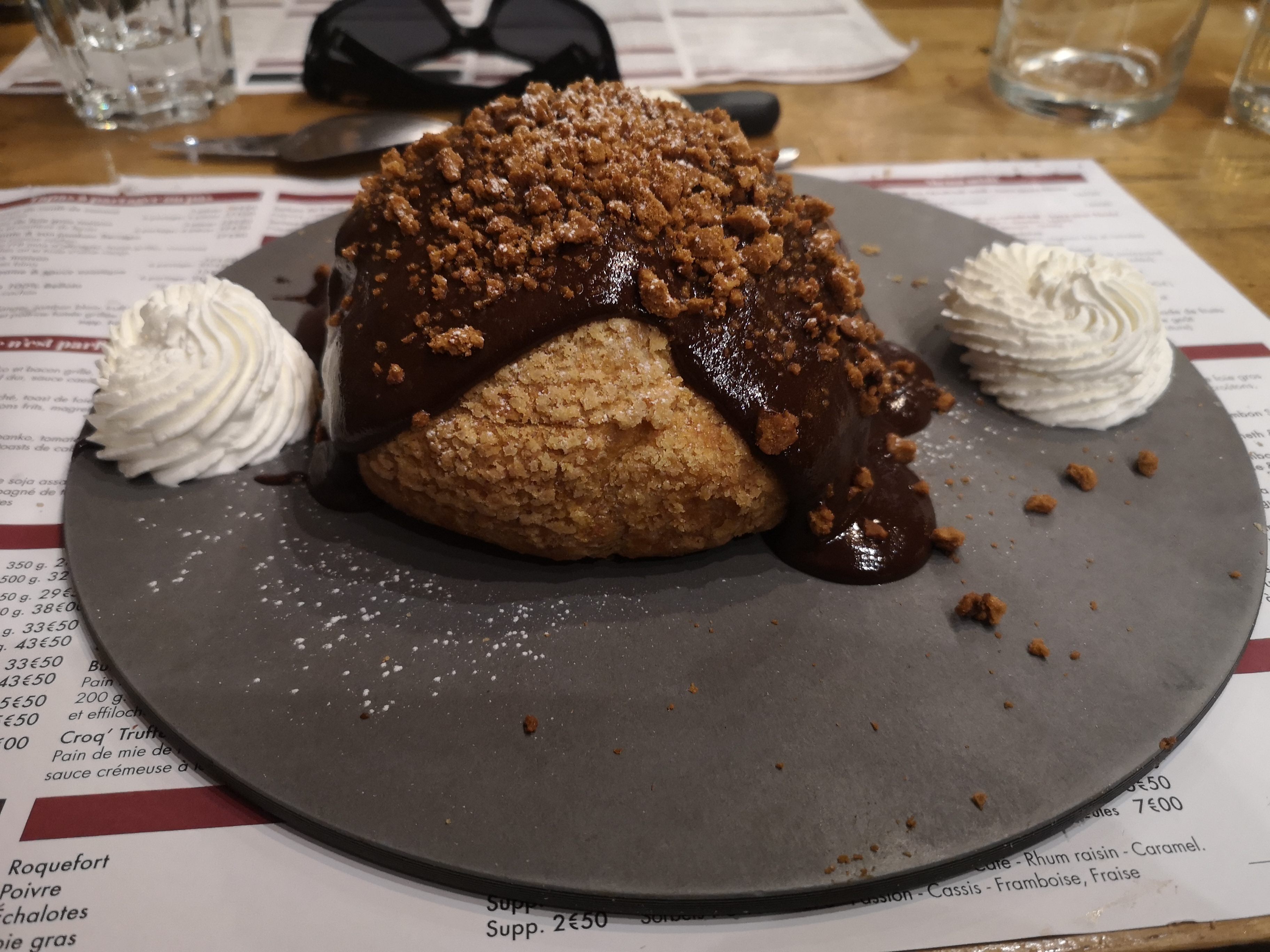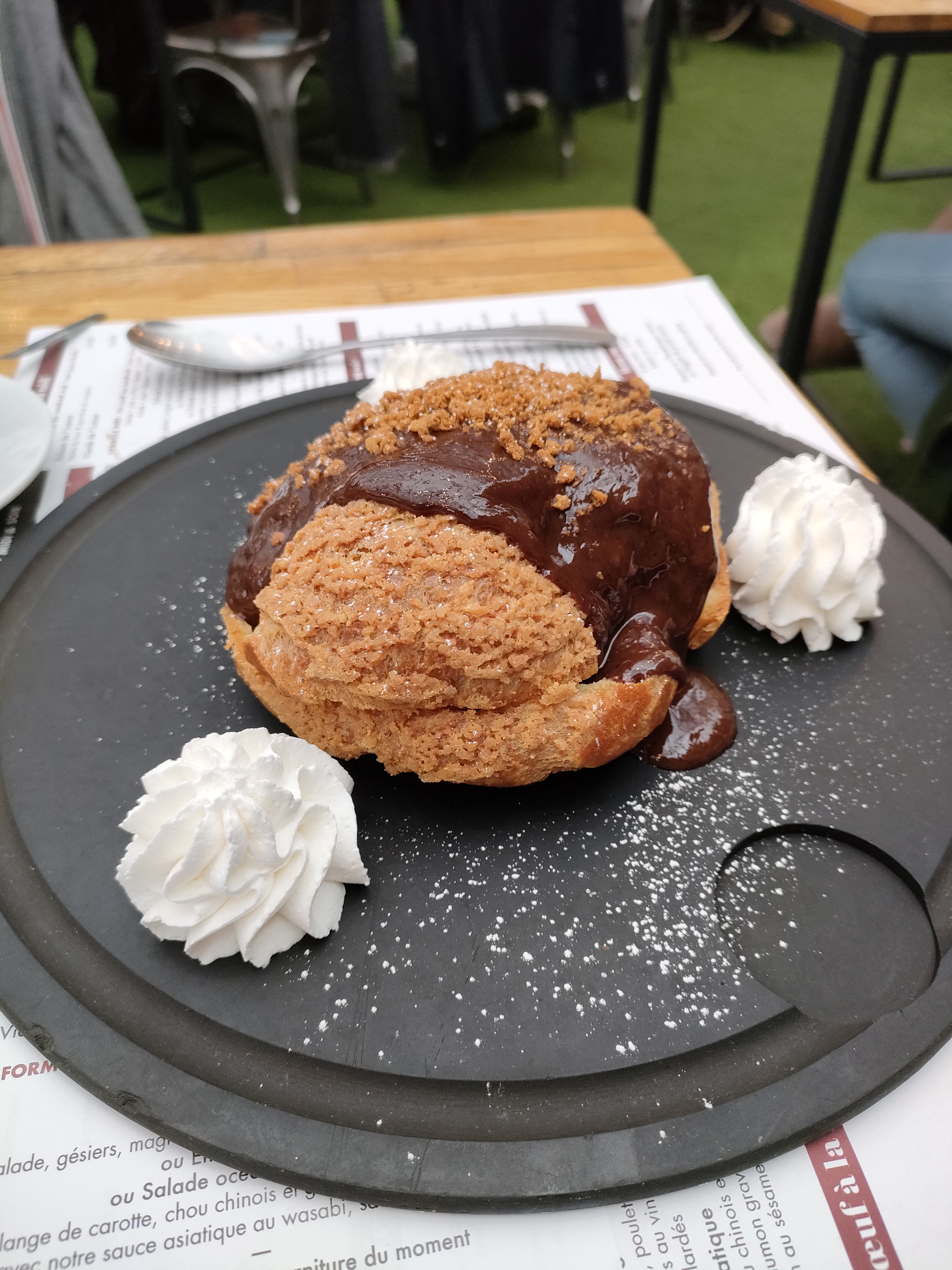 La nourriture est bonne et en quantité gargantuesque !! Attention aux petits mangeur, si vous visez la salade, ne vous dites pas que le plat sera petit. N'hésitez pas à emporter les restes si vous ne finissez pas je pense qu'ils ont l'habitude. Nous avons tenté plusieurs choses sur plusieurs jours en étant toujours satisfait. Les plateaux de charcuterie et saumon gravlax sont très bons. Attention encore une fois nous avions pris cela à 4 adultes et il est difficile d'enchainer sur un plat et dessert en suivant ! Les burgers sont excellents, la cuisson du steak est respectée, voyez vous-même sur les photos : on se régale. Le tataki de thon est aussi un régal. La salade Caesar a été pris par une petite mangeuse et la quantité l'a surprise mais le plat fait autant plaisir à voir qu'à manger, il n'en est pas resté une miette. J'en passe et des meilleures avec le carpaccio de boeuf, le tartare de boeuf ou encore la brochette de crevette (ou gambas)... Pour finir, en grand amateur de profiteroles, nous nous devions d'y faire honneur. Garde à votre estomac, vous ferez le choix d'une, 2 ou encore 3 profiteroles mais regardez la photo, vous êtes prévenu ! Le chou est excellent ainsi que le chocolat, nous sommes bien loin de profiteroles industrielles, sèches et sans goût. Vous ne serez pas déçu, faites vous plaisir ! Si je dois mettre un bémol à cette adresse, ce serait le service un tantinet lent.
