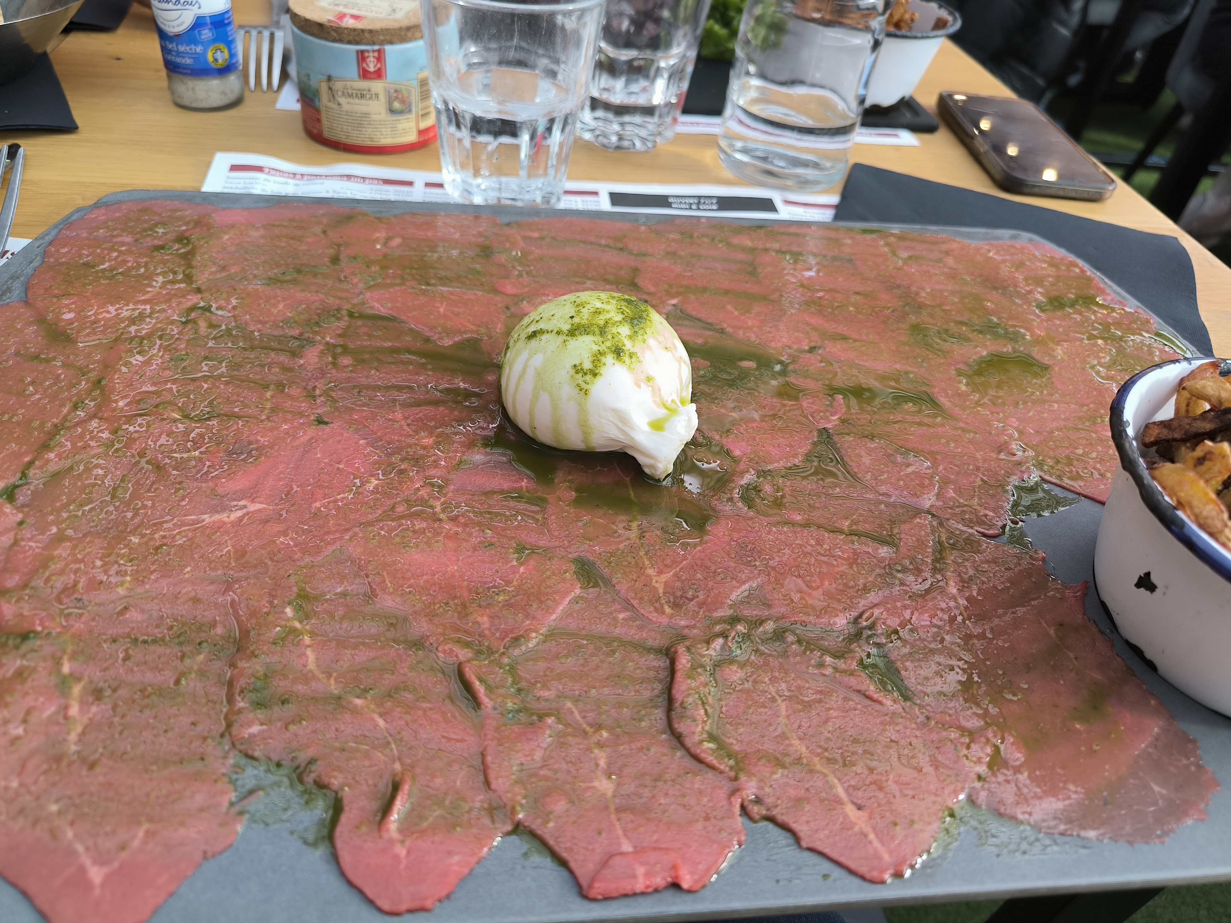 Top . C’est très très copieux, même trop .La qualité de la viande est incroyable., les cuissons parfaites.les desserts sont énormes , prenez un pour deux . Le service top .Par contre c’est très très bruyant. Difficile de se parler et de s’entendre . Il devrait penser à une vraie isolation acoustique . La meilleure adresse pour la viande