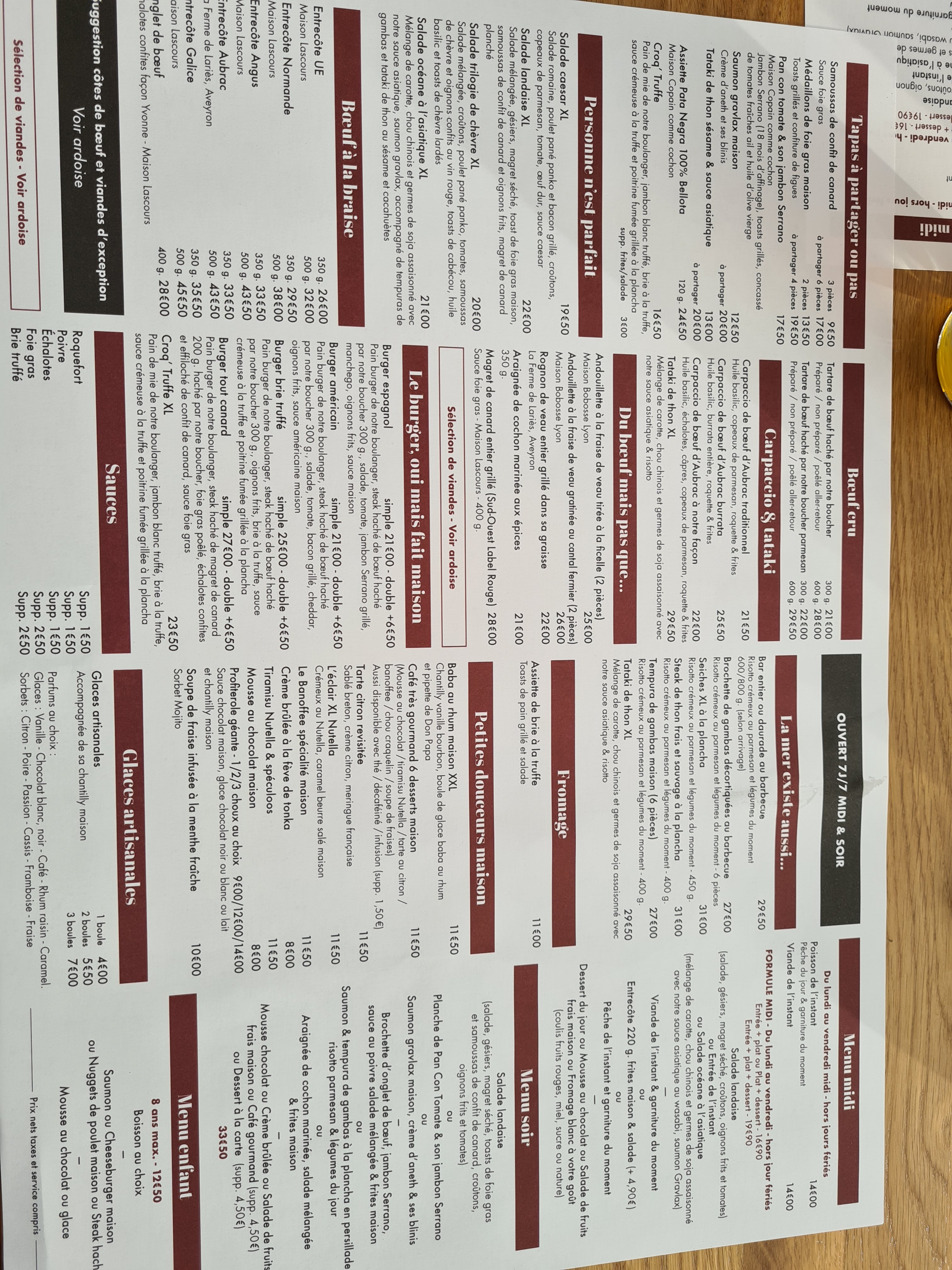 J'adorais cette adresse à l'époque mais j'y suis retourner pour me faire escroquer... j'ai pris la côte de bœuf la plus cher de la carte car maturé mais non seulement ce n'était pas la bonne viande (aucun goût, tres fade) en plus je l'avais commander saignante elle est arrivée à point... Mauvaise adresse pour manger une bonne viande donc.